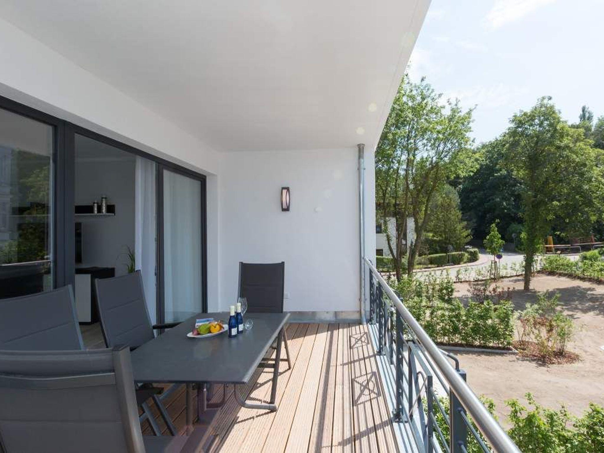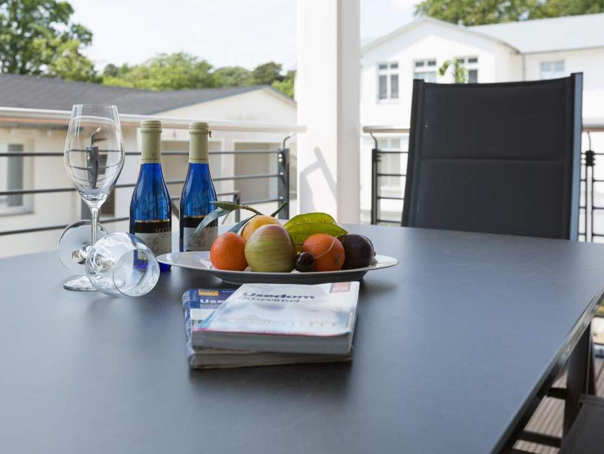 Ankommen - abschalten - auftanken. In den wunderschön eingerichteten 87 Quadratmetern der Ferienwohnung 04 im ersten Obergeschoss der Villa Strandgrün können bis zu 4 Personen und 1 Kleinkind (bis zu 3 Jahren im Kinderbett) den Alltagsstress ganz schnell vergessen. Helle, harmonisch aufeinander abgestimmte Farbtöne und bequeme Designmöbel sorgen für Urlaubsfeeling. An den großzügigen Wohnbereich mit Kaminofen und großem Esstisch aus Echtholz schließt sich eine offene Küche an, die das Kochen zum gemeinsamen Erlebnis werden lässt. Es muss ja nicht immer Strand sein: Der geräumige Süd-Balkon mit Bankirai-Holz lädt zum Sonnenbaden und gemütlichen Beisammensitzen ein. Zwei edle Schlafzimmer mit Boxspringdoppelbetten (1,80 m x 2,00 m) ? ein Kinderreisebett passt dort zusätzlich hinein ? sorgen für einen erholsamen Schlaf. Wohnzimmer sowie beide Schlafzimmer sind mit Flat-TV ausgestattet. Im Wohnzimmer befindet sich zusätzlich ein Blu-ray-Player mit CD-Funktion. Das Appartement verfügt über zwei Bäder mit zwei geräumigen Duschen, zwei WCs und Waschtisch beziehungsweise Doppelwaschtisch. Im Masterbad ist zudem eine finnische Sauna eingebaut. Eine Waschmaschine und ein Trockner befinden sich ebenfalls dort. Zur Wohnung gehört ein Stellplatz in der Tiefgarage. In einem separaten Raum können Fahrräder abgestellt werden. Damit Sie im Urlaub keine Umstände haben, steht die Erstausstattung Wäsche für Sie bereit. Für den Tag am Meer steht Ihnen als besonderes Bonbon von Mitte Mai bis Ende September (je nach Witterung) ein Strandkorb am Strand[nbsp][nbsp]kostenlos zur Verfügung.