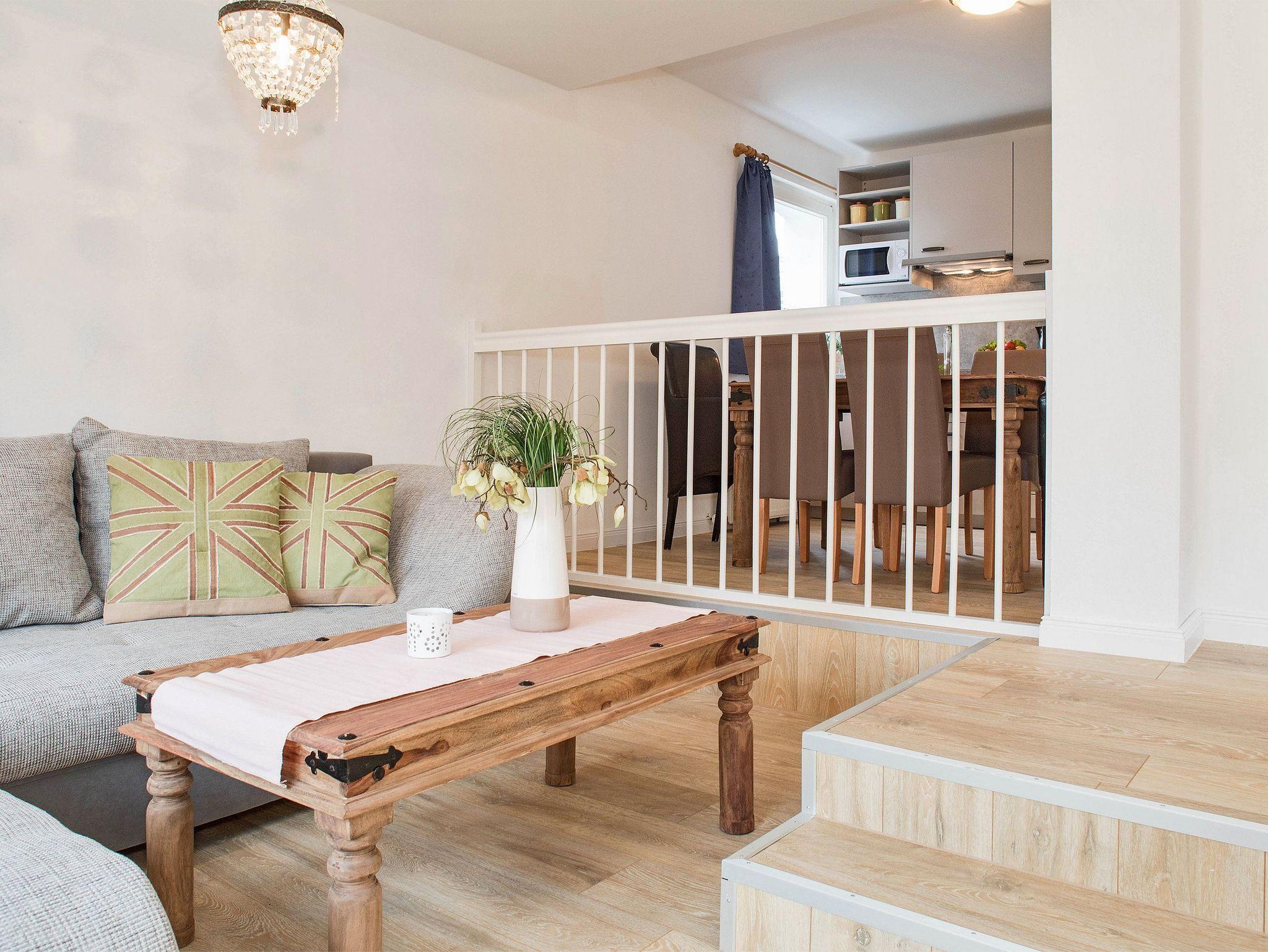 Das 3-Raum-Appartement Nr. 1 im Erdgeschoss der Villa Helene mit separatem Eingang begrüßt bis zu vier Personen zur wohlverdienten Urlaubszeit. Dank der Stufen im Eingangsbereich, vor dem Schlaf- und Badezimmer erlangt das Appartement einen sehr offenen Charakter und wirkt selbst mit seinen 50 Quadratmetern sehr großzügig. Der helle Wohnbereich mit bequemer Couch und zwei Sesseln lädt zum Entspannen vor dem Flat-TV ein. Genießen Sie die in der gut ausgestattete Küche (Backofen, Ceranfeld-2Felder, Geschirrspüler, Kühlschrank, Kaffeemaschine, Wasserkocher, Toaster) zubereiteten Speisen auf der angrenzenden Nordostterrasse bei einem Glas Wein im Grünen ? und am Abend mit Blick auf den Sternenhimmel. Anschließend erledigt der Geschirrspüler den Abwasch für Sie ? während Sie in Ruhe einen erlebnisreichen Urlaubstag bei einem gemütlichen Beisammensein am großzügigen Esstisch ausklingen lassen. Zur Nachtruhe laden zwei Schlafzimmer zum Träumen von einem bevorstehenden oder bereits vergangenen erlebnisreichen Urlaubstag ein. Beide Schlafzimmer verfügen über ein bequemes Doppelbett (140 x 200cm / 160 x 200cm / jeweils eine durchgehende Matratze).