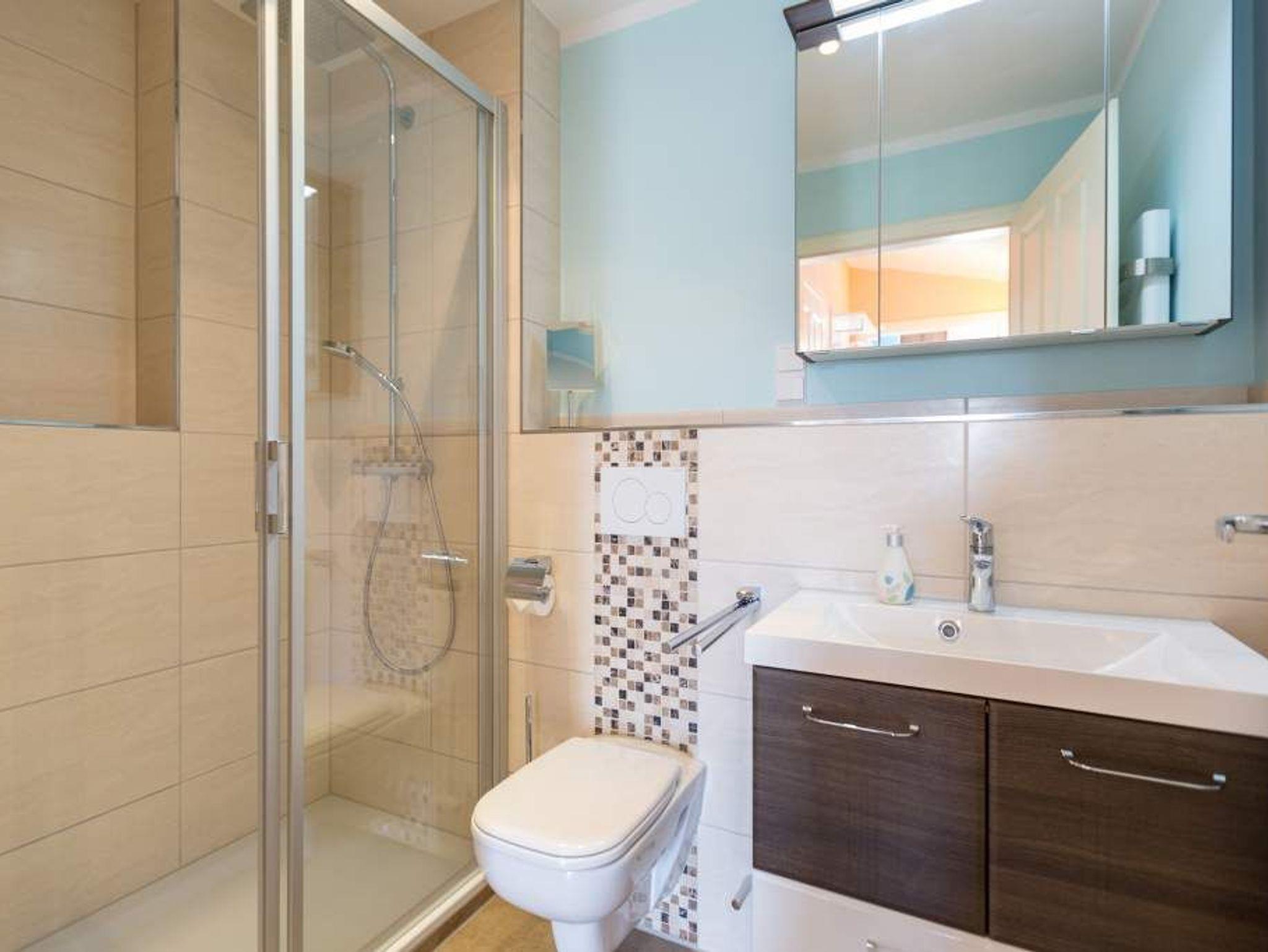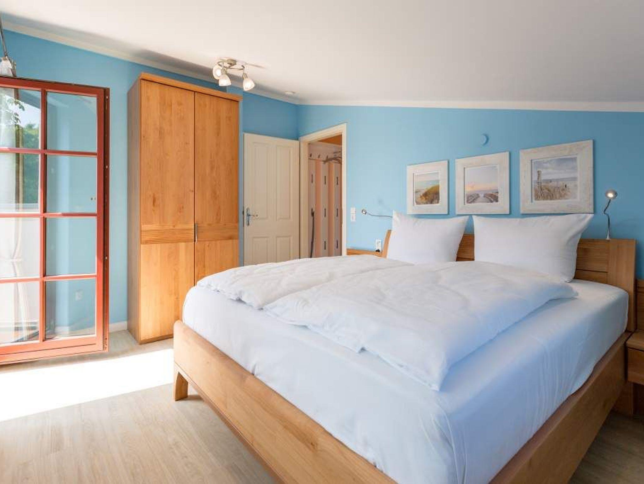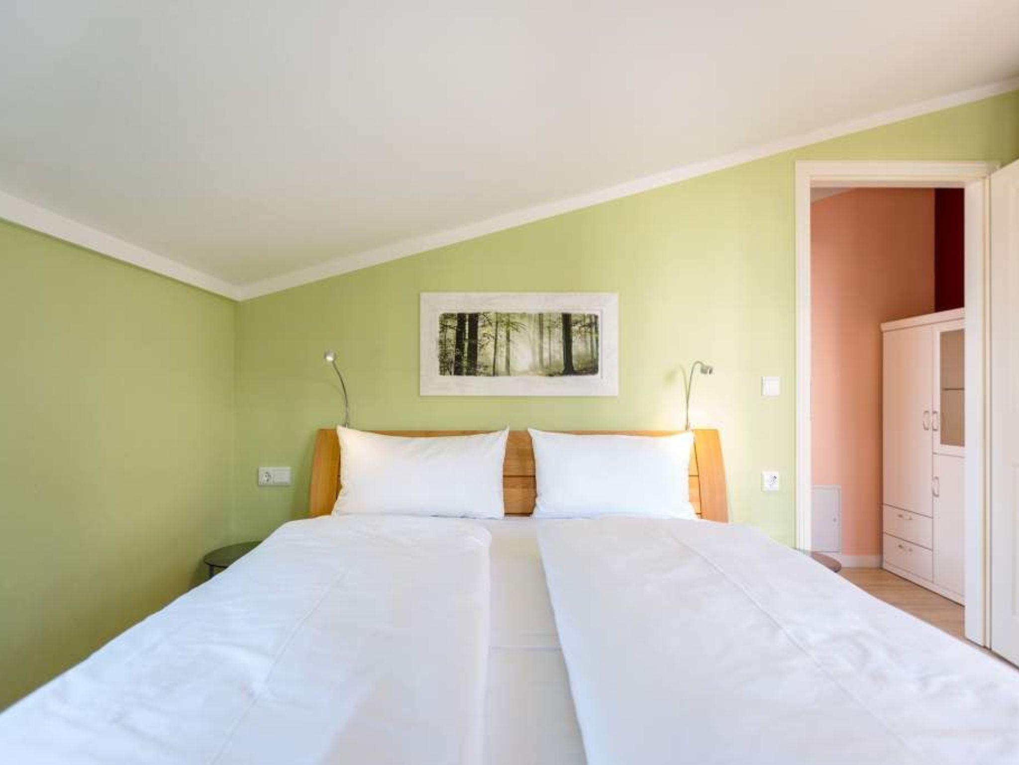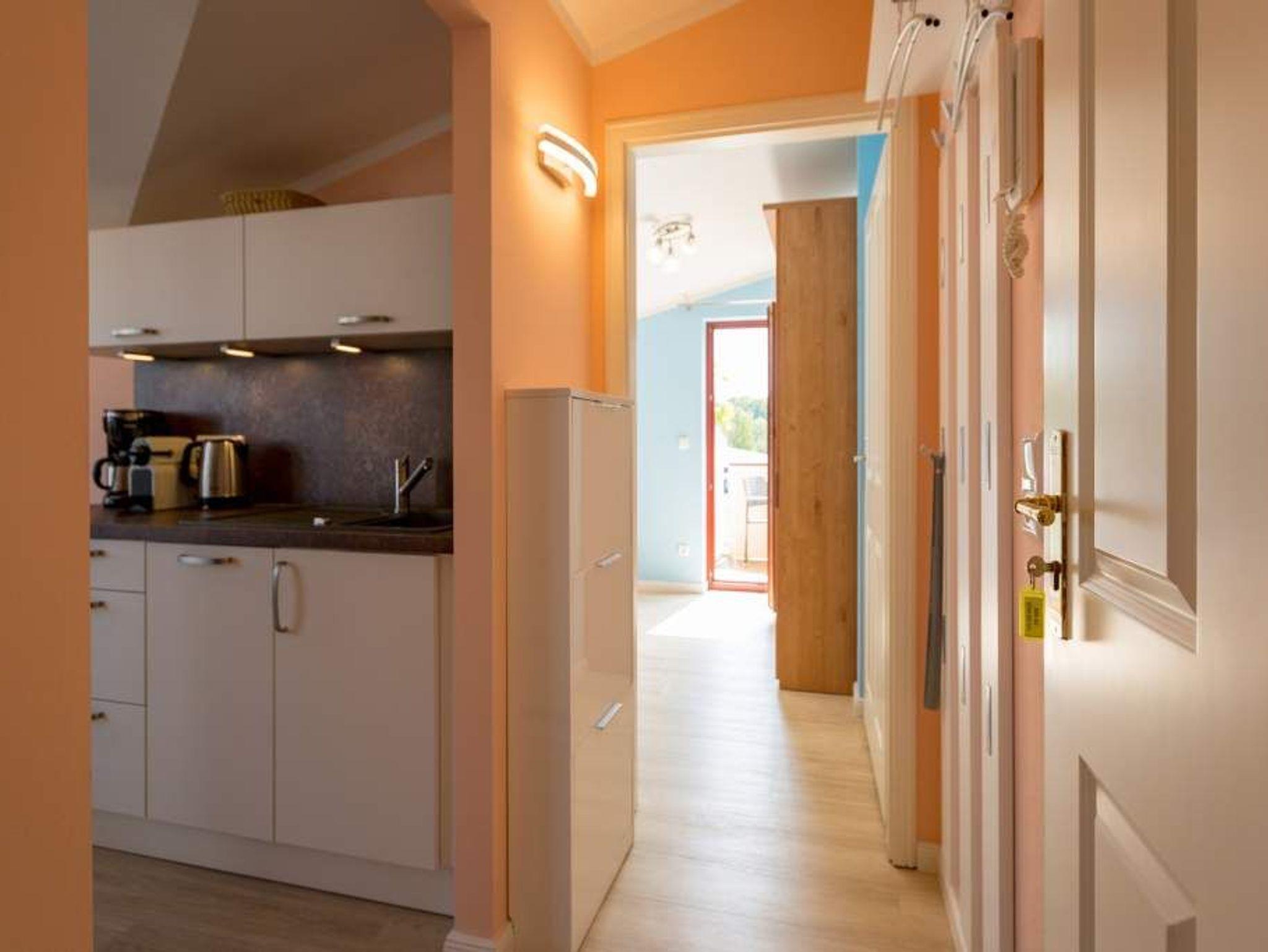 Diese stilvolle und elegante Ferienwohnung direkt unter dem Dach der Villa Damaris wartet gleich mit drei Balkonen auf. Und sie alle geben einen Blick auf die mit viel Grün und wunderschönen alten Bädervillen versehene Umgebung frei. Hier können Sie schon morgens Sonne tanken und die salzige Ostseeluft tief in sich einatmen. Das kleine, urgemütliche Urlaubsreich unter Dachschrägen bietet auf seinen 60 Quadratmetern Platz für bis zu vier Personen und ein Kleinkind (im Kinderreisebett). Das offene Wohn-Esszimmer ist großzügig geschnitten und durch die große Fensterfront, die hinaus auf einen der drei Balkone führt, wunderbar luftig und hell. Ein harmonisches Farbkonzept und eine stilvolle Einrichtung sorgen für eine entspannte Urlaubsatmosphäre. Auf der roten Sofalandschaft erhält der Begriff Behaglichkeit eine neue Bedeutung. Denn sie eignet sich ideal zum Runterkommen und Entspannen. Das Zimmer verfügt über einen großen Flat-TV. Am schönen Essplatz lässt es sich ausgiebig schlemmen, spielen oder plaudern. Für die Zubereitung der Speisen findet sich alles Notwendige in der offenen und voll ausgestatteten Küche. Jedes der beiden Schlafzimmer verfügt über ein bequemes Doppelbett, einen geräumigen Kleiderschrank und einen eigenen kleinen Balkon. Eines der beiden Zimmer hat auch einen Flat-TV. Im Bad stehen Ihnen ein Waschtisch und ein WC zur Verfügung. Die ebenerdige Regendusche ist so groß, dass Sie darin bequem zu Zweit Duschspaß haben können. In der Wohnung gibt es WLAN, das Sie kostenfrei nutzen dürfen. Damit der Urlaub rundum sorgenfrei ist, haben wir die Betten bei Ihrer Ankunft schon bezogen und Handtücher liegen bereit. Am haus befindet sich zudem ein Pkw-Stellplatz.