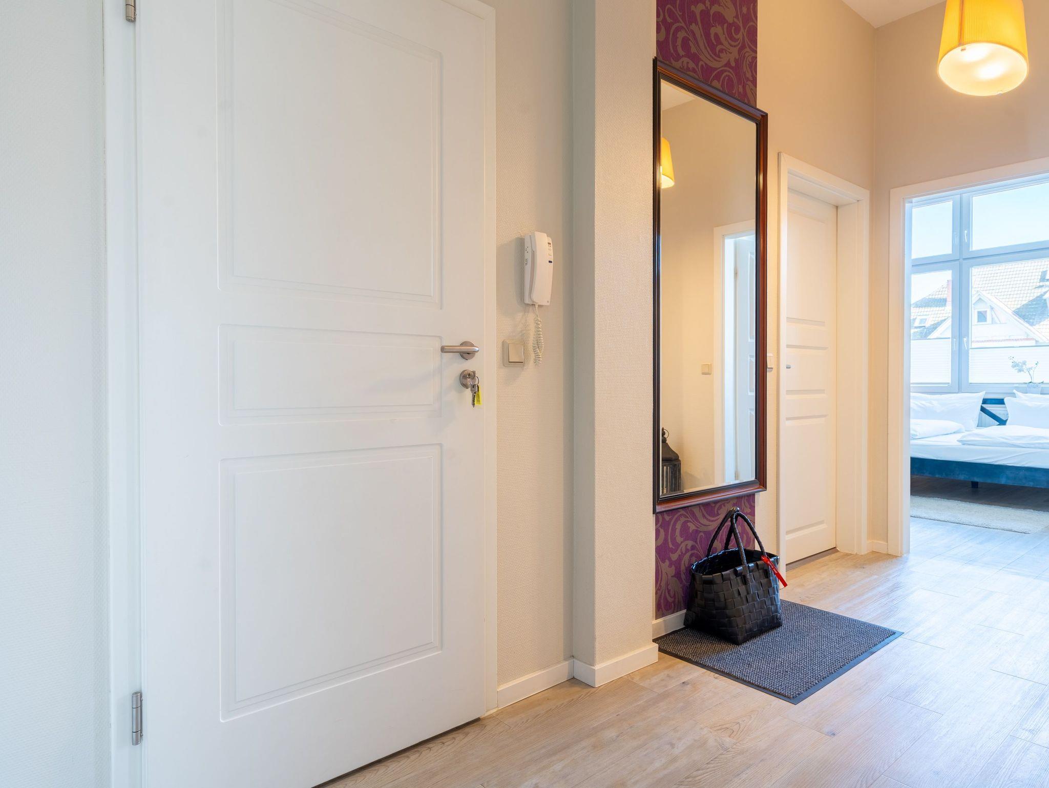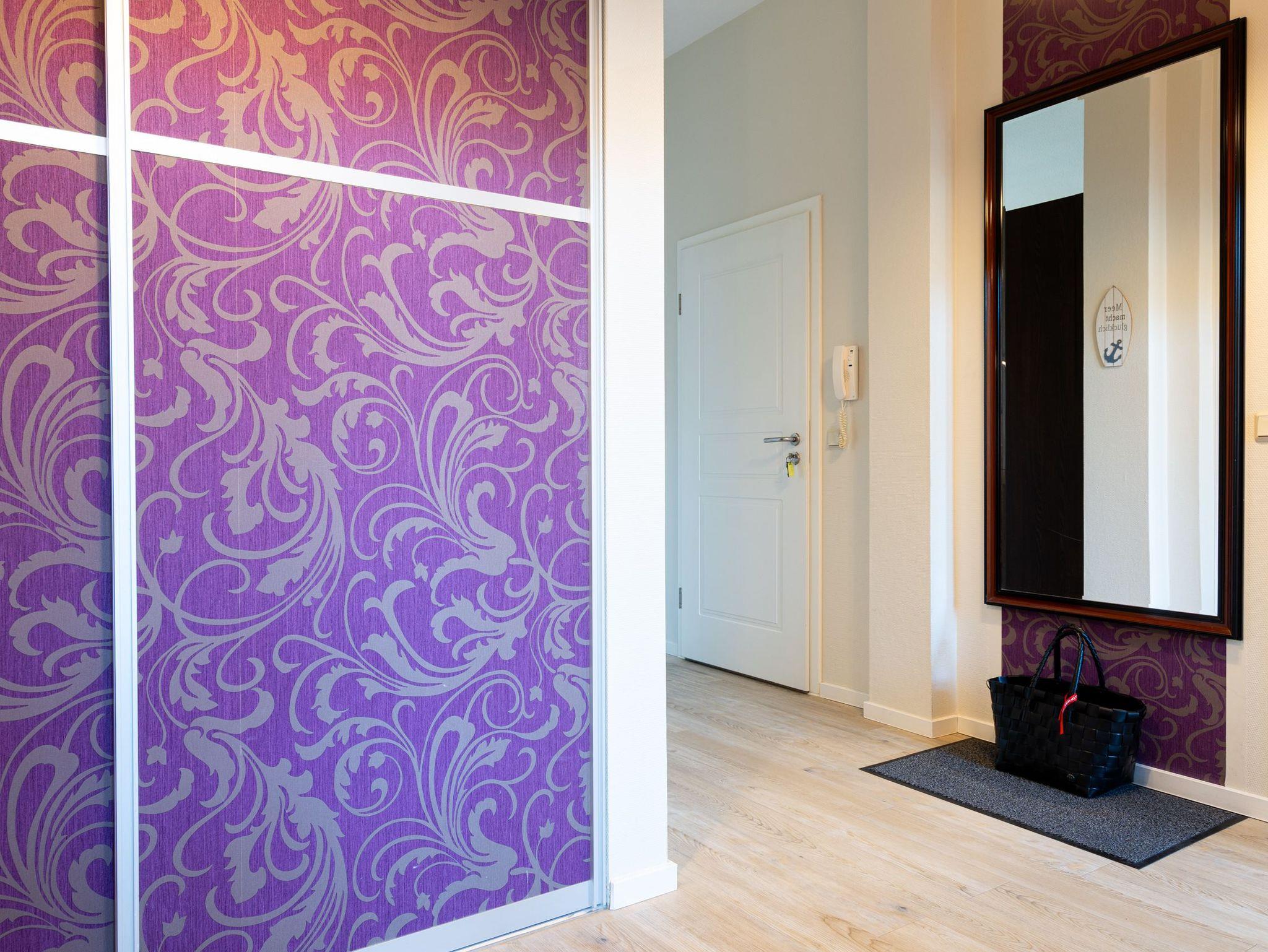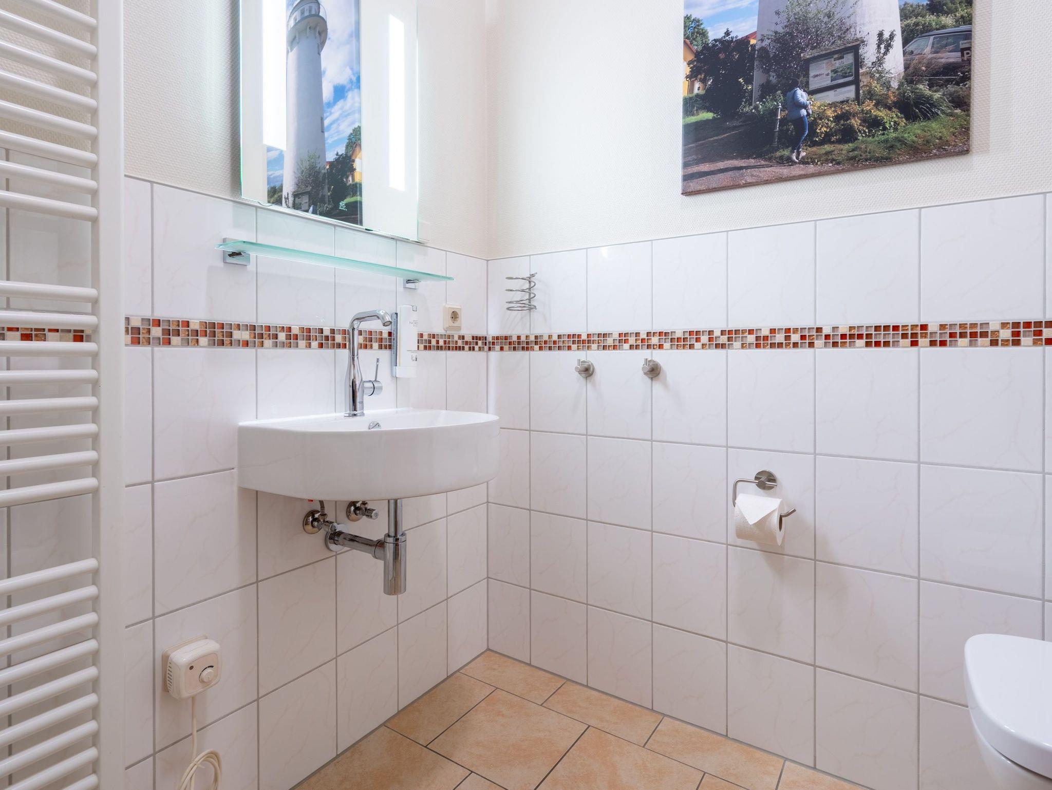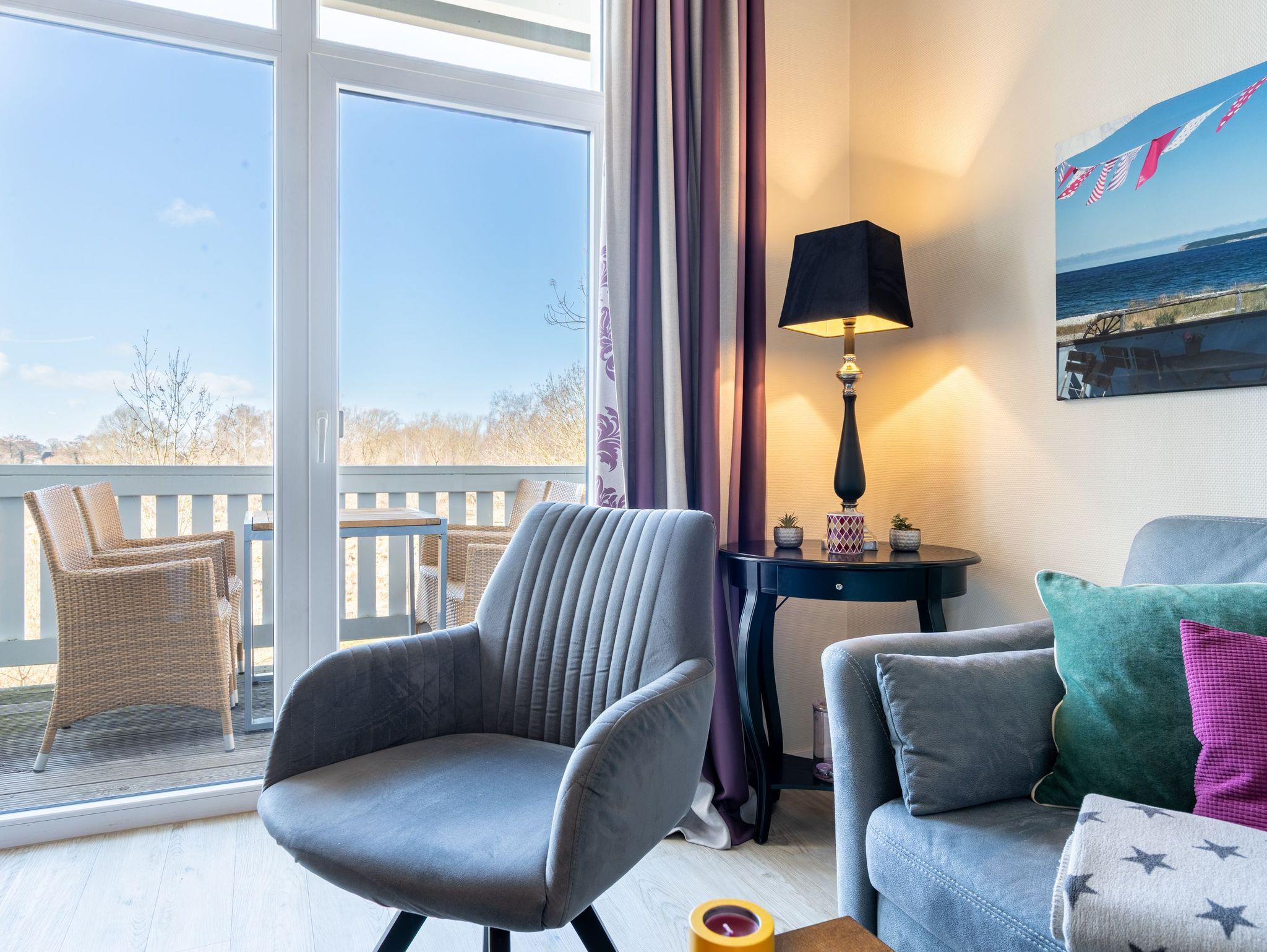 Stylische Farben und ein moderner Look versprühen sofort das passende Urlaubsfeeling. Die schöne 3-Raum-Ferienwohnung (75 qm) befindet sich im 1. Obergeschoss des Hauses und bietet Platz für 4 Erwachsene und ein Kleinkind bis 3 Jahre. An den Wohnbereich mit bequemer Sitzgruppe und schönen Kaminofen schließt sich die offene Küche mit Essplatz an. Auf dem Südbalkon lässt es sich besonders gut relaxen und man genießt den Blick ins Grüne. Die beiden Schlafzimmer mit Doppelbetten und TV, ein Bad mit Dusche und WC und ein Gäste-WC ergänzen die Wohnung. Für die Wohnung steht ein PKW-Stellplatz zur Verfügung. Ein WLAN-Netz im Haus kann kostenfrei genutzt werden. Auf Wunsch stellen wir für unsere kleinen Gäste ein Kinderreisebett (ohne zusätzliche Matratze [&] Bettzeug) und einen Kinderhochstuhl ( gegen einen Aufpreis) zur Verfügung. Für Ihren Komfort sind die Betten bei der Anreise bezogen und Handtücher liegen bereit (Erstausstattung). Für den Tag am Meer steht Ihnen als besonderes Bonbon von Mitte Mai bis Ende September (je nach Witterung) ein Strandkorb am Strand kostenlos zur Verfügung.