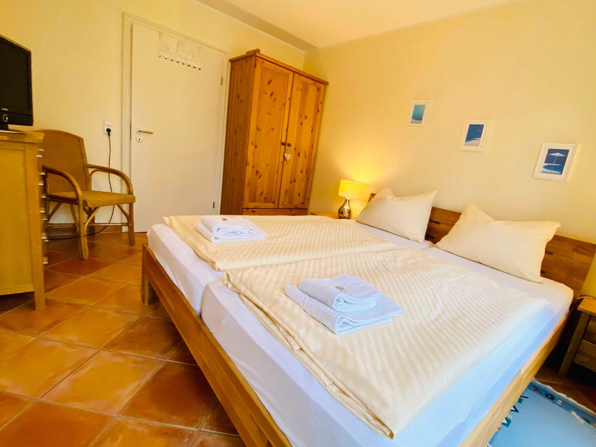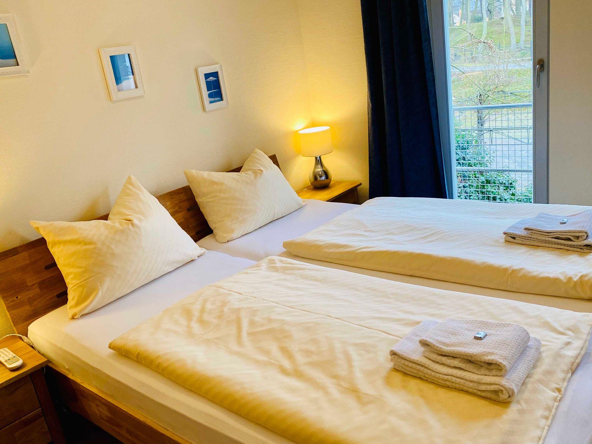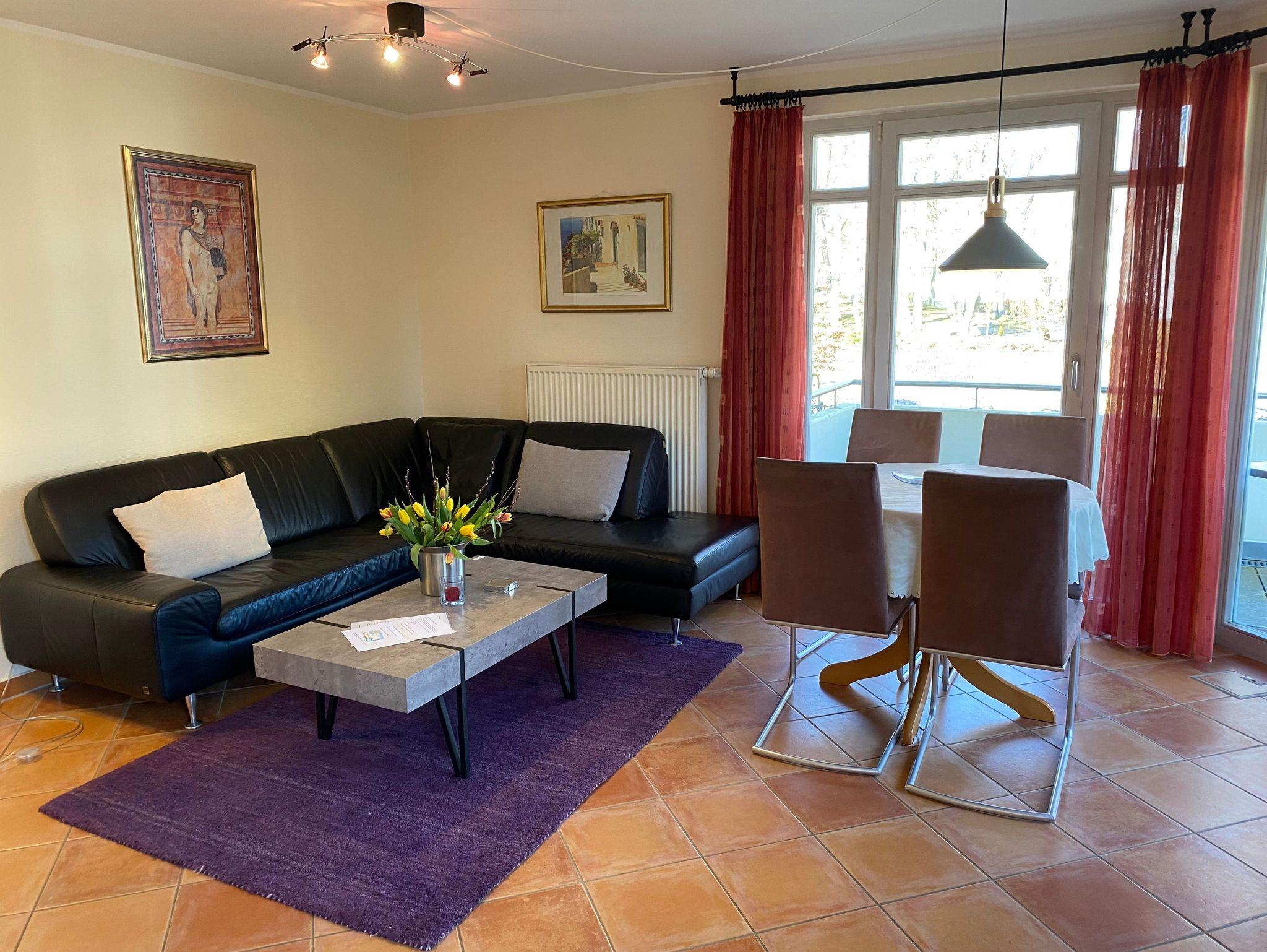 Genießen Sie Ihren Urlaub in dieser schönen 3-Raumwohnung Nr. 11 mit Balkon Richtung Park der Residenz Bleichröder. Der Wohnraum bietet durch eine funktionale Aufteilung zwischen Küche, Esstisch und Couchecke genug Platz für die gesamte Familie. In der Küche stehen Geschirrspüler, Backofen, Herd, Mikrowelle und ein großer Kühlschrank mit Gefrierteil zur Verfügung. Beide Schlafzimmer sind mit Doppelbetten versehen, im großen Schlafzimmer gibt es einen zweiten TV. Diese moderne Ferienwohnung ist komplett mit Terracotta-Steinfliesen ausgelegt, sehr praktisch. Zur Ferienwohnung gehört ein Bad mit Dusche.