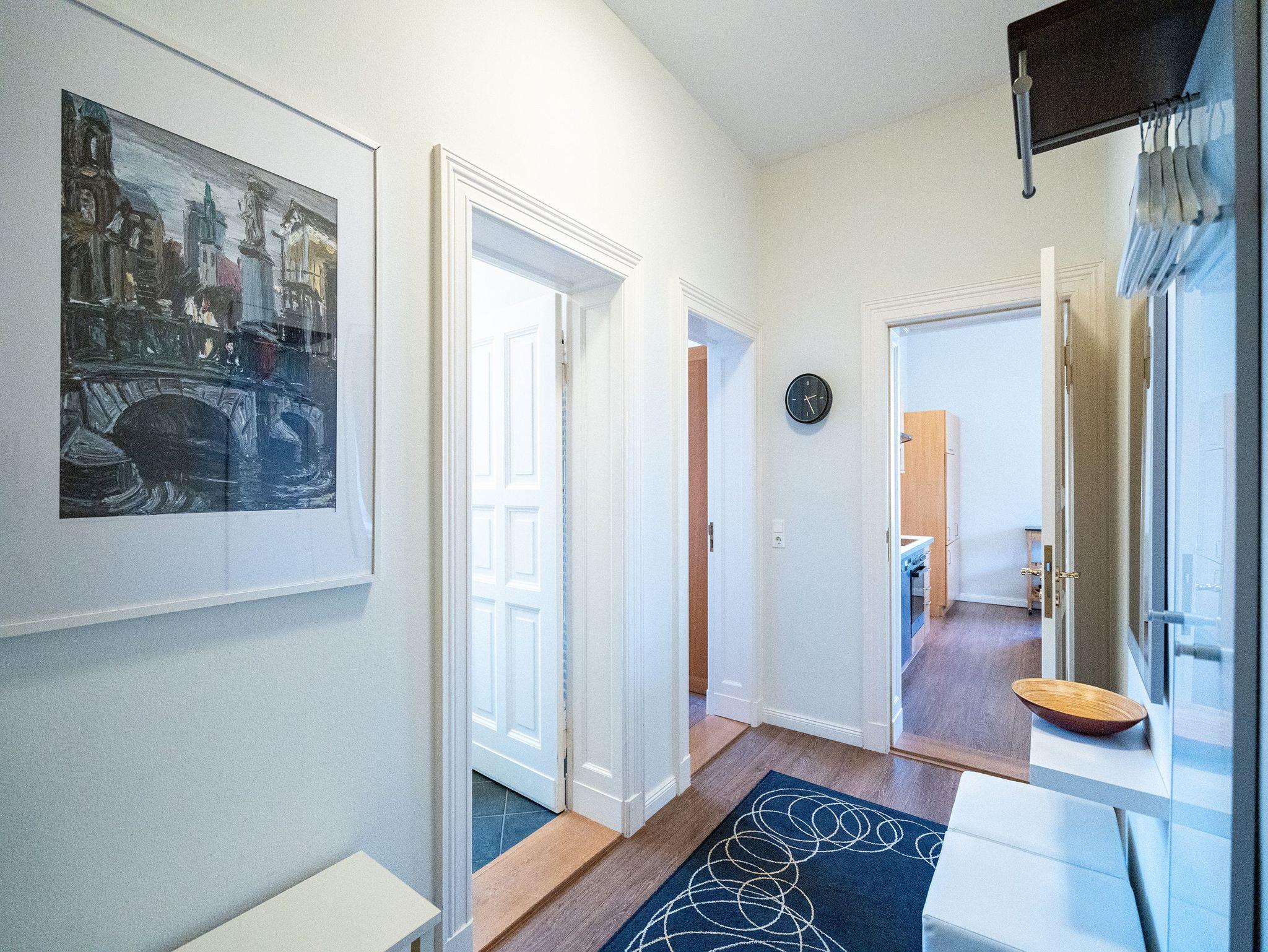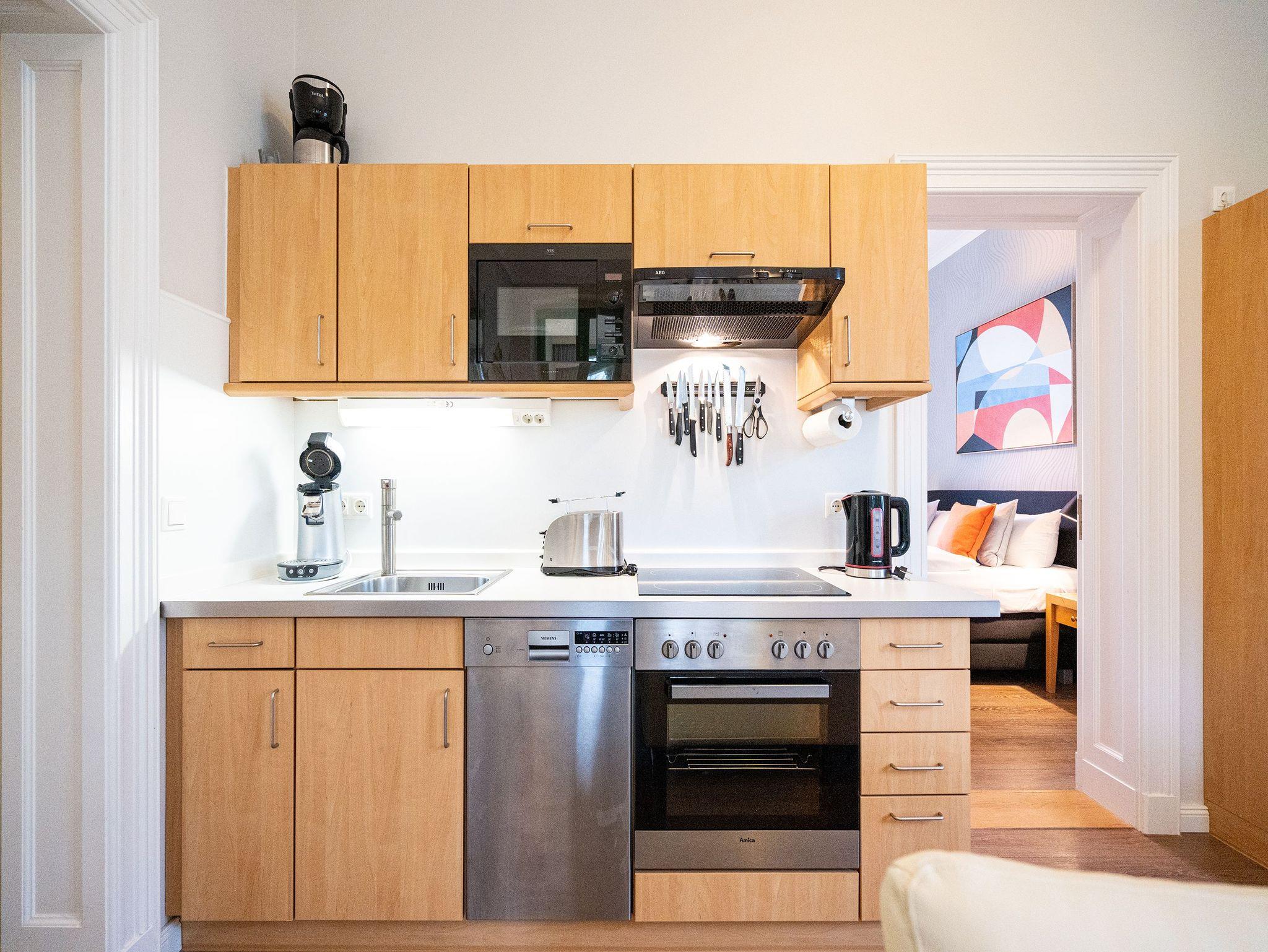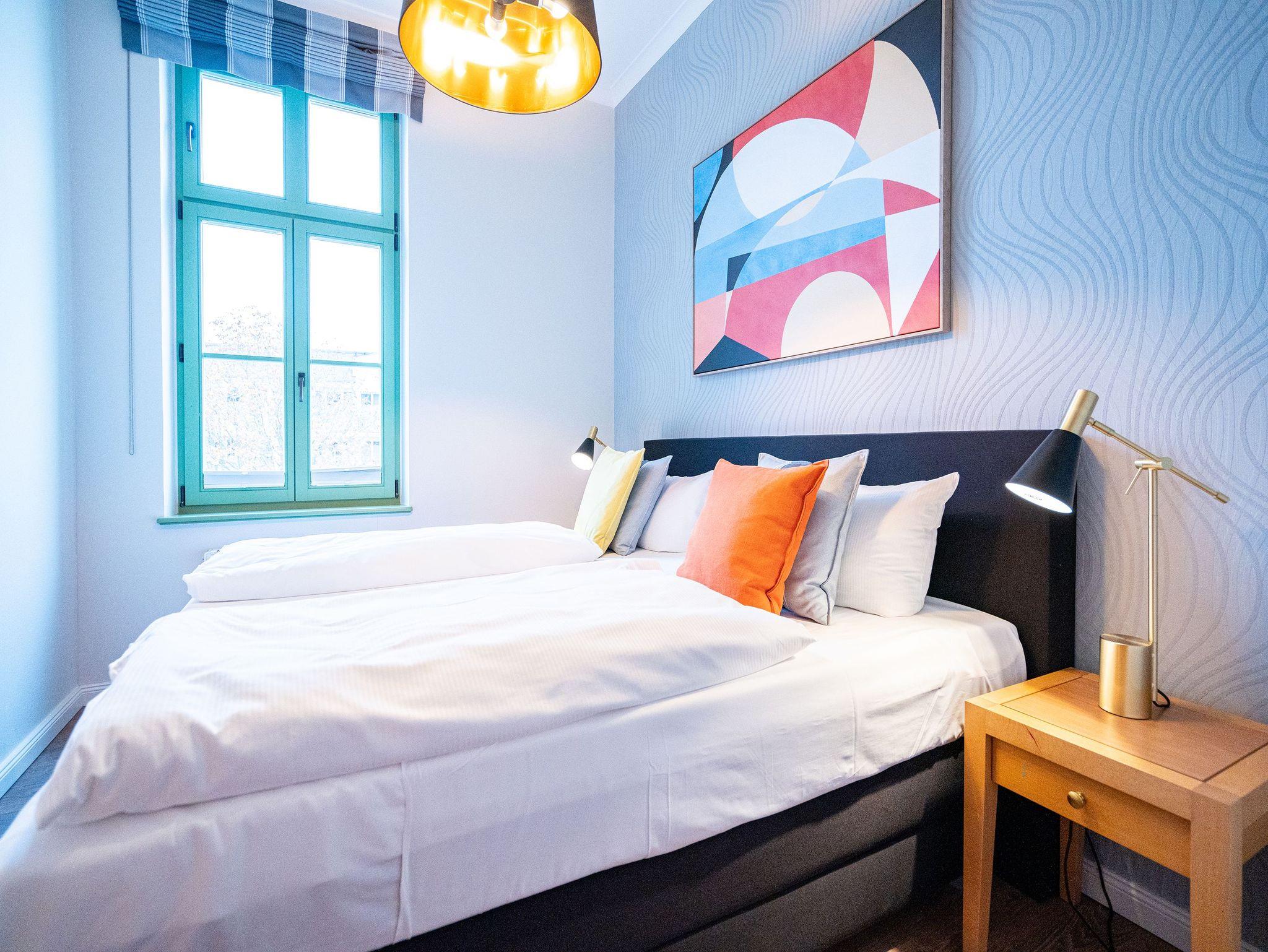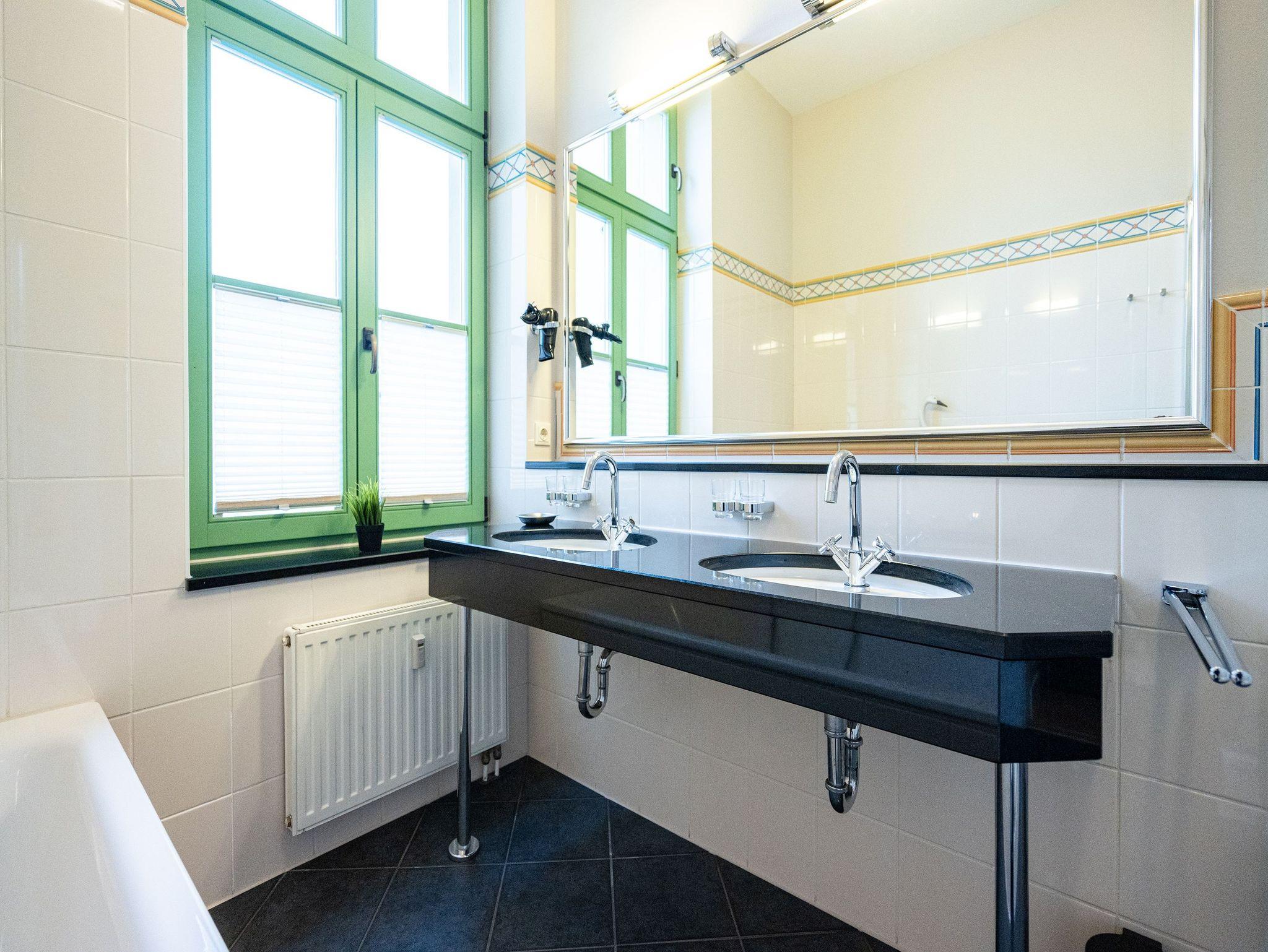 Die 3-Raum-Ferienwohnung im 1. Obergeschoss empfängt Sie mit Stil, Charme und einer Atmosphäre zum Wohlfühlen. Der helle Wohnbereich mit gemütlicher Sitzgruppe geht fließend in die komplett ausgestattete Küchenzeile über. In der verglasten Veranda genießen Sie Ihre Mahlzeiten in angenehmem Licht. Zwei geschmackvolle Schlafzimmer mit hochwertigen Boxspringbetten ( 1x Doppel- [&] 1x zwei Einzelbetten) versprechen erholsame Nächte. Das großzügige Bad mit Badewanne, Dusche und Doppelwaschbecken rundet den Komfort ab. Bettwäsche und Handtücher sind bei Anreise bereits bezogen. WLAN und ein Pkw-Stellplatz stehen kostenfrei zur Verfügung. Kinderbett und Hochstuhl sind auf Wunsch gegen Aufpreis erhältlich.