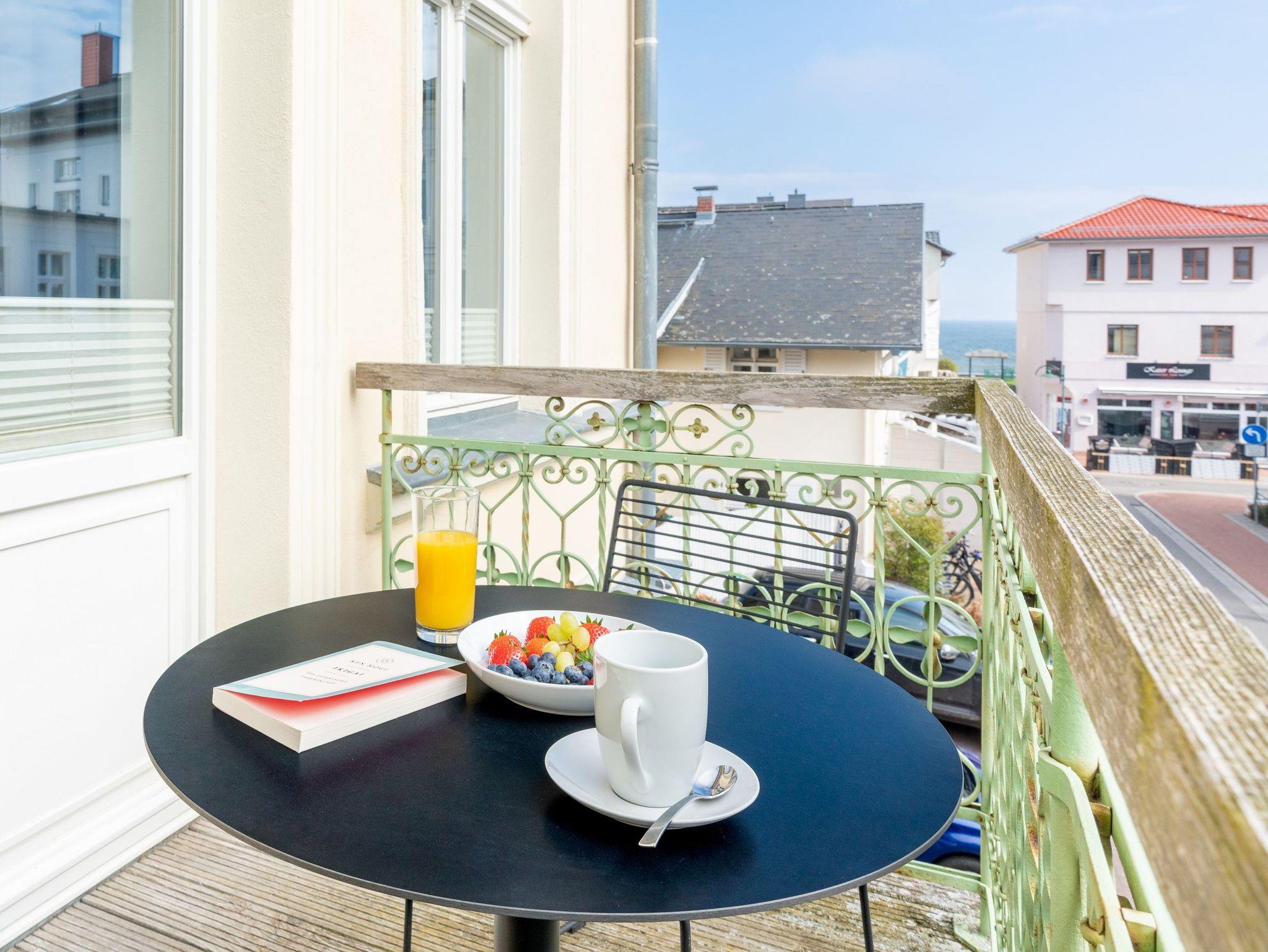 Im 1. OG der Villa Monico gelegen, hat sie einen schönen Süd-Ost-Balkon von welchem Sie aus schon morgens beim ersten Kaffee einen Blick auf die Ostsee werfen können. Bei der Renovierung ist Wert auf hochwertige Designmöbel sowie eine geschmackvolle Atmosphäre gelegt worden. Ideal zum Relaxen ist das geräumige und helle Wohnzimmer, welches Sie durch eine Doppelflügeltür betreten. Von der bequemen Sitzgruppe, oder dem Liegesessel aus haben Sie Blick auf den großen Flat TV (55 Zoll). Ein kostenloser Netflix-Zugang ist bereits enthalten und bietet somit auch an grauen Herbsttagen eine schöne Abwechslung.