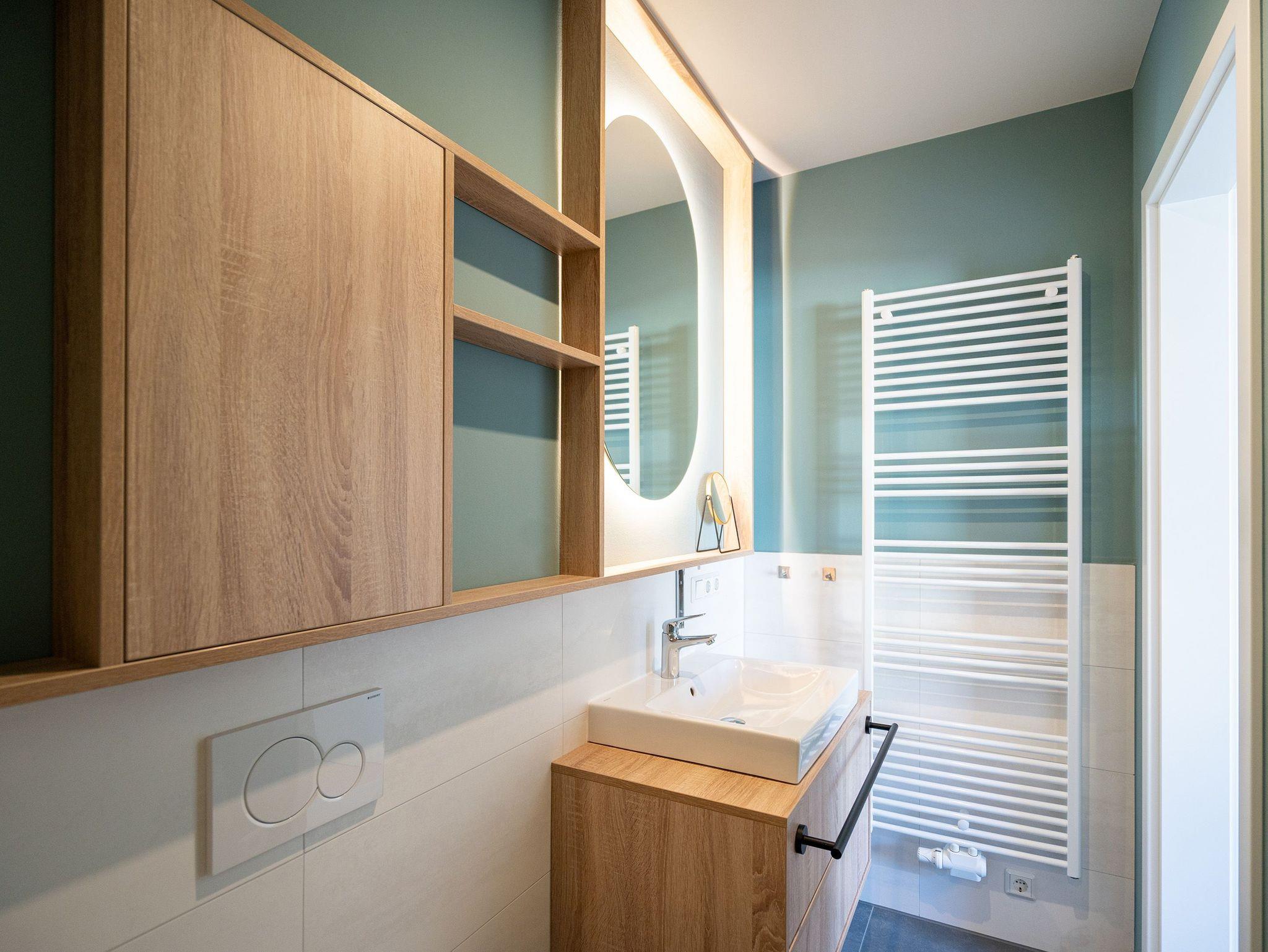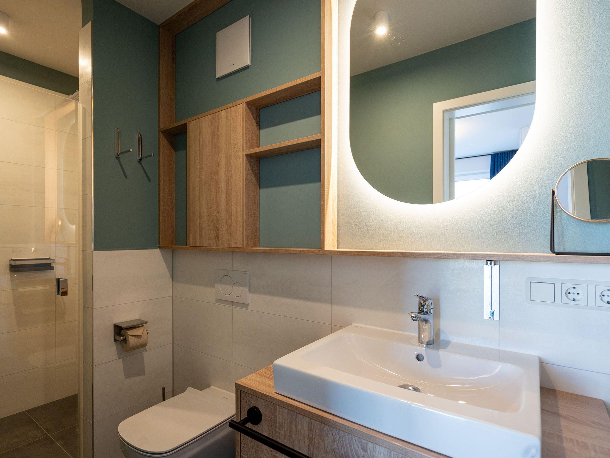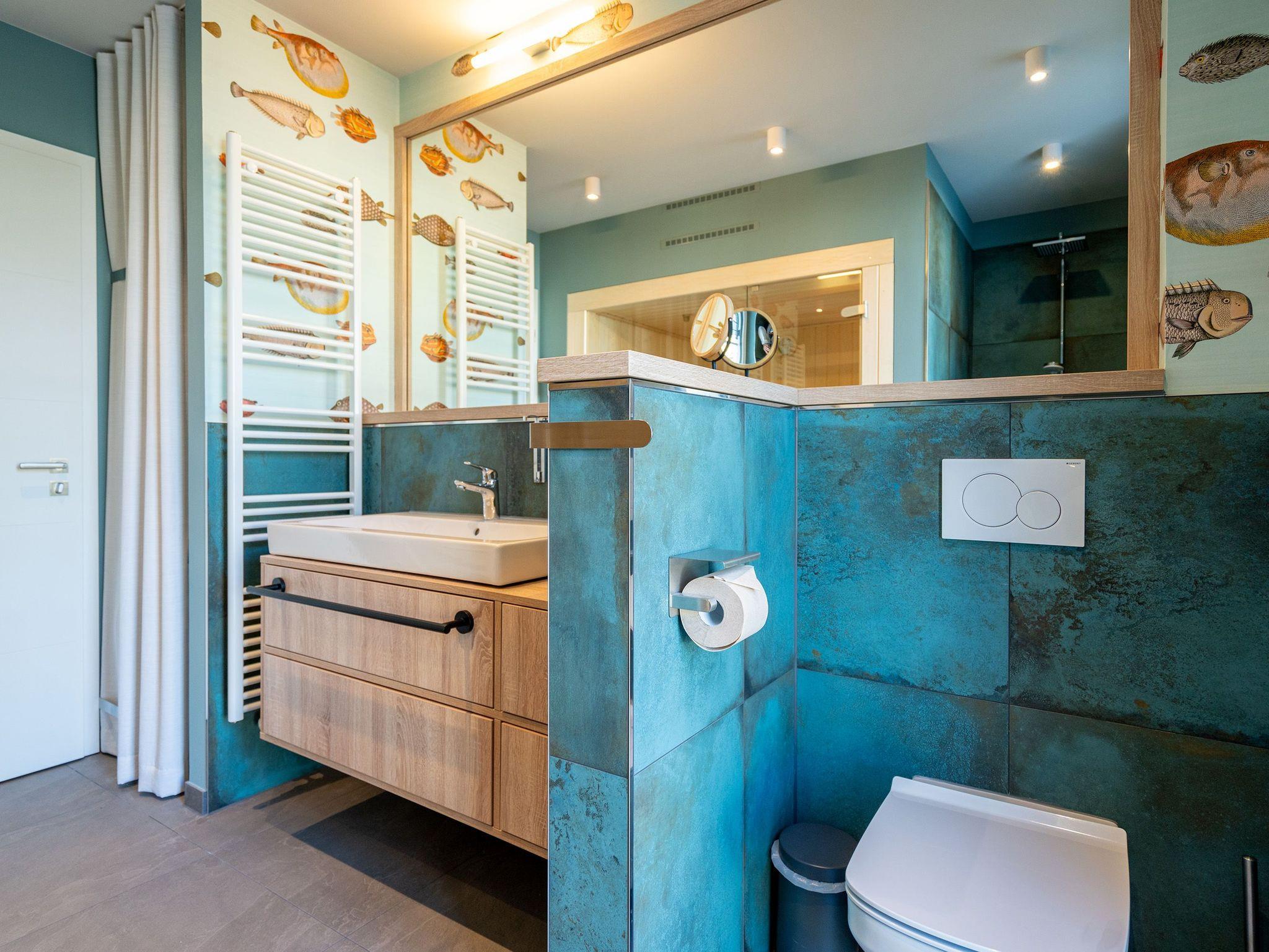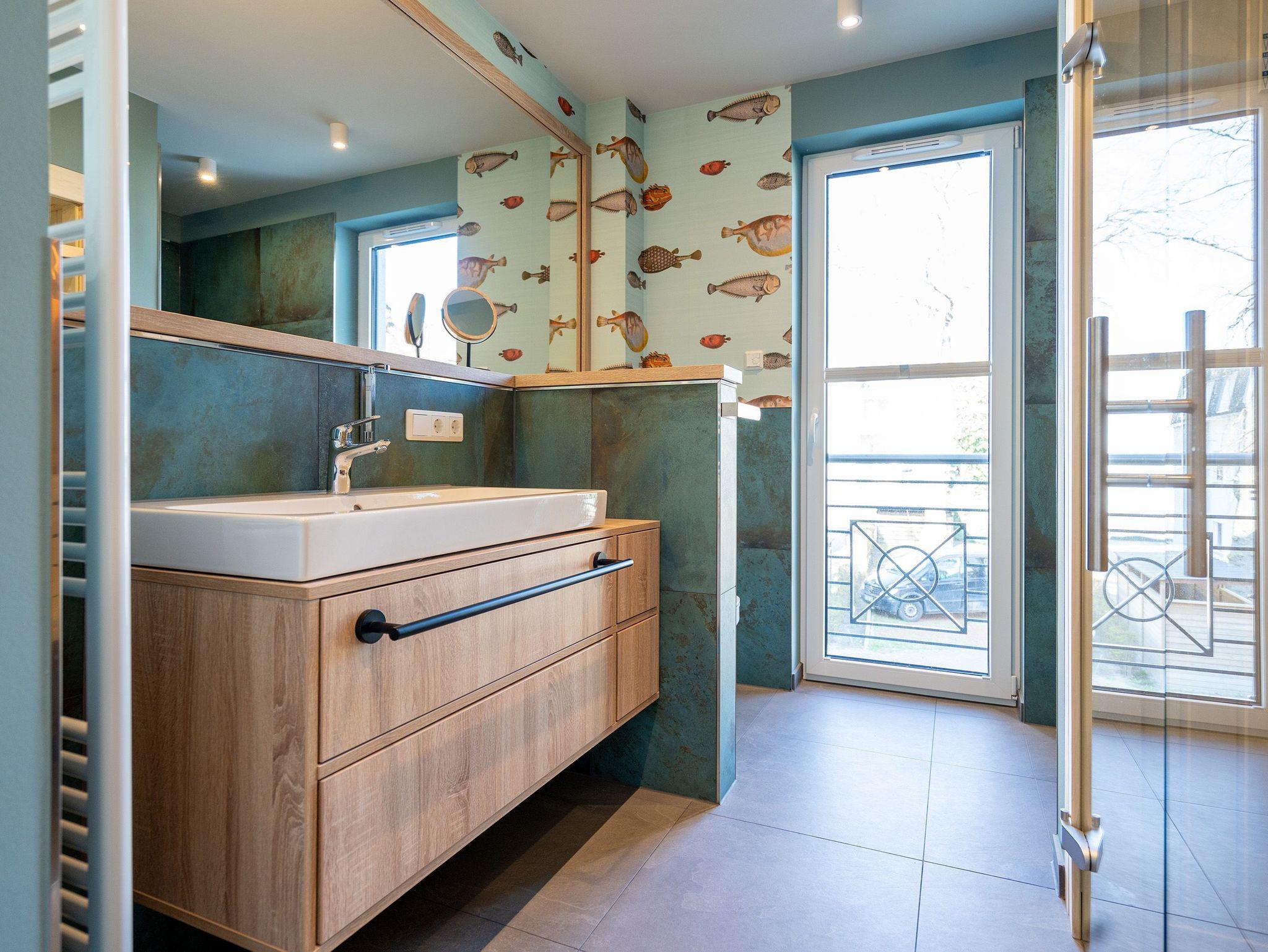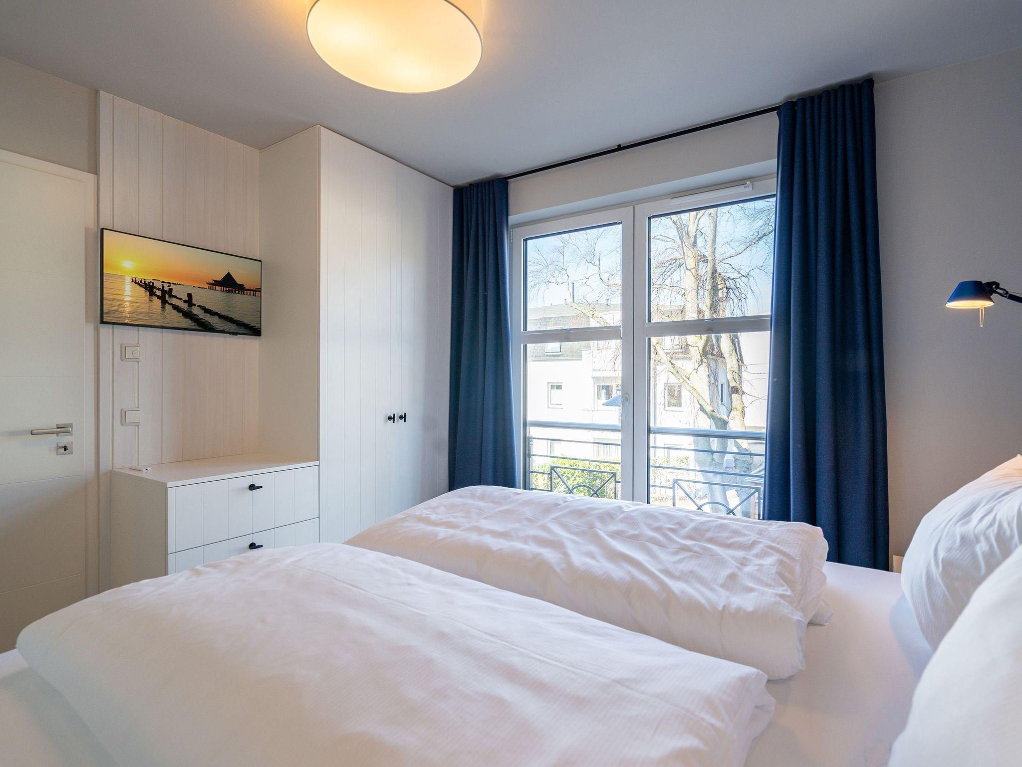 Herzlich willkommen in der exquisiten 3-Raum-Ferienwohnung Nr. 04 im Quartier am Strand! Diese großzügige und stilvolle 84 Quadratmeter Wohnung im 1. Obergeschoss bietet den idealen Rückzugsort für bis zu 4 Erwachsene und ein Kleinkind (in einem Kinderreisebett). Der offene Wohnbereich ist der perfekte Ort, um Ihre Urlaubstage zu genießen. Hier finden Sie eine gemütliche Sitzgruppe, einen Flachbildfernseher (43 Zoll) und einen einladenden Kaminofen. Ein Essplatz für 4 Personen lädt zu gemeinsamen Mahlzeiten und geselligen Abenden ein. Von hier aus gelangen Sie direkt auf den 9 Quadratmeter großen Süd-West-Balkon, auf dem Sie die Sonne und die frische Meeresbrise genießen können. Die voll ausgestattete Küchenzeile verfügt über moderne Annehmlichkeiten, darunter einen Induktionsherd und eine Mikrowelle, die Ihnen die Zubereitung von köstlichen Mahlzeiten erleichtern. Die Wohnung bietet zwei Schlafzimmer, von denen eines mit einem Boxspringdoppelbett (1,80m x 2,00m) ausgestattet ist und direkten Zugang zum innenliegenden Masterbad bietet. Hier finden Sie eine Dusche, einen Waschtisch und ein WC. Das zweite Schlafzimmer verfügt ebenfalls über ein komfortables Boxspringdoppelbett (1,80m x 2,00m), einen Flachbildfernseher und einen traumhaften Seeblick, der Ihre Morgen mit atemberaubenden Ausblicken bereichert. Zusätzlich zu dem Masterbad gibt es ein zweites Tageslichtbad mit Waschtisch, Dusche, WC, Waschmaschine und Trockner, um Ihren Aufenthalt so angenehm wie möglich zu gestalten. Für Ihre Entspannung sorgt die finnische Sauna für 2-3 Personen, in der Sie sich nach einem erlebnisreichen Tag erholen können. Genießen Sie den Ausblick Richtung Ostsee vom 2. Balkon (6 qm) aus und erleben Sie Momente der Ruhe und Entspannung. Ihr Fahrzeug findet einen sicheren Platz in der Tiefgarage, der auch eine optional buchbare E-Ladesäule beinhaltet. Zudem steht Ihnen ein wohnungseigener Fahrradkeller zur Verfügung. Wir laden Sie herzlich ein, Ihre Ferien in dieser traumhaften Ferienwohnung zu verbringen und die Schönheit der Umgebung zu erkunden. Buchen Sie jetzt und freuen Sie sich auf unvergessliche Tage im Quartier am Strand!