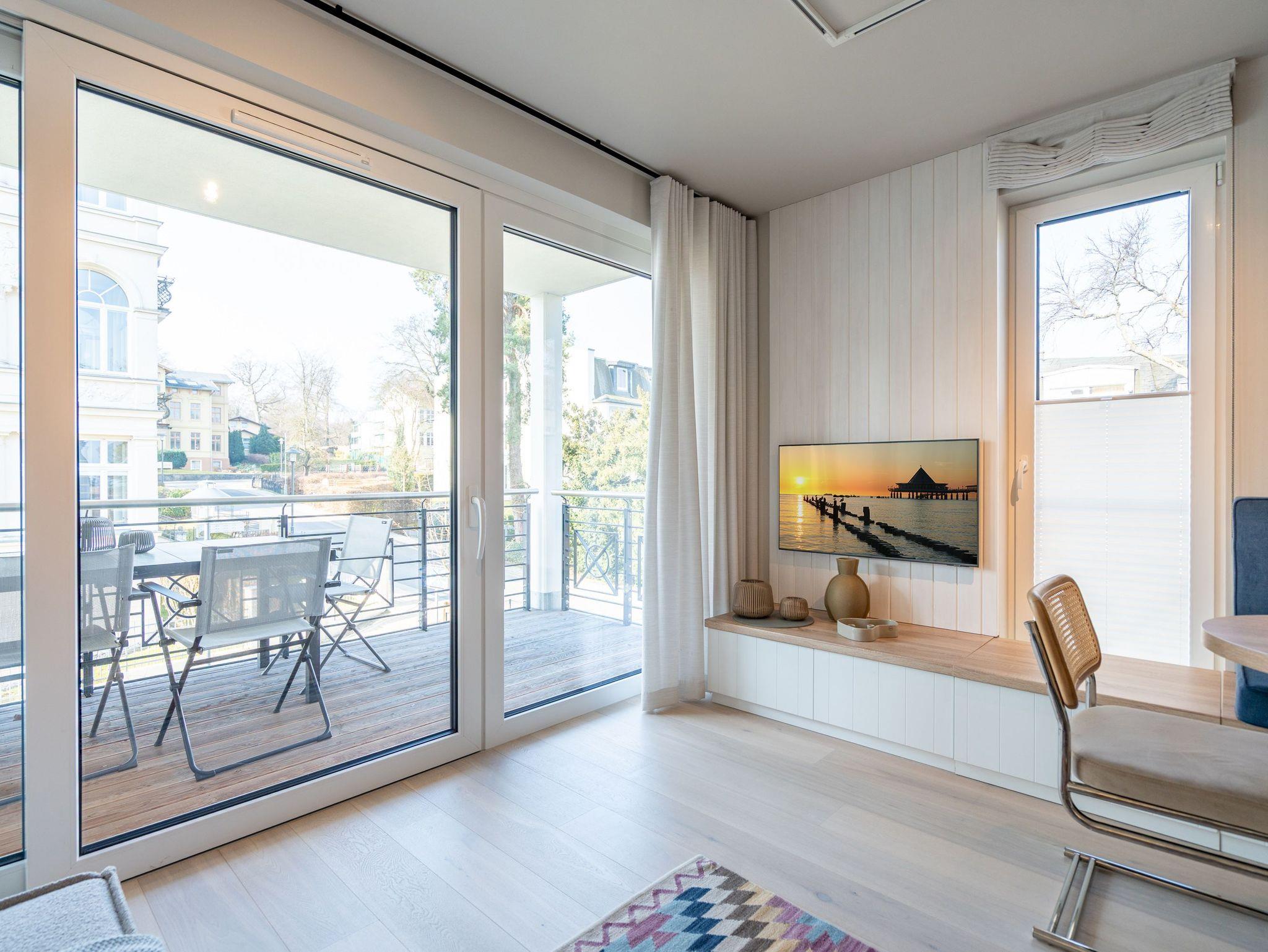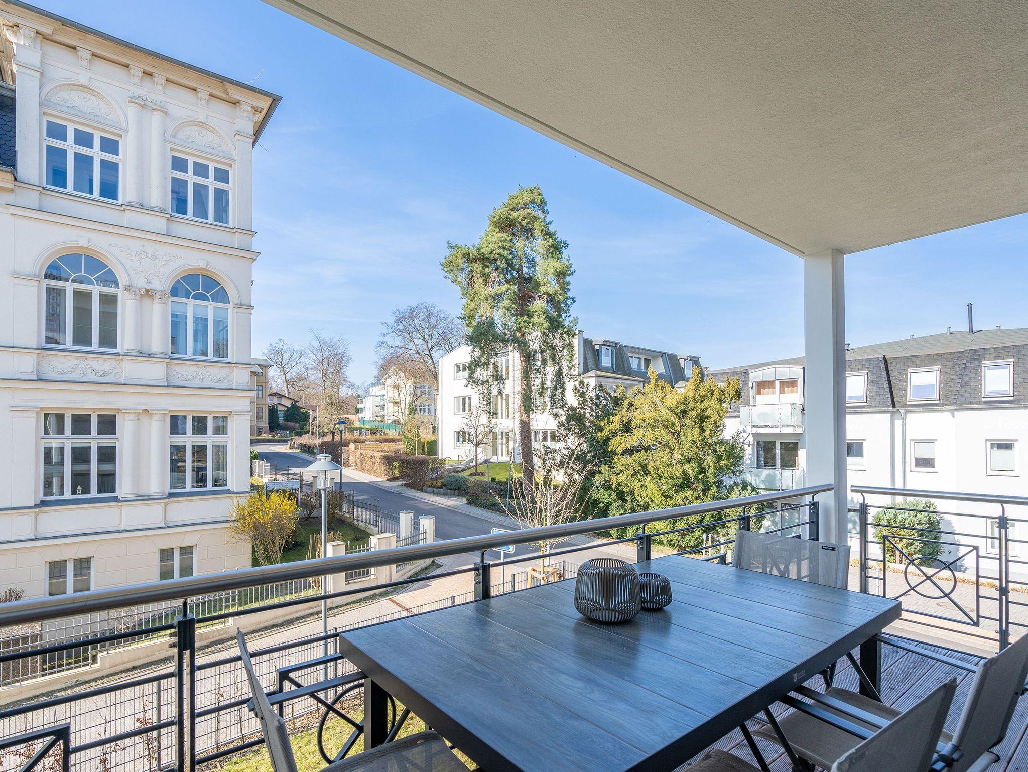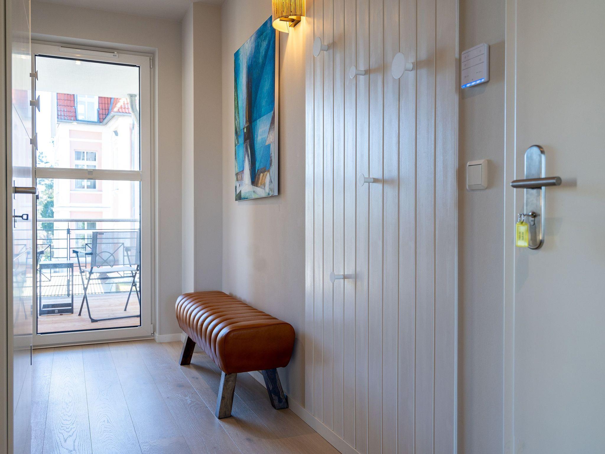 Nur 50m vom Strand entfernt und in einer kleinen Nebenstraße gelegen, empfängt Sie unser neues Domizil Quartier am Strand. Als zweites Objekt am Platz direkt an der schönen Strandpromenade gelegen, fügt sich die Anlage stilvoll zwischen Bäderstilvillen und Strandumgebung ein. Die insgesamt 9 Appartements und 2 Penthouses verfügen über helle und modern eingerichtete 2 bis 3 Zimmer. An kühleren Tagen sorgen Saunen und Kamin, die zu jedem Appartement gehören, für Entspannung in Ihrem Urlaub. Dem Klang der Wellen können Sie bequem von den Terrassen, Balkonen und Dachterrassen aus zuhören, denn jedes Appartement besitzt einen separaten Außenbereich. Der Blick auf die Ostsee ist Ihnen aus einigen Appartements möglich, aus den Penthouses garantiert. Offene Wohnbereiche und voll ausgestattete Küchen komplettieren das neue Objekt Quartier am Strand. Zudem gibt es eine hauseigene Tiefgarage (Einfahrthöhe 2,05 m) sowie einen Außenstellplatz (für Appartement 3), so dass ein eigener PKW-Stellplatz garantiert ist. Zu den weiteren Annehmlichkeiten des Objektes zählt ein Fahrstuhl, der Sie von der Tiefgarage bequem bis in die Etage Ihres Urlaubsdomizils leitet. Kostenfreies W-Lan rundet das Domizil ab. Wir wünschen Ihnen einen schönen Urlaub!