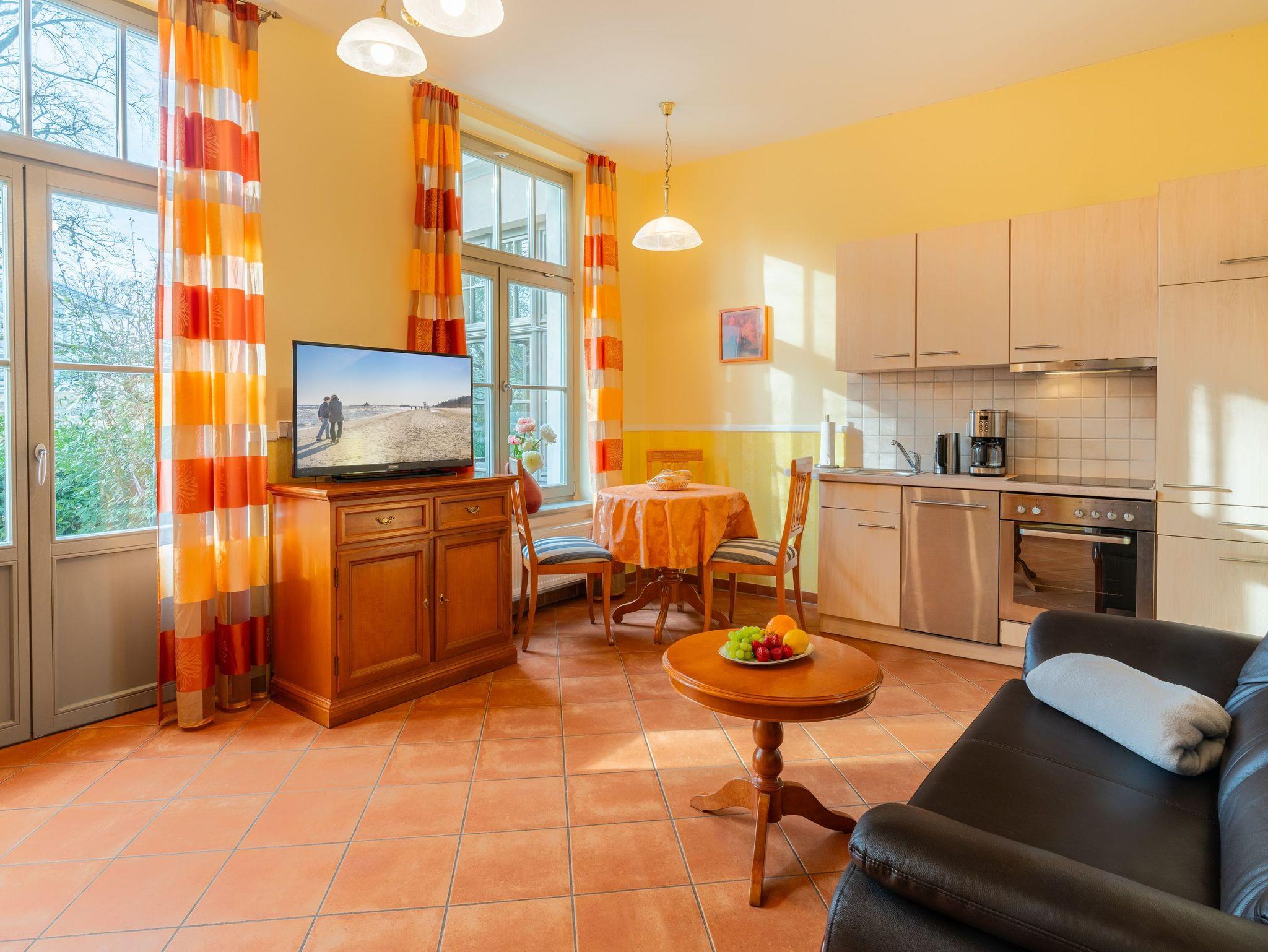 Mit großzügigen 37 m² bietet das behagliche Hochparterre-Appartement ausreichend Platz für bis zu 2 Personen. Die Ausstattung umfasst einen Flachbildfernseher, auf dem Sie auch während Ihres Urlaubs Ihre Lieblingssendungen verfolgen können. Die vollständig ausgestattete Küchenzeile ermöglicht Ihnen die Zubereitung eines köstlichen Abendessens.