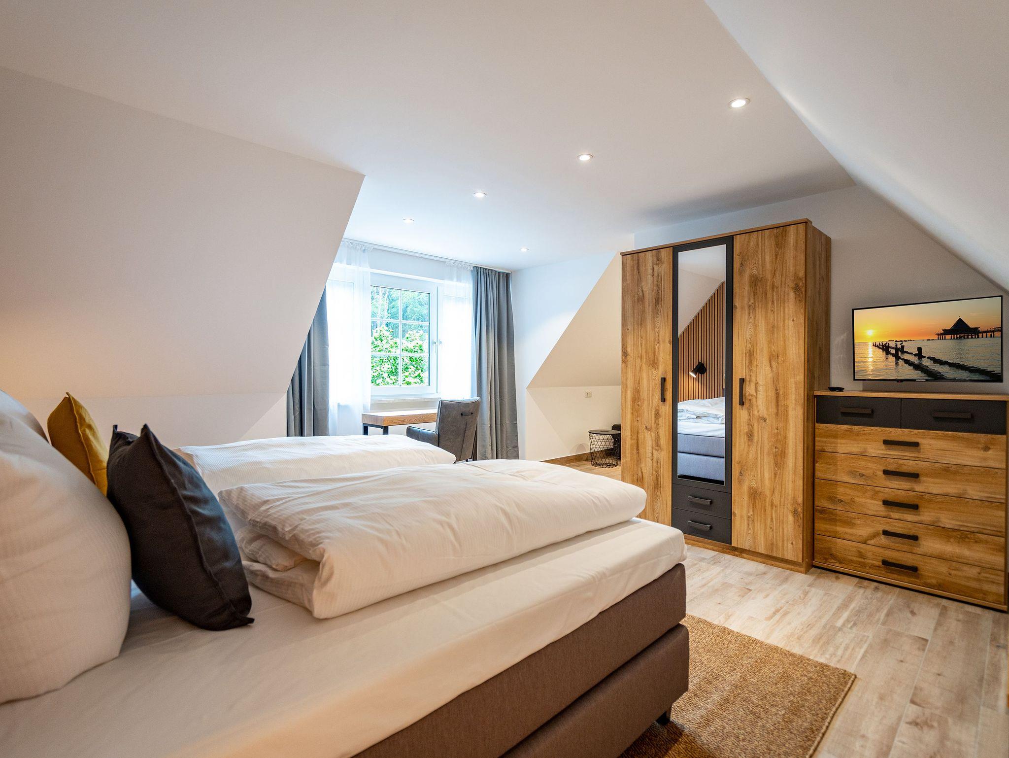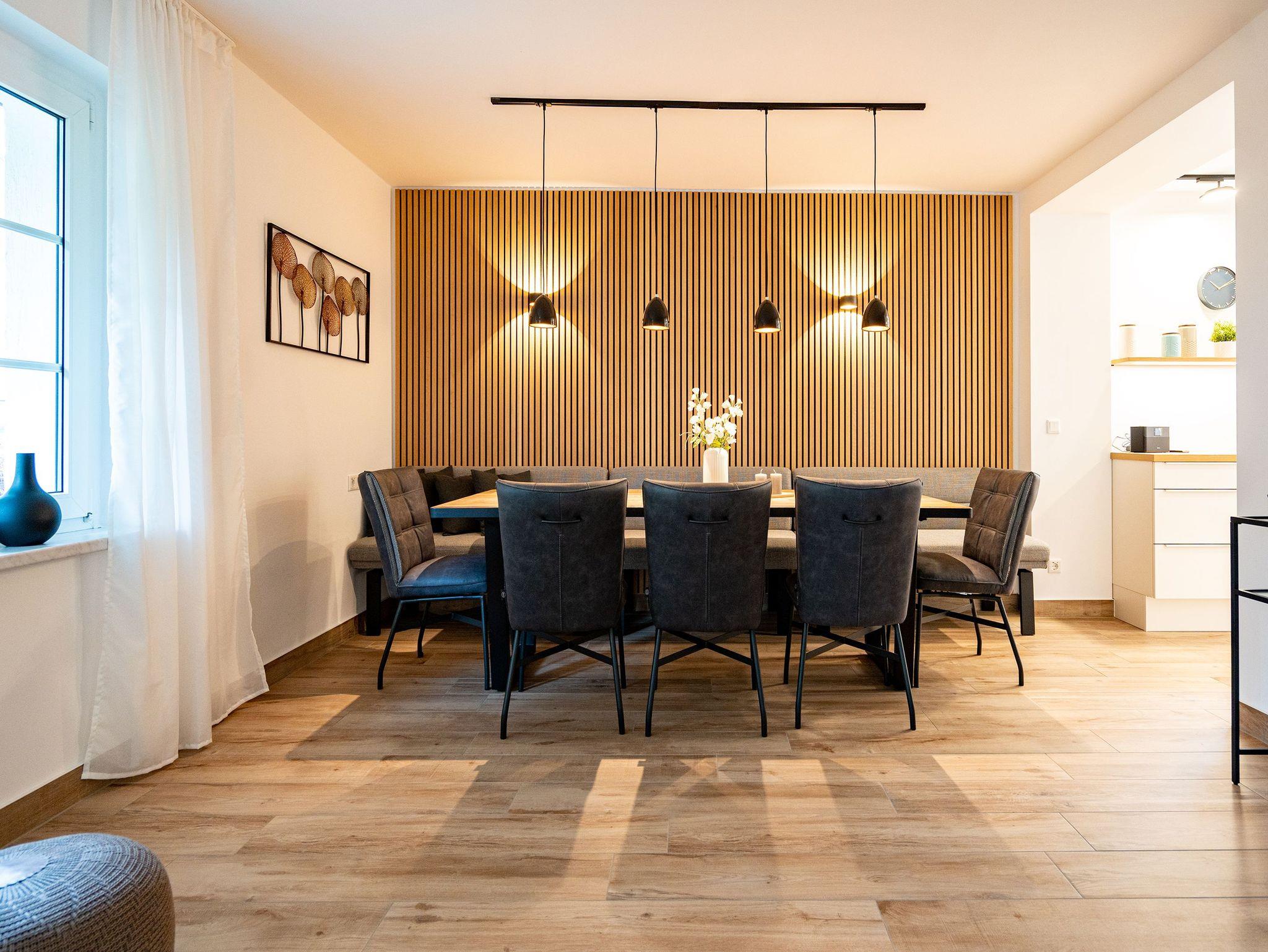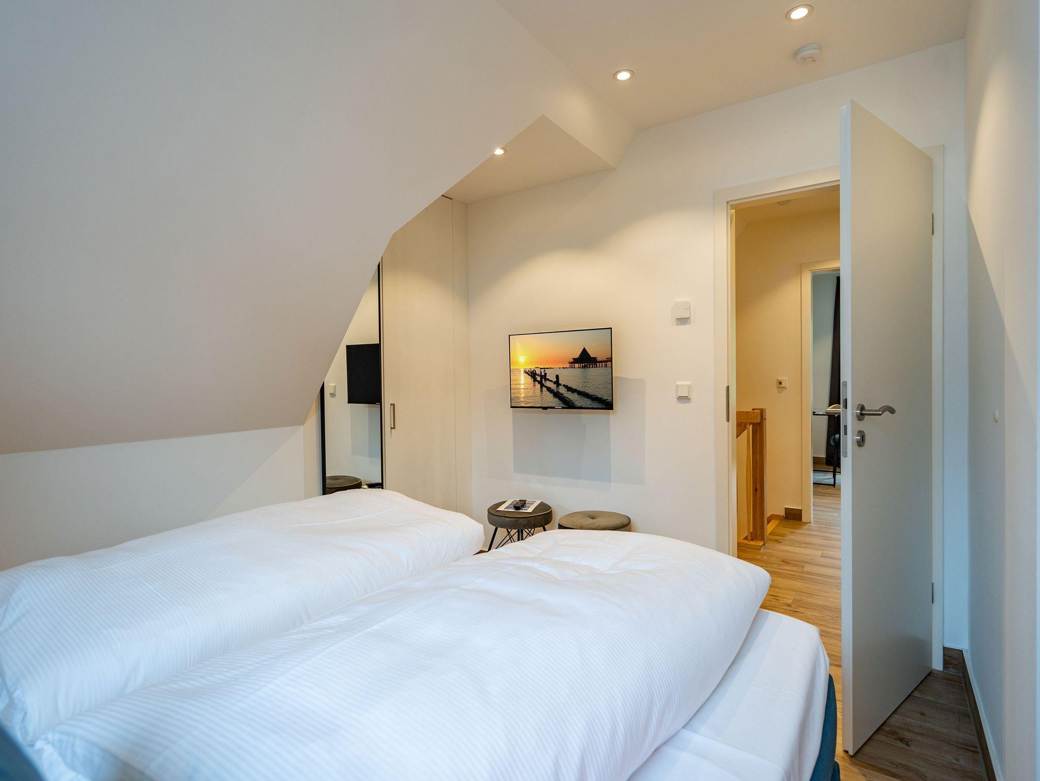 Willkommen im geräumigen Ferienhaus Amica über zwei Etagen, das perfekt für einen erholsamen Urlaub mit Familie oder Freunden geeignet ist. Mit einer Größe von 200 Quadratmetern bietet es ausreichend Platz für bis zu 8 Erwachsene, 1 Kind bis 16 Jahre und 2 Kleinkinder (bis 2 Jahre im Kinderreisebett). Das Ferienhaus liegt nur 700 Meter vom Strand entfernt, Ecke Setheweg und Landesstraße L266. Einkaufsmöglichkeiten und Gastronomie erreichen sie fußläufig. Im Erdgeschoss erwartet Sie ein offener Wohn- und Essbereich, der mit einer gemütlichen Sitzgruppe ausgestattet ist. Hier können Sie entspannen und gesellige Stunden verbringen. Ein großer 55-Zoll-Flat-TV und eine Bose Soundbar mit Bluetooth-Funktion stehen für Ihre Unterhaltung bereit. An kühleren Abenden sorgt der Gaskamin mit Fernbedienung für eine behagliche Atmosphäre. Der große Essplatz mit Sitzbank lädt zu gemeinsamen Mahlzeiten ein. Eine angrenzende voll ausgestattete Küche steht Ihnen zur Verfügung, sodass Sie Ihre Lieblingsgerichte ganz bequem zubereiten können. Im Erdgeschoss befindet sich außerdem ein Schlafzimmer mit einem komfortablen Boxspringdoppelbett (1,80 m x 2,00 m) und einem Flat-TV. Ein Badezimmer mit Dusche (1,00 m x 1,40 m), WC und Waschtisch steht Ihnen zur Verfügung. Zusätzlich gibt es ein Gäste-WC sowie einen Hauswirtschaftsraum mit Waschtrockner für Ihre Annehmlichkeiten. Das Obergeschoss beeindruckt mit einem großzügigen Badezimmer, das mit einer Dusche, einem Waschtisch, einem WC und einer finnischen Sauna ausgestattet ist. Hier können Sie sich nach einem ereignisreichen Tag wunderbar entspannen. Zwei weitere Schlafzimmer im Obergeschoss bieten jeweils ein komfortables Boxspringdoppelbett (1,80 m x 2,00 m), Einbaukleiderschränke und einen Flat-TV. Diese Rückzugsorte laden zum Ausruhen und Träumen ein. Das vierte Schlafzimmer ist besonders großzügig gestaltet und verfügt über ein Boxspringdoppelbett (2,20 m x 2,00 m), einen Kleiderschrank und Kommode sowie eine ausziehbare Schlafcouch, die als Aufbettung für ein Kind bis 16 Jahre genutzt werden kann. Von diesem Zimmer aus haben Sie Zugang zu einem eigenen Badezimmer mit Dusche, Waschtisch und WC. Um die Natur und die frische Luft zu genießen, stehen Ihnen zwei überdachte Terrassen zur Verfügung. Eine der Terrassen ist 12 Quadratmeter groß und die andere 16 Quadratmeter. Beide sind nach Südwesten ausgerichtet. Hier finden Sie bequeme Gartenmöbel vor. Ein eigener Gartenanteil steht Ihnen ebenfalls zur Verfügung. Während Ihres Aufenthalts können Sie kostenfrei das WLAN nutzen. Direkt vor dem Haus stehen Ihnen drei PKW-Stellplätze zur Verfügung. An einem Stellplatz befindet sich eine E-Ladestation (kostenpflichtig). Für Ihre Fahrräder haben wir eine Garage reserviert, die ausschließlich als Abstellplatz für Fahrräder vorgesehen ist.