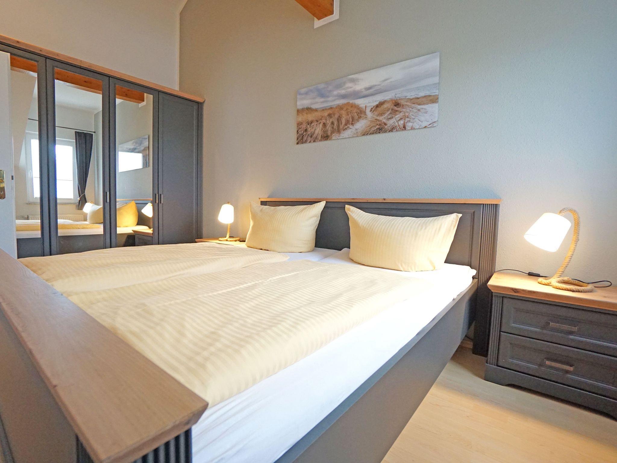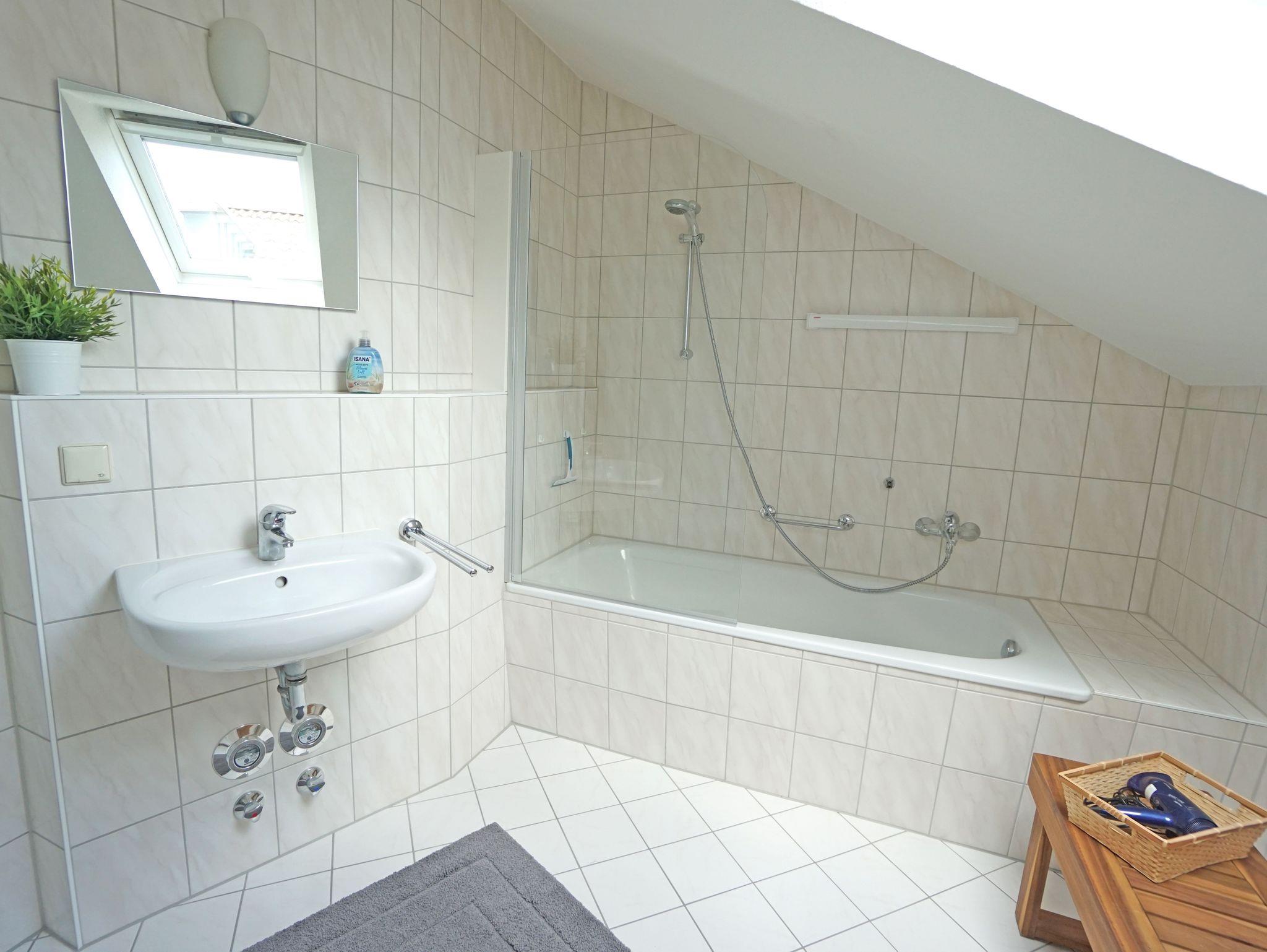 Die gemütliche Zwei-Zimmer-Ferienwohnung Nr. 11 für 2-4 Personen befindet sich im 2. Obergeschoss der Villa Madeleine. Der großzügige Wohnraum mit Küchenzeile ist mit einem Esstisch für 4 Personen sowie einer Schlafcouch und Flachbildfernseher ausgestattet. Vom Wohnraum gelangt man auf den Balkon mit nordöstlicher Ausrichtung. Die Küchenzeile ist gut ausgestattet und verfügt über einen Backofen mit Ceran-Kochfeld, einen Geschirrspüler sowie Kühlschrank, Kaffeemaschine, Toaster, etc.. Das Schlafzimmer ist mit einem Doppelbett, einem zweiten Flachbildfernseher und ausreichend Stauraum im Spiegelschrank ausgestattet. Das großzügige Badezimmer verfügt über eine Badewanne mit einer Duschabtrennung aus Glas. Ein Pkw-Stellplatz auf dem Grundstück ist der Wohnung zugeordnet. Für Fahrräder und/oder den Kinderwagen steht ein Fahrradschuppen zur Verfügung.
