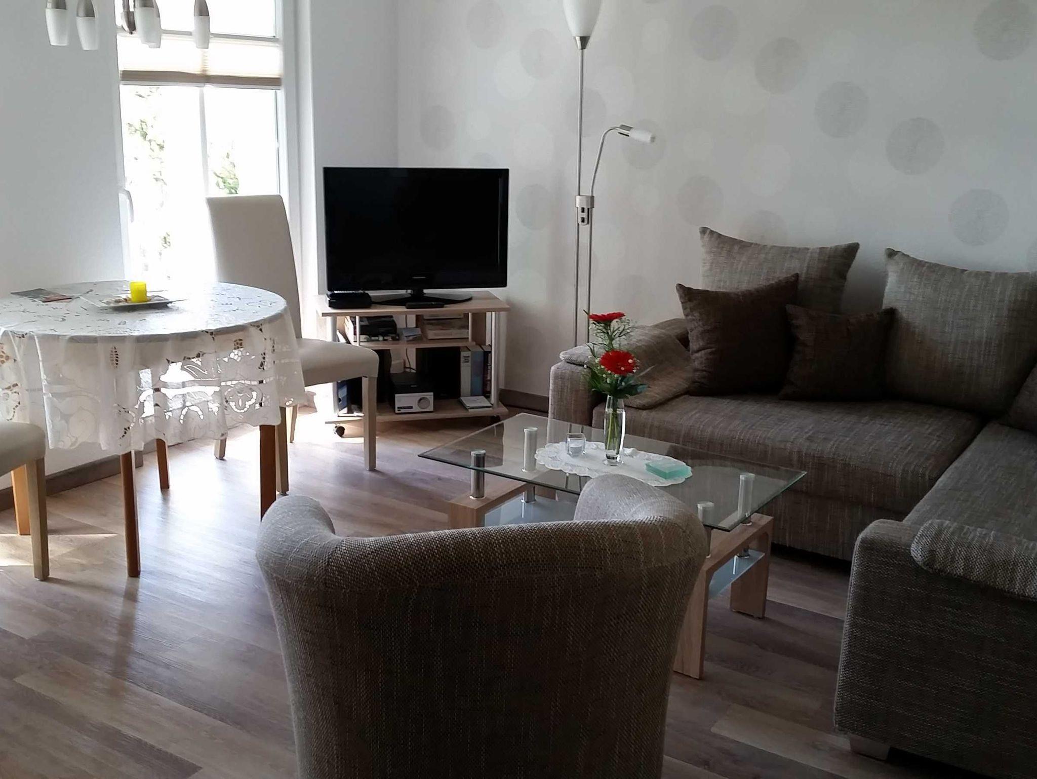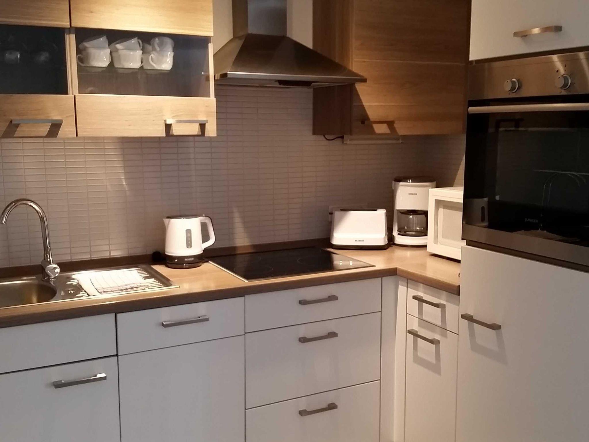 Die moderne, gepflegte NICHTRAUCHER-Ferienwohnung (45 qm) im 1. Obergeschoss mit Balkon verfügt über einen Wohnraum mit offener Küche (Backofen, Cerankochfeld, Geschirrspüler, Mikrowelle,Kaffeemaschine, Toaster, Kühlschrank mit Gefrierfach, etc.), einen Schlafraum (Doppelbett, Kommode und Kleiderschrank) sowie ein Bad mit Fenster und Dusche /WC. Erstausstattung Bettwäsche inklusive. Handtücher sind bitte mitzubringen oder mietbar für 8,-€ p.Person (Erstausstattung). PKW ? Stellplatz kostenlos