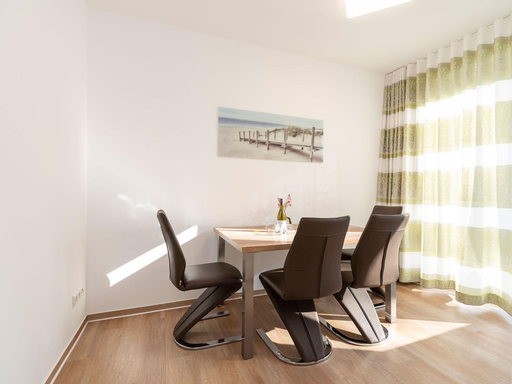 Das 3-Raum-Appartement Nr. 08 in der Villa Evi bietet alles, was man sich für einen erholsamen Urlaub an der Ostsee wünscht. Die Villa gehört zu den modernen „Residenzen am Kulm“, die 2015 auf einer malerischen Anhöhe im Seebad Heringsdorf erbaut wurden. Von hier aus genießen Sie nicht nur eine ruhige und exklusive Lage am Kavaliersweg, sondern auch einen wunderbaren Ausblick ? und sind trotzdem in wenigen Minuten am feinsandigen Strand, nur etwa 500 Meter entfernt. Restaurants, kleine Läden und Cafés in Heringsdorf sowie in den Nachbarorten Bansin und Ahlbeck sind bequem erreichbar und machen den Aufenthalt angenehm unkompliziert. Das Appartement ist 80 Quadratmeter groß und bietet Platz für bis zu vier Personen und ein Kleinkind. Der großzügige Wohnbereich lädt mit einer gemütlichen Sitzgruppe, Kamin und 55-Zoll-Flat-TV zum Entspannen ein. Von hier aus betreten Sie auch einen der beiden Balkone, die sich perfekt für ein Frühstück in der Morgensonne oder einen ruhigen Abend bei frischer Seeluft eignen. Die offene Küche ist komplett ausgestattet und schließt direkt an den Essbereich für vier Personen an. Auch von hier führt eine Tür auf den zweiten Balkon. Zwei Schlafzimmer sorgen für erholsame Nächte: Das Hauptschlafzimmer verfügt über ein Boxspringbett (1,80 m x 2,00 m) und direkten Zugang zum eleganten Badezimmer. Das zweite Schlafzimmer ist mit zwei einzelnen Boxspringbetten (1,00 m x 2,00 m) eingerichtet. Beide Räume sind mit einem eigenen Flat-TV ausgestattet. Das Badezimmer selbst bietet mit Dusche, Badewanne, Sauna, Waschtisch und WC echten Komfort, dazu gibt es ein separates Gäste-WC. Zwei PKW-Stellplätze, kostenfreies WLAN und ein Fahrradraum im Keller stehen ebenfalls zur Verfügung. Auf Wunsch können Kinderreisebett und Hochstuhl bereitgestellt werden (gegen Aufpreis). Handtücher und Bettwäsche liegen bereits bei Ihrer Ankunft bereit, damit der Urlaub sofort entspannt beginnen kann. So steht einem unbeschwerten Aufenthalt in Heringsdorf nichts im Weg ? in einem Appartement, das Komfort, Stil und Strandnähe harmonisch verbindet.