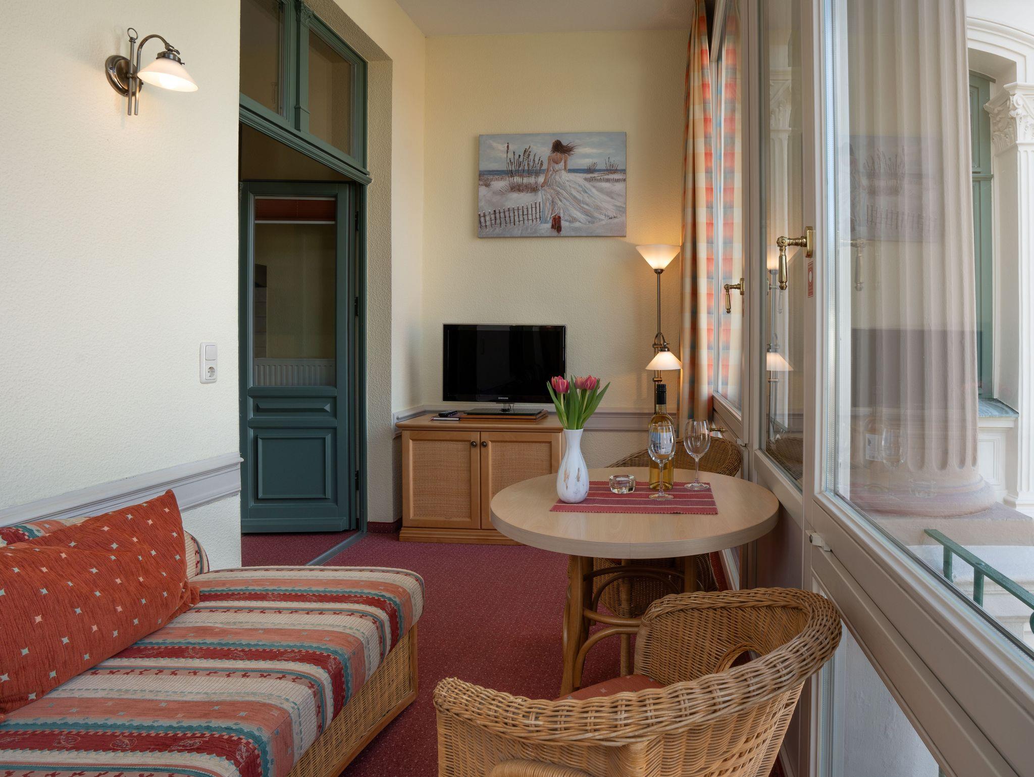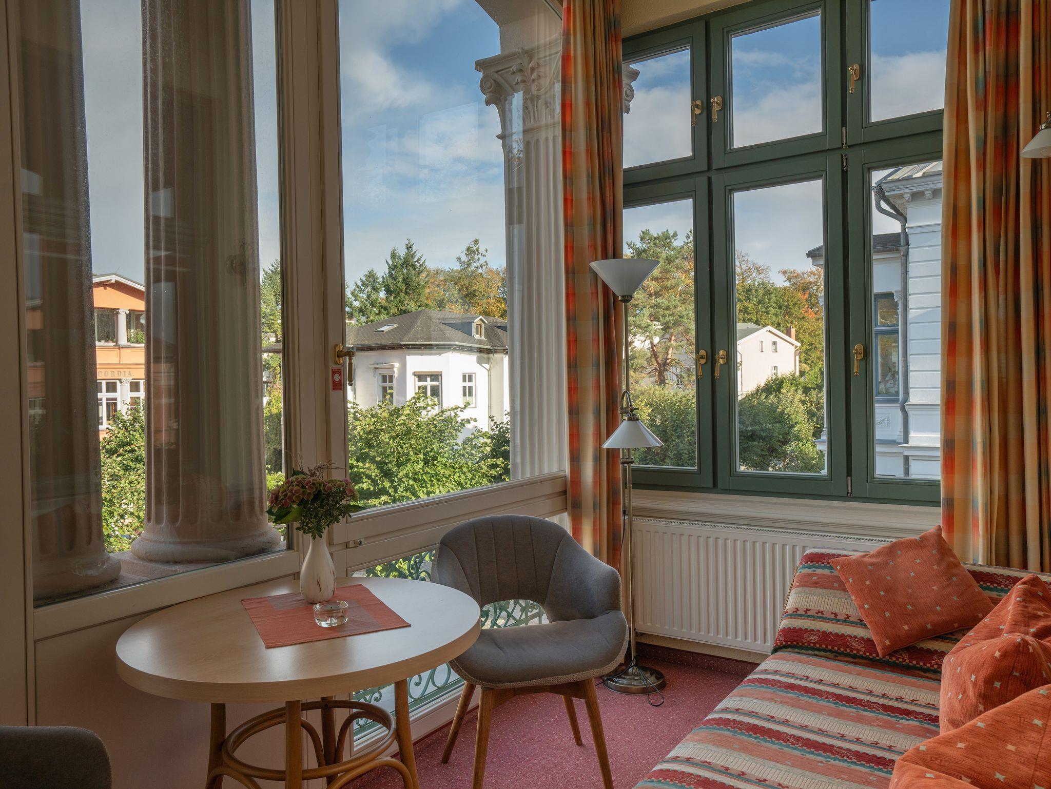 Auf der Terrasse vor dem Haus (Gemeinschaftsnutzung) haben Sie einen herrlichen Blick auf die alten Villen im Stil der Bäderarchitektur.