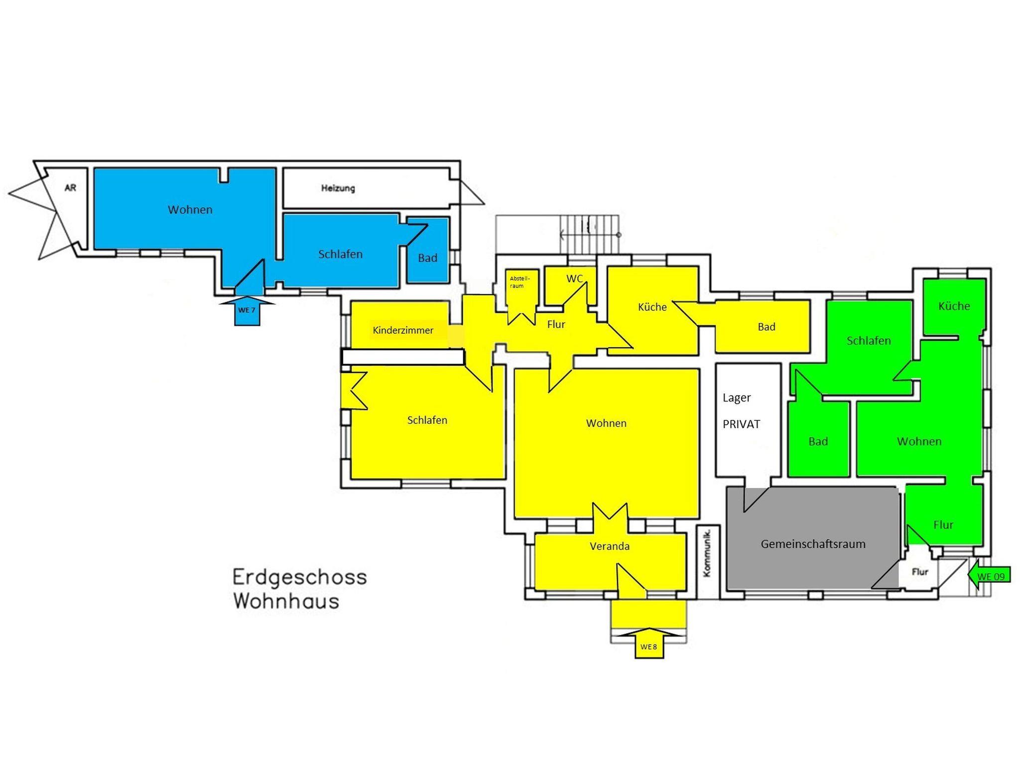 Haustiere können in Wohnung (WE07) und ins Gartenhaus gerne mitgenommen werden. Es handelt sich um ein Nichtraucherobjekt, jedoch gibt es auch Appartements mit Balkon.