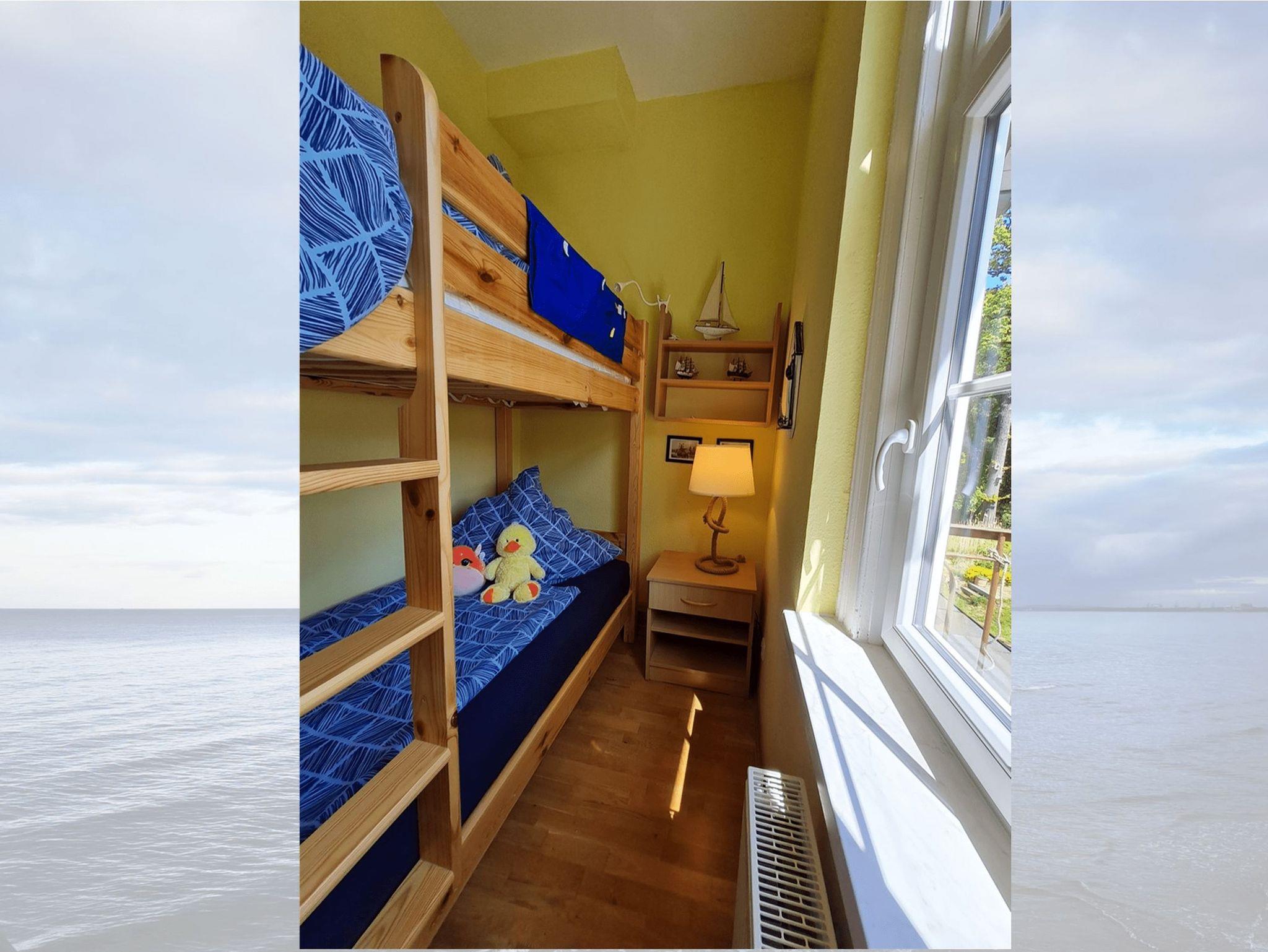 Das Appartement 3 bietet genügend Platz für maximal vier Erwachsene und einem Kleinkind bis drei Jahre. Die Wohnung teilt sich auf in einen kombinierten Schlaf-/ und Wohnraum, einem kleinen Einzelzimmer mit Etagenbett und ein Badezimmer. Außerdem erreicht man vom kombinierten Wohn- Schlafzimmer einen schönen großen Balkon, auf dem Sie entspannen und die vielen Sonnenstunden der Insel genießen können. Auf dem Balkon befinden sich Stühle und ein Tisch.