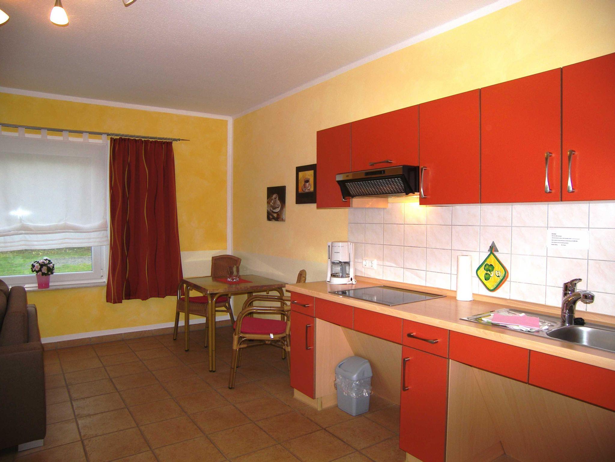 Die moderne, komfortable und barrierefreie Nichtraucher- Ferienwohnung ist für Rollstuhlfahrer geeignet. Sie liegt in parterre und ist stufenlos zu erreichen. Der kombinierte Wohnraum verfügt über eine Schlafcouch (Aufbettung für eine 3. Person), TV und Radio. Die integrierte Küchenzeile ist mit einer Mikrowelle, 4 Platten Cerankochfeld, Kühlschrank mit Gefriermöglichkeit, Geschirr, Wasserkocher, Toaster und Kaffeemaschine ausgestattet.