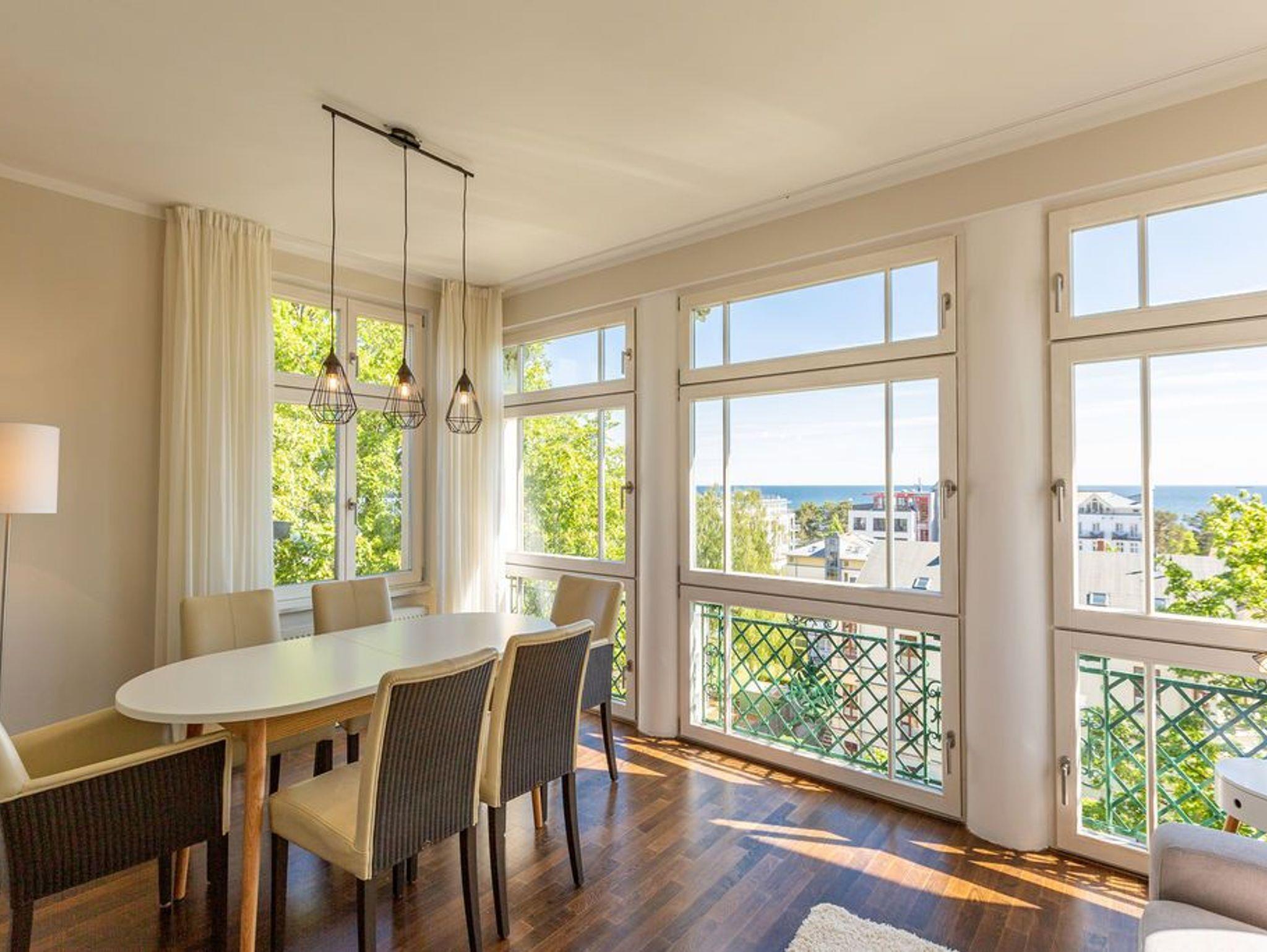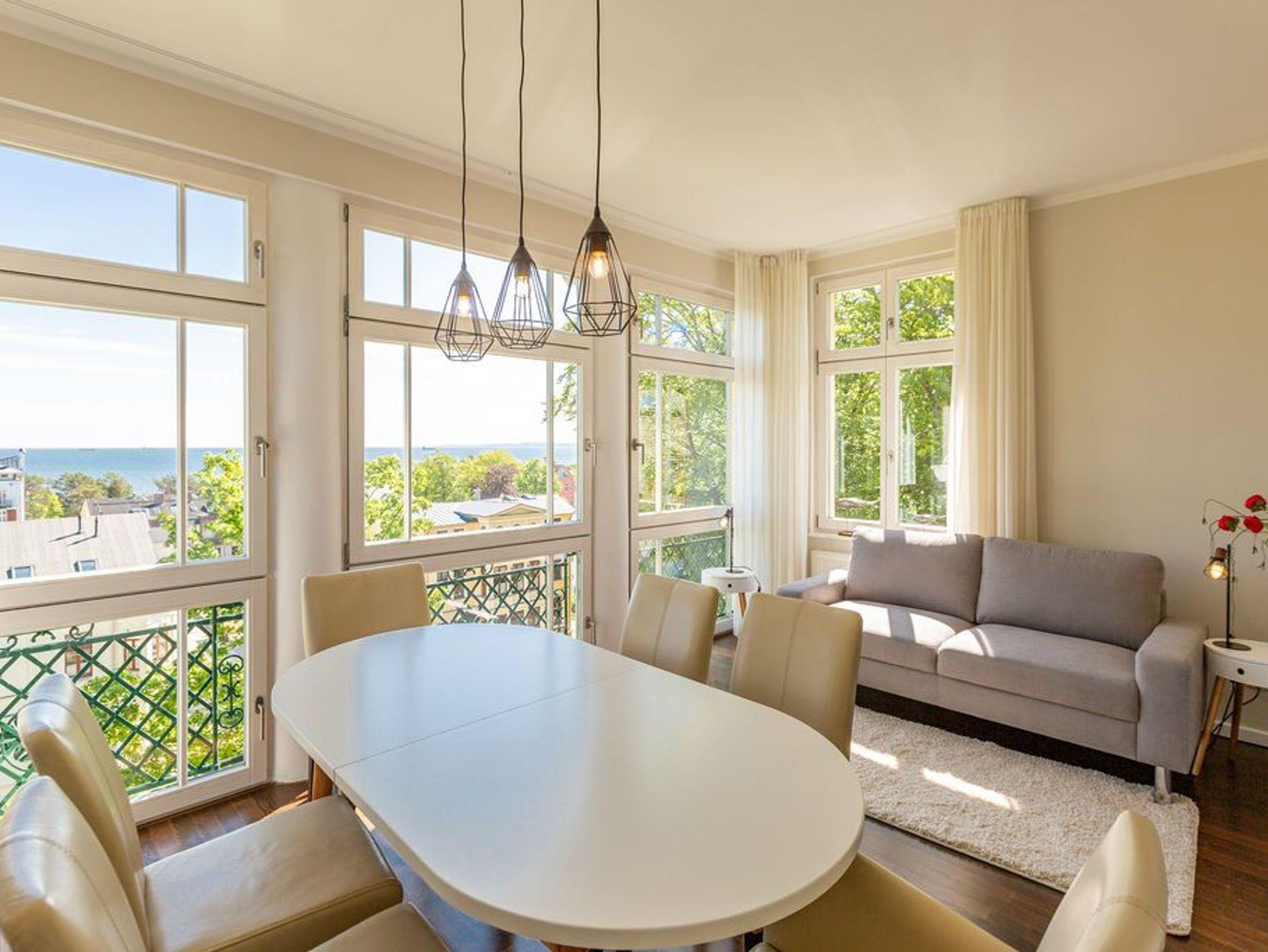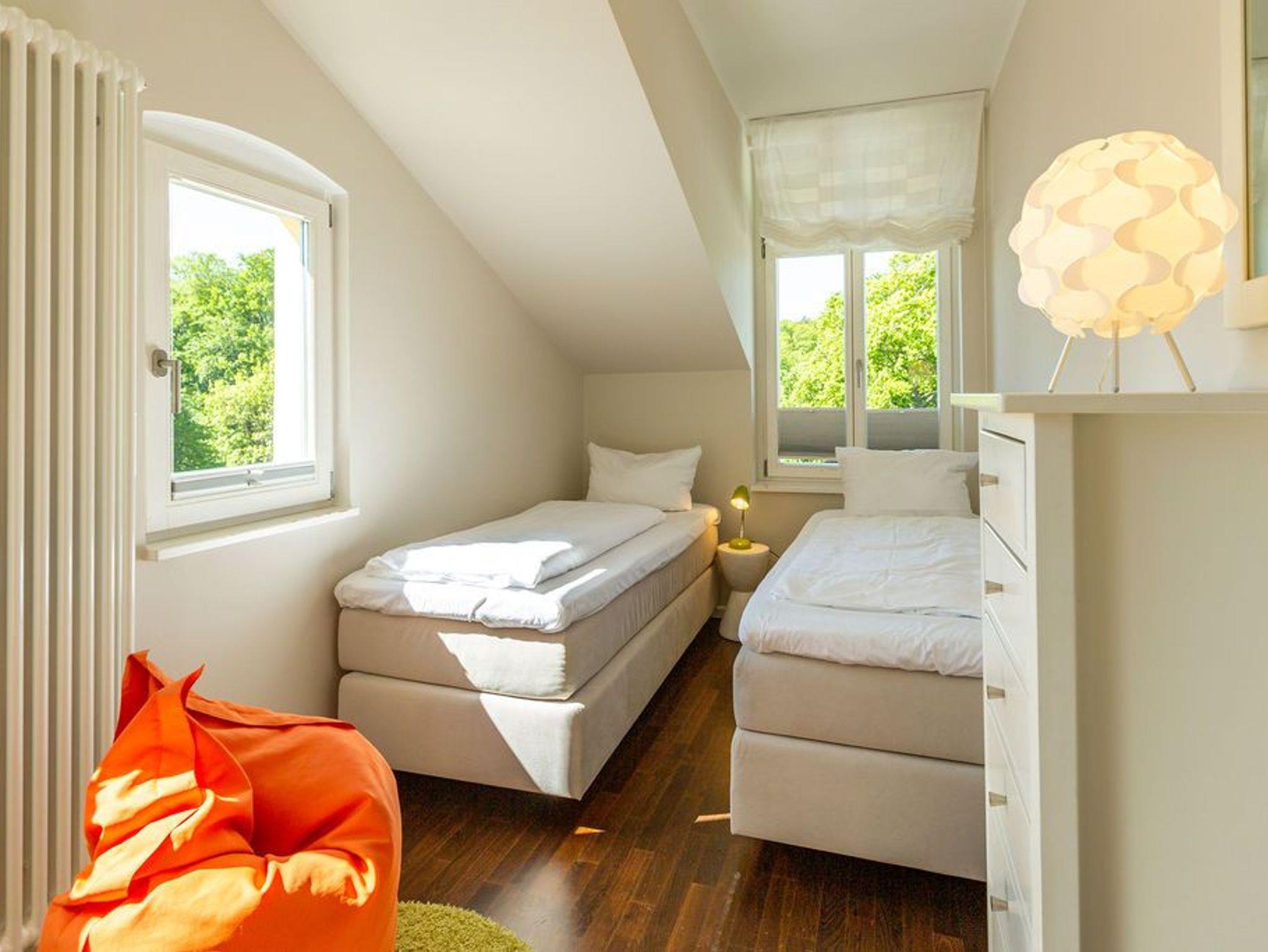 Großzügig, hochwertig und sehr detailverliebt gestaltet, erwartet Sie eine zauberhafte Wohlfühl-Wohnwelt für 4 Personen und ein Kleinkind im Reisebett. Willkommen in Charlottes Höh Nr. 8! Hier finden Sie auf opulenten 105 qm viel Raum zum Verwirklichen Ihrer Urlaubsträume. Und den fantastischen Meerblick gibt´s quasi dazu. Denn den genießen Sie in der großzügigen, verglasten Loggia am besten bei einem Glas Wein auf der Couch oder beim Frühstück am Esstisch. Im Wohnbereich machen Sie es sich auf der bequemen Couchecke gemütlich. Im heimeligen Schlafzimmer mit Boxspringdoppelbett unter der Dachschräge findet bequem auch ein zusätzliches Kinderreisebett Platz. Das zweite Schlafzimmer mit getrennten Betten ist für Kinder und Erwachsene geeignet. Die separate Küche mit Zugang zum sonnigen Südbalkon ist mit allem Komfort ausgestattet. An kalten Tagen wird es durch den knisternden Kaminofen oder in der wohnungseigenen Sauna so richtig warm und kuschelig. Ergänzt wird die Wohnung durch ein modernes Bad mit Dusche, WC und Sauna. Auf Wunsch stellen wir für unsere kleinen Gäste ein Kinderreisebett (ohne zusätzliche Matratze [&] Bettzeug) und einen Kinderhochstuhl ( gegen einen Aufpreis) zur Verfügung. Für Ihren Komfort sind die Betten bei der Anreise bezogen und Handtücher liegen bereit (Erstausstattung).