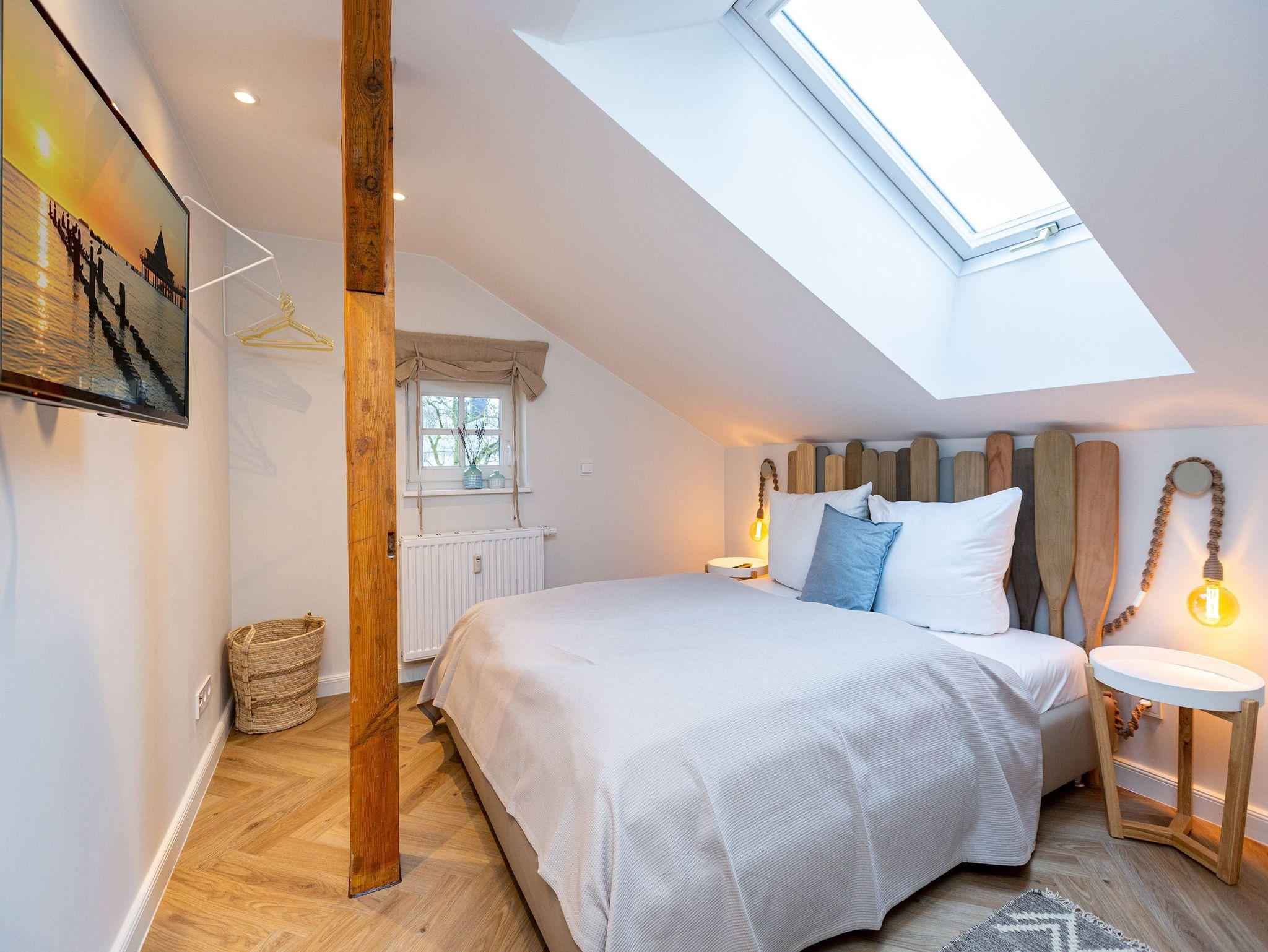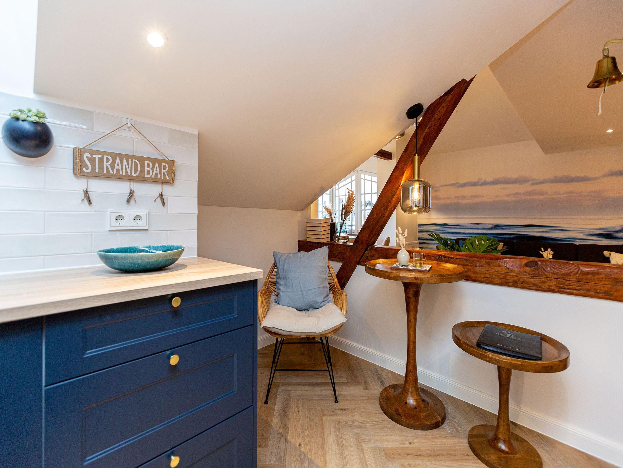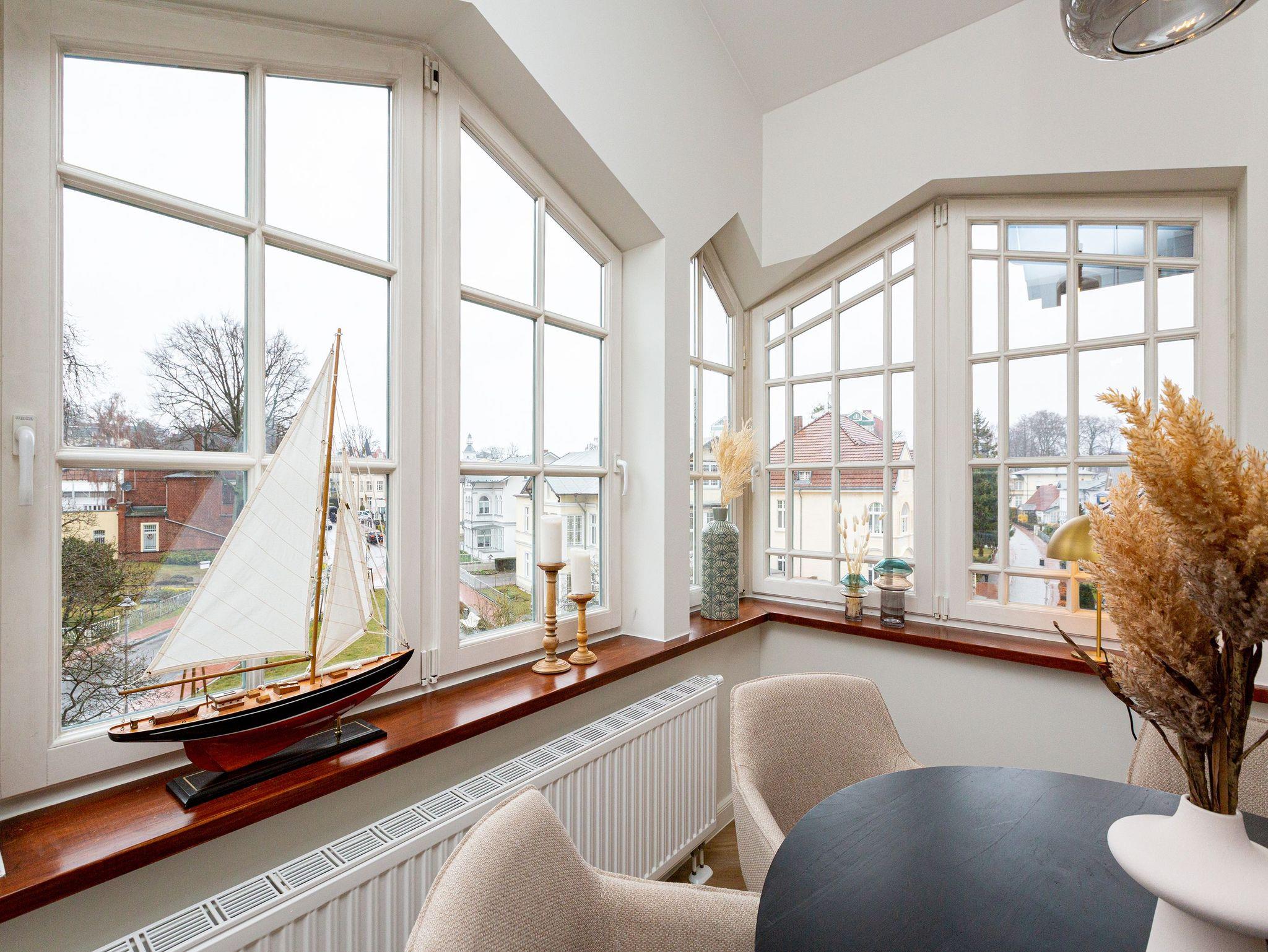 Unter dem Dach dieser wunderschönen Bädervilla mitten im Herzen von Heringsdorf wird Urlaub zu einem unvergesslich schönen und exklusiven Erlebnis. Viel Platz und Wohnkomfort der Extra-Klasse erwartet Sie auf den 110 Quadratmetern luftig leichter Urlaubsfreiheit. Alte Balken, ein Kamin, der wie ein Kachelofen eine kuschelige Atmosphäre zaubert, stylische Möbel, ein harmonisches Lichtkonzept ? all das sorgt für bis zu fünf Personen und ein Kleinkind (im Kinderreisebett) für eine entspannte Auszeit am Meer. Eine urig bequeme Sofa-Sitzgruppe lädt zum Relaxen und Faulenzen ein. Der große Flat-TV fungiert als Highend-Entertainer mit echtem Kino-Sound. Eine schöner, großzügiger Essplatz in einem Erker ist für lange Plauderabende oder ausgiebige Frühstücke, Brunches oder Abendessen ideal geeignet. Der Ausblick vom sonnenüberfluteten Südwest-Balkon auf die mondänen Villen der Umgebung versetzt in eine glanzvolle Zeit, in der die Berliner High Society in diesen Häusern gastierend die Sommerfrische an der Ostsee genoss. So wie Sie es heute tun. Die Küche ist zum Wohn-Esszimmer hin offen und mit allen nötigen Geräten ausgestattet. Hochwertig und edel ist auch das Geschirr in den Schränken. Für viel Vergnügen und erholsame Träume sorgen gleich drei Schlafzimmer. Machen Sie es sich in einem der drei Doppelbetten (1,80 m x 2,00 m; 1,60 m x 2,00 m sowie 1,40 m x 2,00 m) bequem. Die Erholung kommt dann von ganz allein. Denn schlafen werden Sie hier wie im Paradies. Jedes Schlafzimmer ist mit Schrank oder Kommode zur Ablage der Urlaubsgarderobe ausgestattet.[nbsp] Es stehen 2 Badezimmer zur Verfügung. Eines ist mit einer freistehenden Badewanne, Waschtisch und WC ausgestattet und bietet allen Komfort zum ausgiebigen Frischmachen und Ausspannen. Das zweite verfügt über eine Dusche, Waschtisch [&] WC.[nbsp] Damit Sie jede Sekunde in diesem wunderschönen Domizil genießen können, sind die Betten bei der Anreise bereits bezogen und Handtücher liegen bereit. Das WLAN ist kostenfrei und am Haus befindet sich ein Stellplatz.