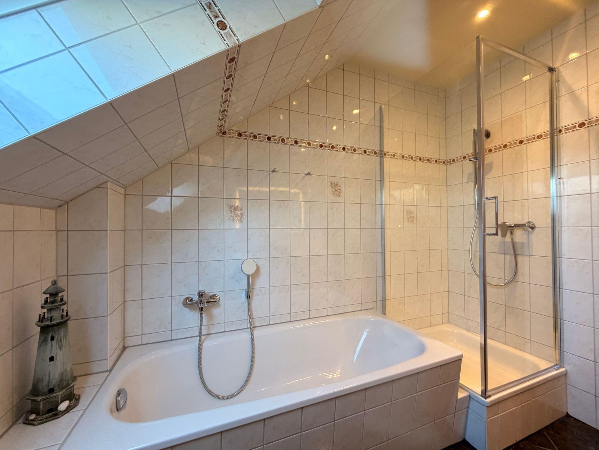 Das Tageslichtbad ist mit Dusche und Badewanne ausgestattet - ganz nach Ihrem Wunsch. Ein WC gehört natürlich ebenfalls dazu.
