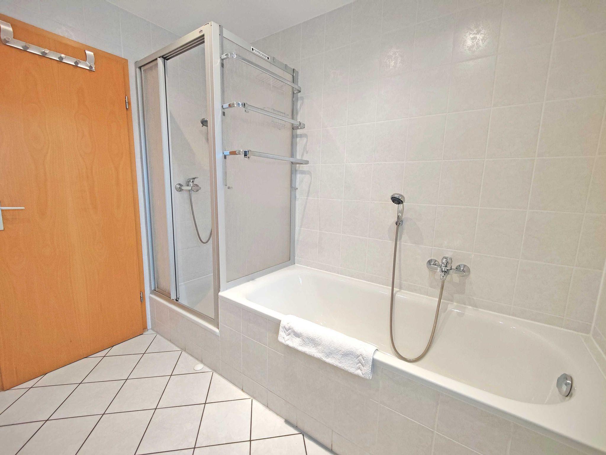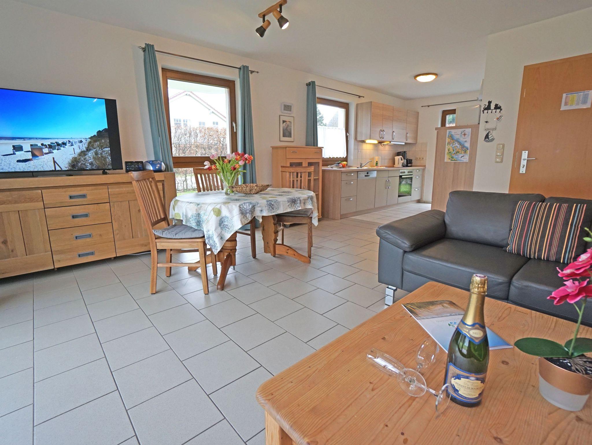 Die Wohnungen im Erdgeschoss bieten Platz für 4 Personen und sind ca. 70m² groß. Sie sind aufgeteilt in 2 Schlafzimmer, einen Wohnraum mit Einliegerküche, ein komfortables Bad und eine Terrasse.