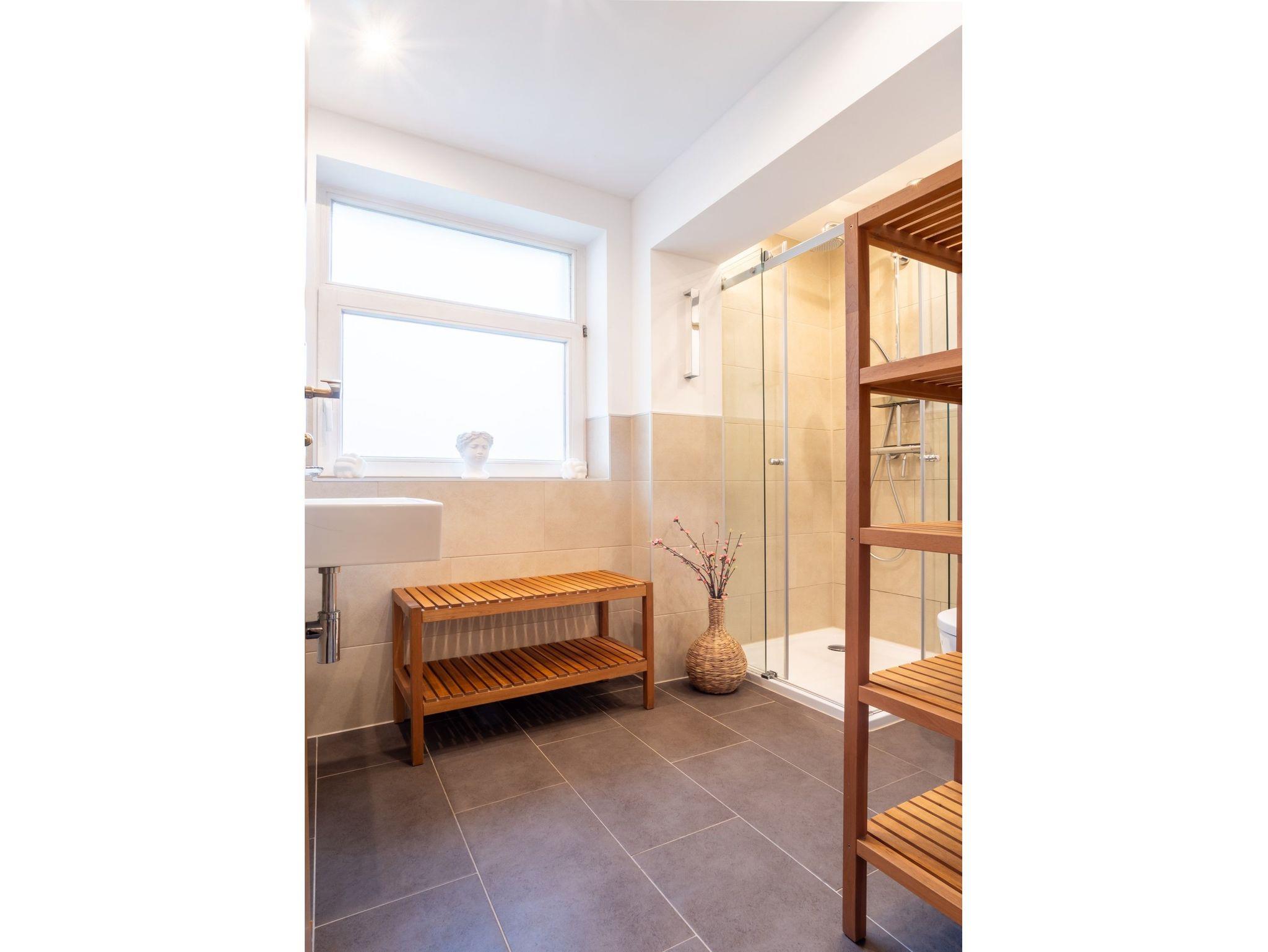 Wie wäre es denn mit einem erfrischenden Spaziergang an der Ostsee? Nur 150 Meter trennen Sie von dem kilometerlangen Sandstrand der Insel und der langen Seebrücke mit Shops, Restaurants und Cafés. Für den Rückweg lohnt es sich, die schöne Bäderarchitektur an der Promenade Heringsdorfs zu erkunden. Kommen Sie dann erschöpft zurück, wartet schon eine heiße Wellnessdusche in dem modern gestalteten Bad auf Sie. Wie wäre es zum Ausklang eines romantischen Abends einem Rotwein am modernen Bio-Kamin? Legen Sie die Beine hoch und entspannen Sie sich.