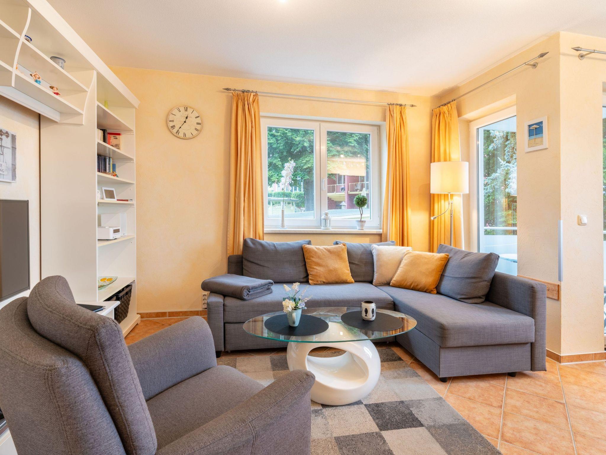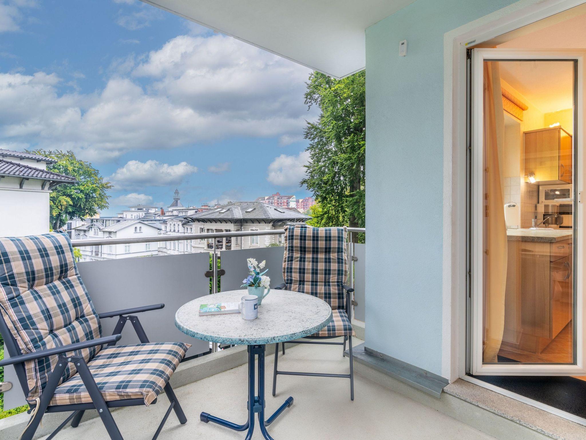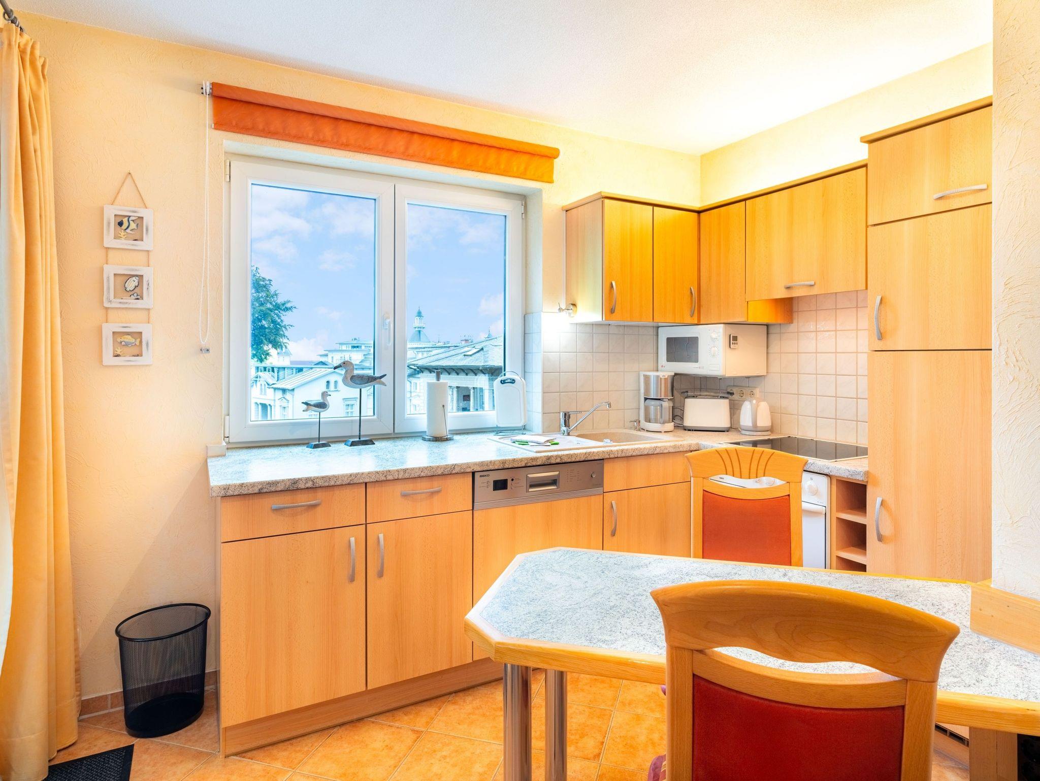 In der ersten Etage des charmanten Hauses erwartet Sie die modern und komfortabel eingerichtete Wohnung 5 - der perfekte Rückzugsort für erholsame Urlaubstage zu jeder Zeit des Jahres. Der großzügige Wohnbereich lädt zum Entspannen ein und ist mit einer bequemen Couch ausgestattet, die auch als Schlafmöglichkeit für eine weitere Person dient, einem gemütlichen Sessel sowie einem Flachbild-TV und Musikanlage mit USB-Anschluss für unterhaltsame Abende. Die angrenzende Küchenzeile lässt keine Wünsche offen: hier finden Sie ein Ceranfeld, Backofen, Spülmaschine, Mikrowelle, Wasserkocher, Kaffeemaschine sowie Toaster - ideal für kulinarische Entfaltung. Genießen Sie Ihren Morgenkaffee oder lassen Sie den erlebnisreichen Tag auf dem Balkon bei einem Glas Wein in der warmen Abendsonne ausklingen - ein Ort der Entspannung. Das Schlafzimmer bietet Ihnen ein komfortables Doppelbett mit verstellbarem Lattenrost und darüber hinaus genügend Stauraum in einem praktischen Kleiderschrank. Das moderne Badezimmer ist mit einer Dusche mit Sitzmöglichkeit und einem WC ausgestattet. Für laue Sommertage steht Ihnen in der Nähe der Seebrücke ein kostenloser Strandkorb zur Verfügung und das Haus verfügt über einen Fahrstuhl. Für Fahrradliebhaber gibt es im Keller Unterstellmöglichkeiten sowie einen Wäschetrockenraum. Ein eigener Parkplatz befindet sich nur 100 Meter entfernt. Selbstverständlich bieten wir kostenloses WLAN, sodass Sie Ihre schönsten Urlaubserlebnisse jederzeit mit Familie und Freunden teilen können.
