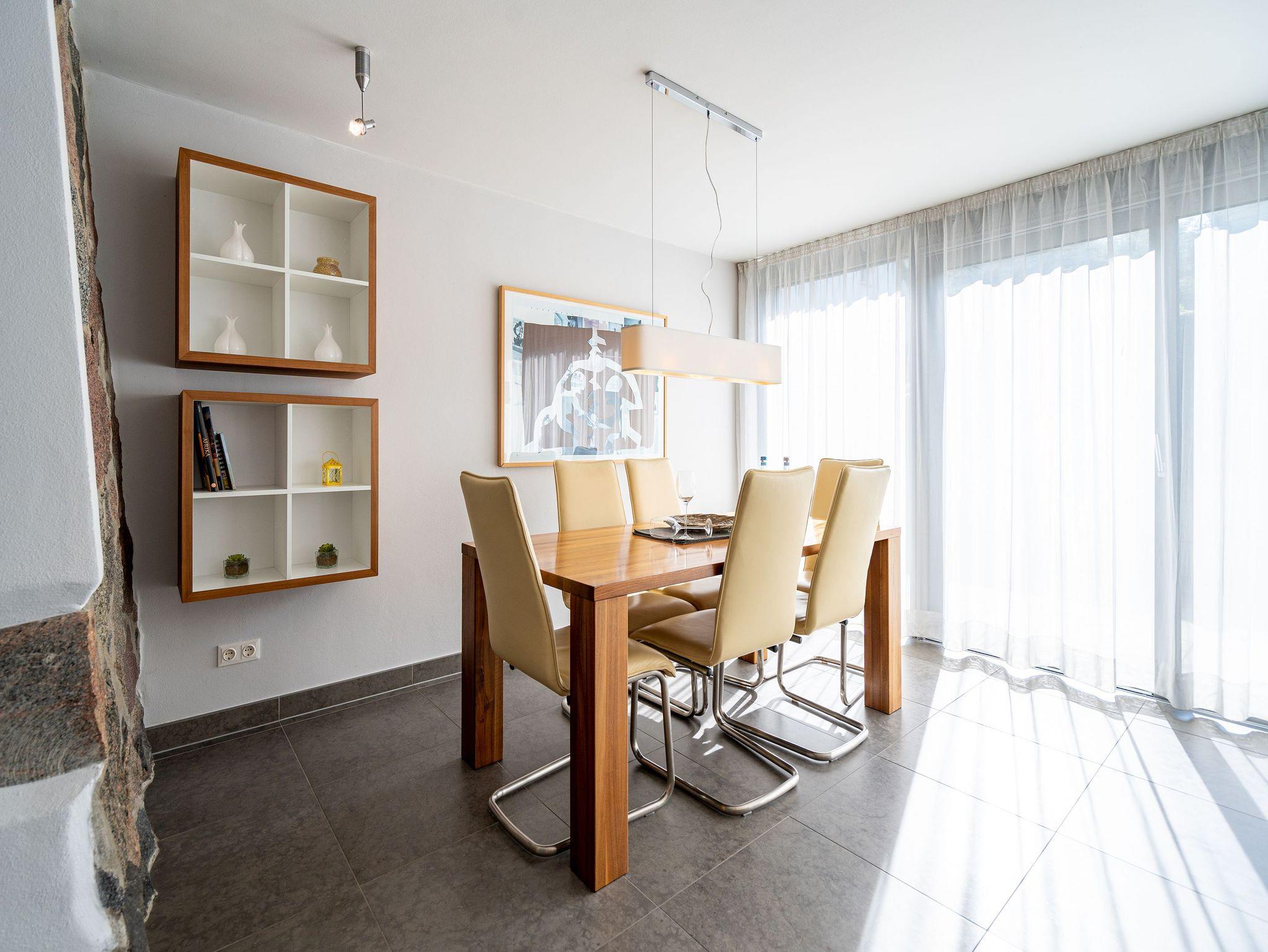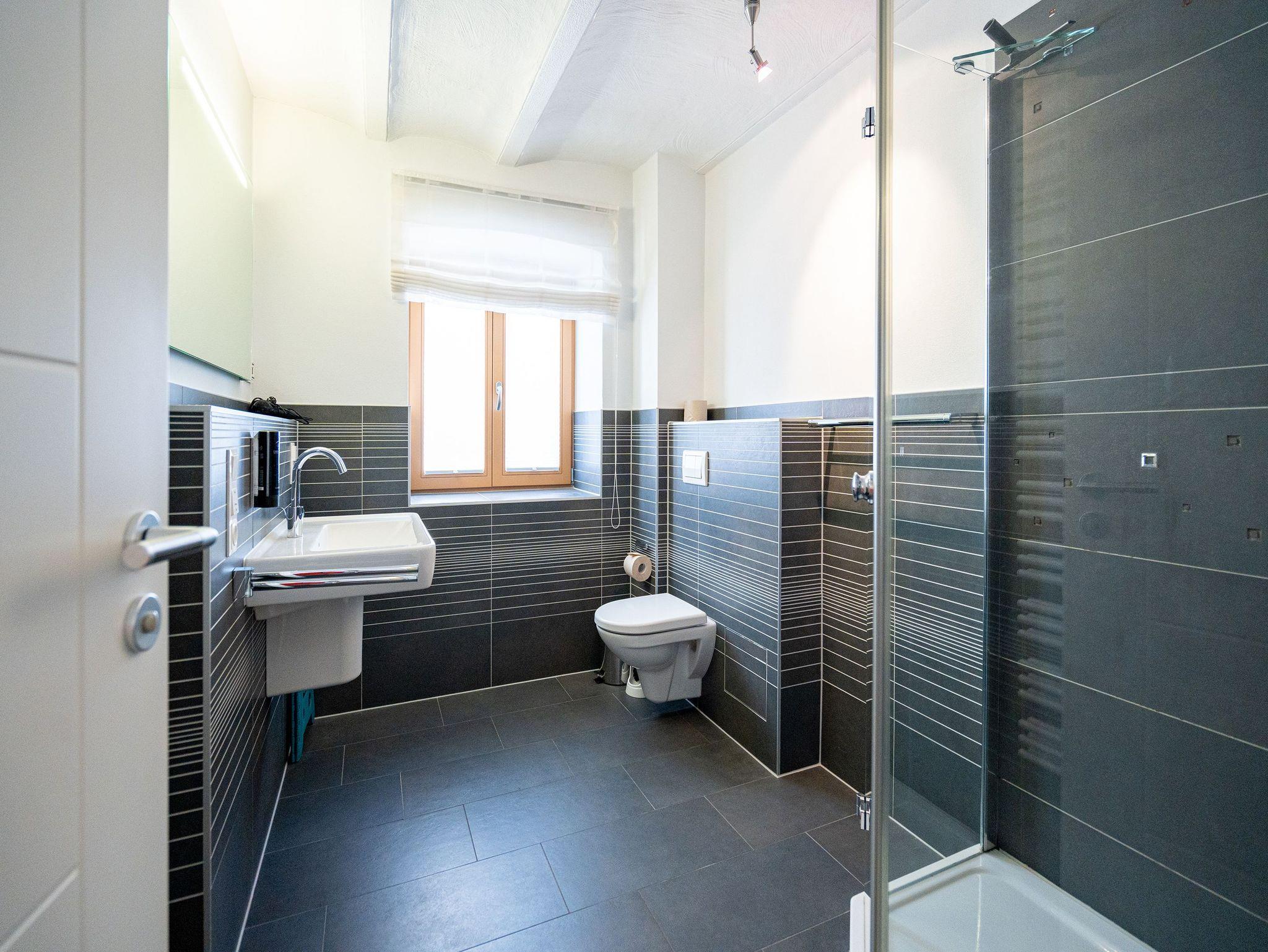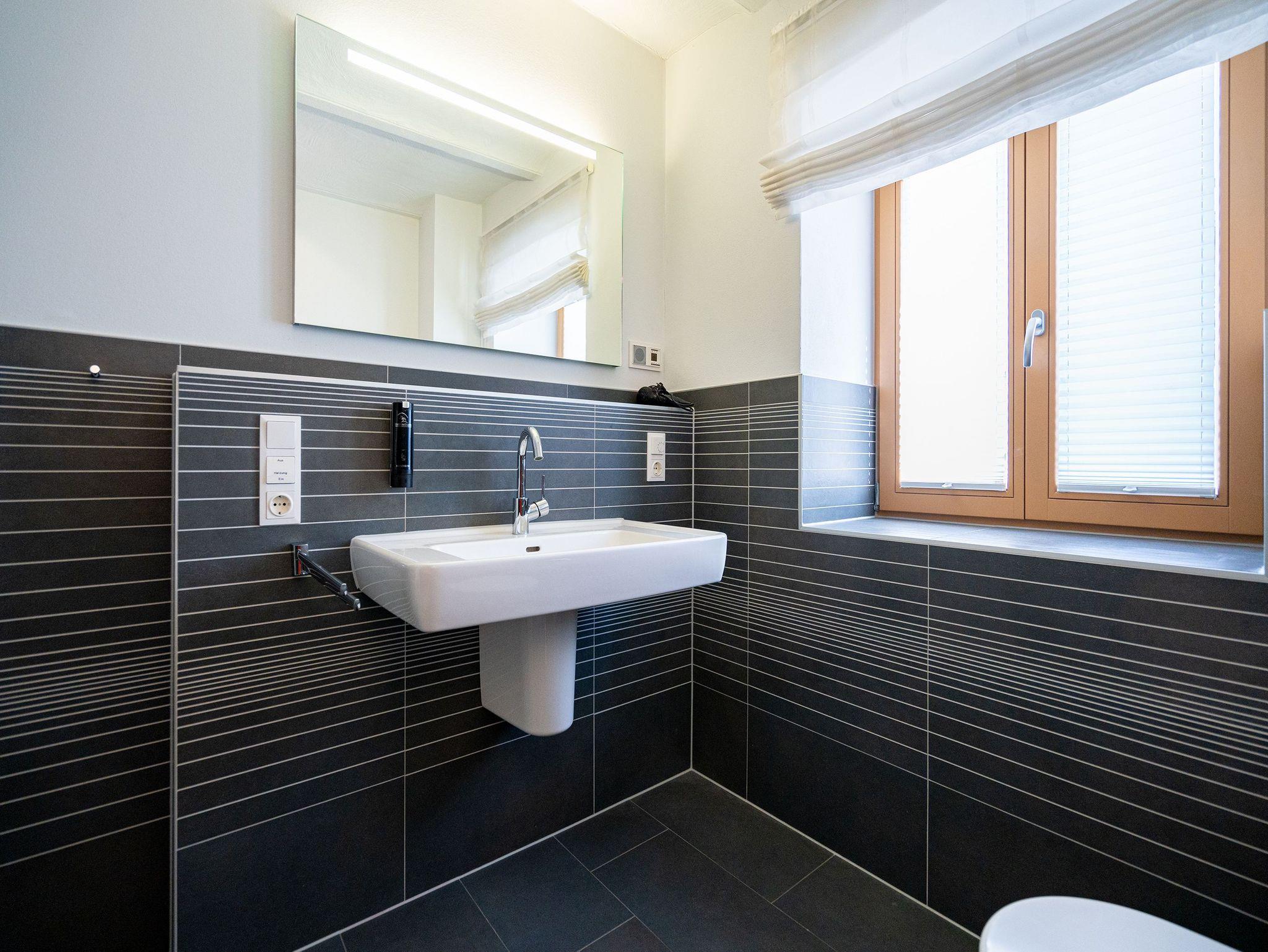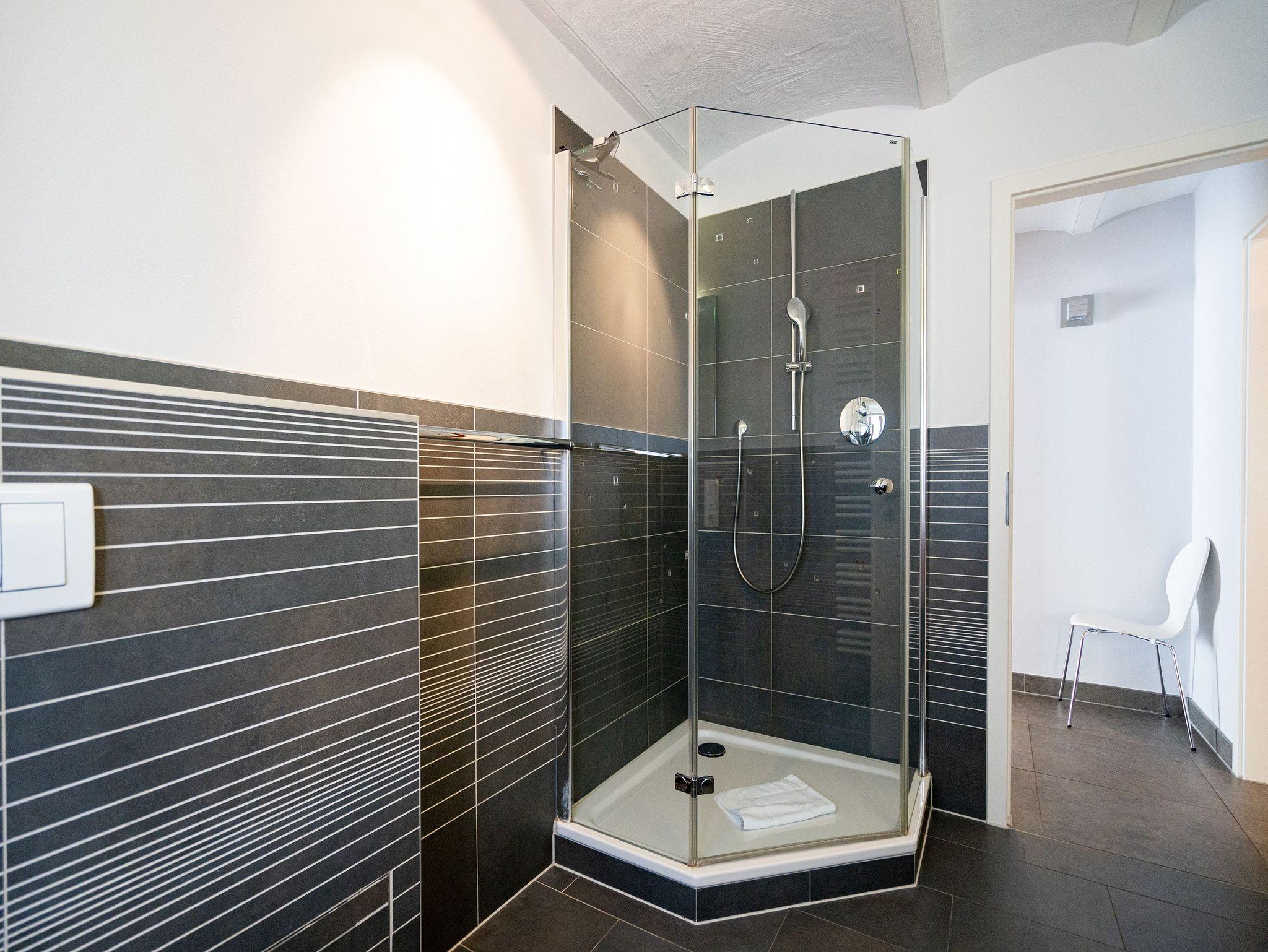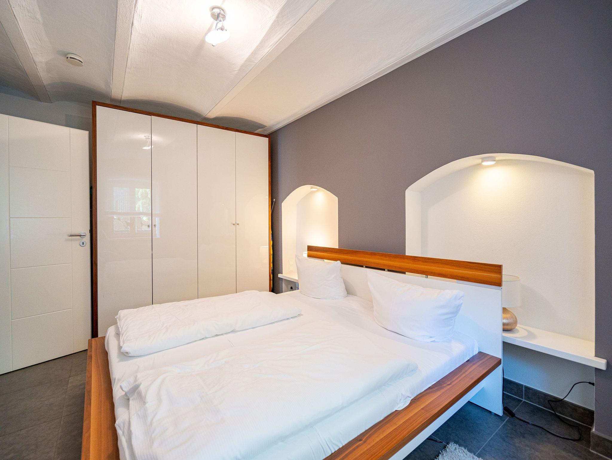 Stylisch durch und durch! DIE STYLISCHE: Graue Feinsteinböden, stilvolle Feldsteinmauer und dazu moderne Möbel, die den Räumen Finesse und Leichtigkeit verleihen. Eine moderne 3-Raum-Ferienwohnung (86 qm) mit zwei Schlafzimmern im Souterrain, perfekt für den Urlaub für 4 Personen und ein Kleinkind (Babyreisebett und Hochstuhl zu buchbar). Der großzügige Wohnbereich mit bequemer Sitzgruppe lädt zum Relaxen ein und die große Ostterrasse ist eine perfekte Verlängerung des Wohnraums. Sicher Ihr Lieblingsplatz im Sommer. Eine moderne, offene Küche lässt keine Wünsche offen. Daneben bietet die Wohnung ein Bad mit Dusche, hier duscht man mit echten Swarovskisteinen. Für Ihren Komfort ist das Appartement mit dem 1. Satz Handtücher ausgestattet und liebevoll bezogen.