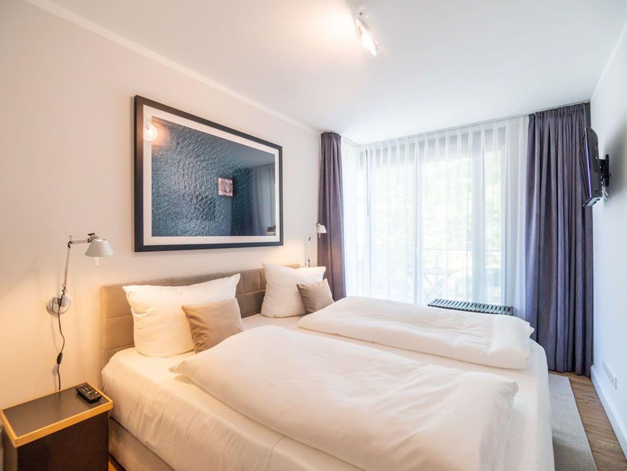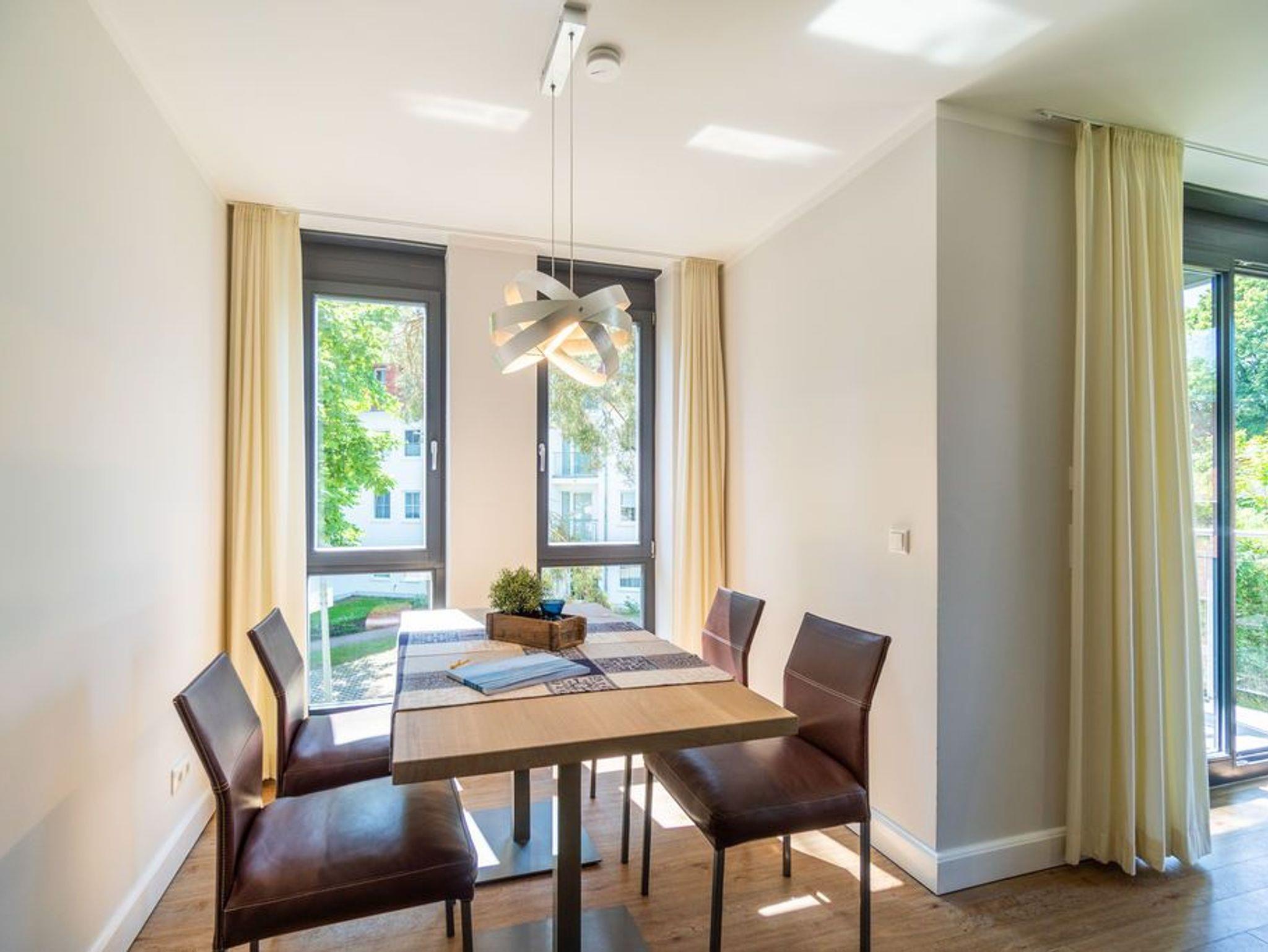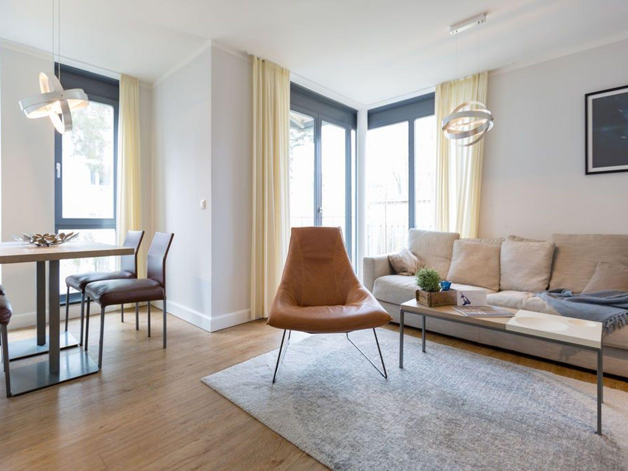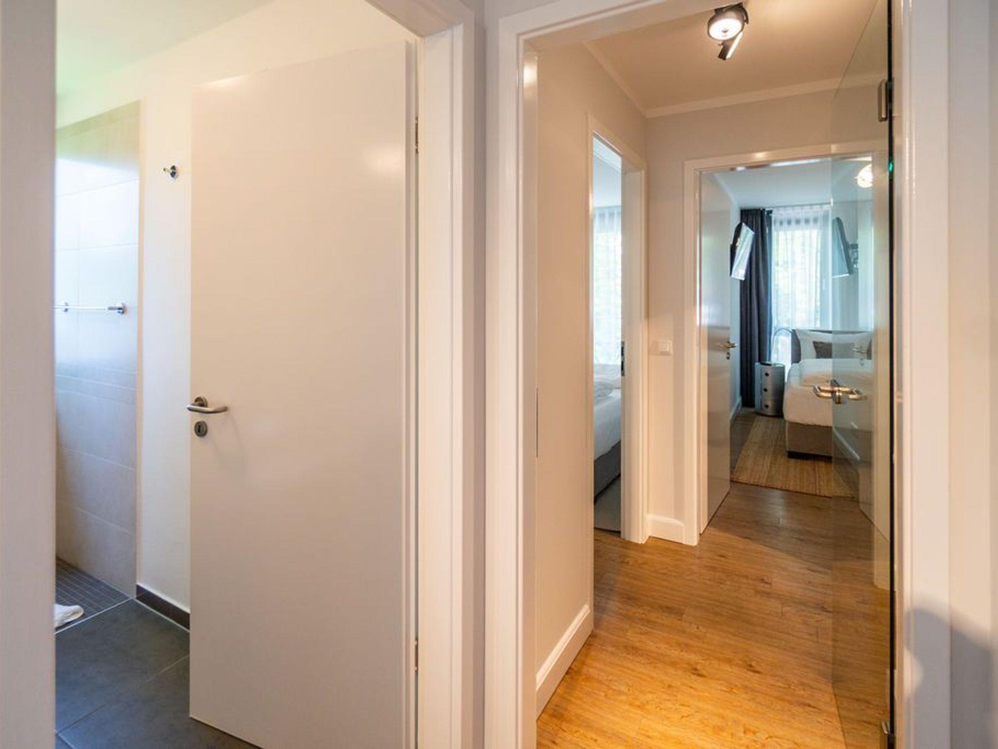 Maritime Farben, maritimes Flair ? im Appartement Nummer 3 im ersten Obergeschoss der Villa Maxim können Sie die Ostsee und den Strand förmlich spüren. Denn das Ambiente ist eigens auf die Farben Blau und Sand abgestimmt. Naturmaterialien geben der Wohnung einen echten Wohlfühlcharakter. Bis zu vier Personen und ein Kleinkind (im Kinderreisebett) haben auf den 70 Quadratmetern viel Platz. Das Appartement verfügt über zwei schöne Schlafzimmer mit bequemen Boxspringdoppelbetten (1,80 m x 2,00 m und 1,60 m x 2,00 m). Hier werden Sie schlafen wie auf Wolken. Das größere der beiden Schlafräume besitzt sogar einen eigenen kleinen Balkon an der Hausseite. Die Schränke bieten ausreichend Stauraum. Sollte der Schlaf doch einmal auf sich warten lassen oder Sie einen Tag im Bett verbringen wollen, sorgt der Flat-TV in jedem Zimmer für Unterhaltung. Doch nun zum eigentlichen Highlight der Wohnung: dem geräumigen Wohn-Esszimmer. Hier finden Sie alles, was Sie zum Ausspannen brauchen. Eine gemütliche Sofaecke mit Flat-TV und sogar einen Kaminofen, der Ihnen an kühlen Tagen und Abenden wohlige Wärme spendet. Allein dem Flammenspiel zuzuschauen, ist schon Erholung. Am Esstisch befinden sich vier bequeme Leder-Stühle. Lassen Sie sich hier oder am Tisch auf dem sonnigen Süd-Balkon zum Essen oder gemeinsamen Plauschen nieder. So beginnt der Urlaubstag schon beim Frühstücken relaxed. Zum Zubereiten und Kochen jeglicher Gerichte finden Sie alles in der offenen Wohnküche. Hochwertige Geräte wie Kühlschrank mit Gefriermöglichkeit, Herd, Backofen, Mikrowelle oder Kaffeemaschine erleichtern die Arbeit. Auch edles Geschirr befindet sich in den Schränken. Das geräumige Badezimmer ist mit einer ebenerdigen Dusche, einem Waschtisch und einem WC ausgestattet. Sie brauchen auch im Urlaub einen Internetanschluss? Kein Problem. In der Wohnung steht Ihnen kostenfrei WLAN zur Verfügung. Ein zusätzliches Guddi ist die kleine Wellness-Oase mit zwei Saunen, einem Relax Raum und Duschen im Erdgeschoss der Villa, die Sie gern unentgeltlich mitbenutzen können. Für Ihren Pkw gibt es einen Außenstellplatz. Bei Anreise liegen Handtücher für Sie bereit und die Betten sind natürlich schon bezogen.