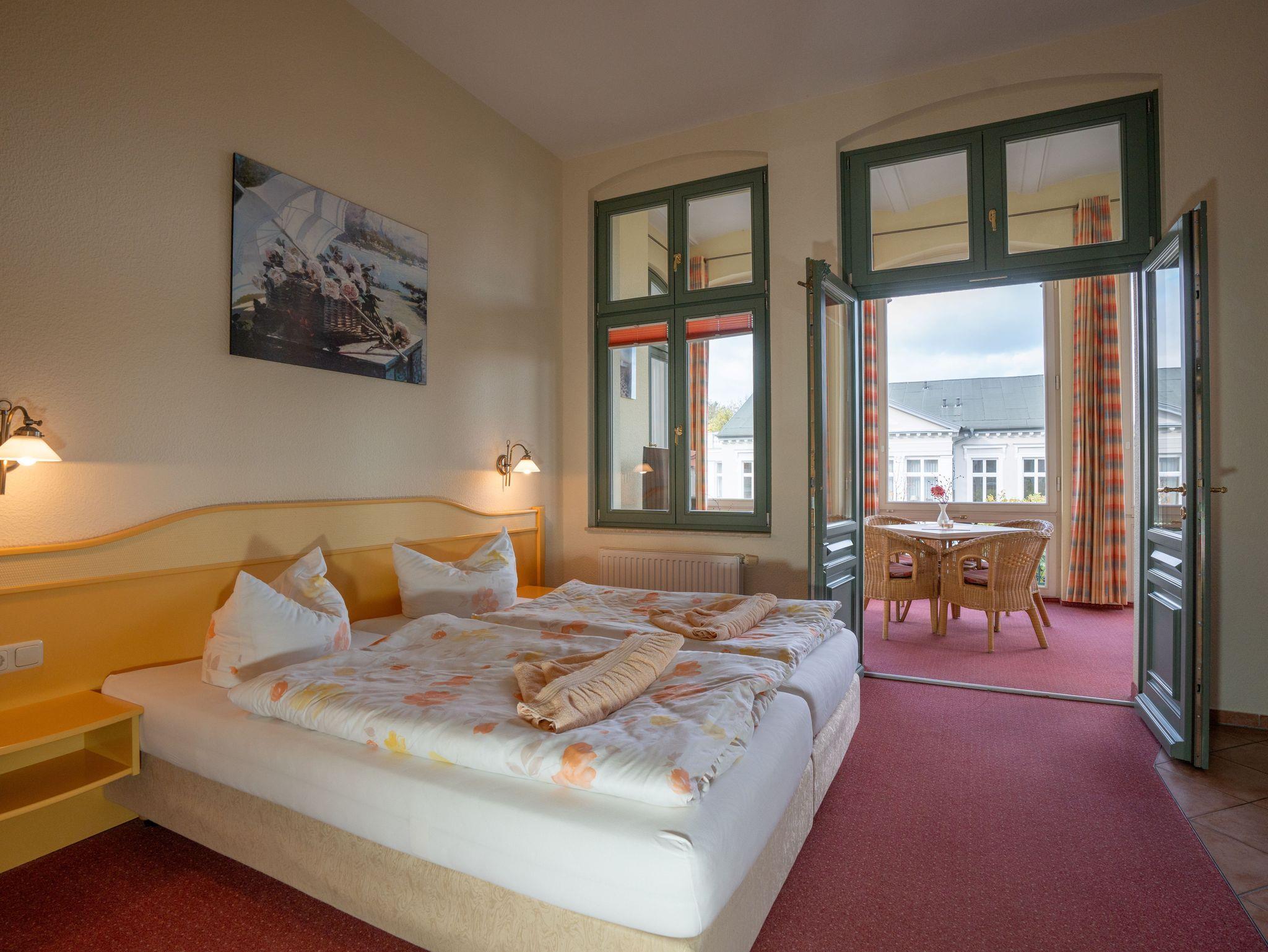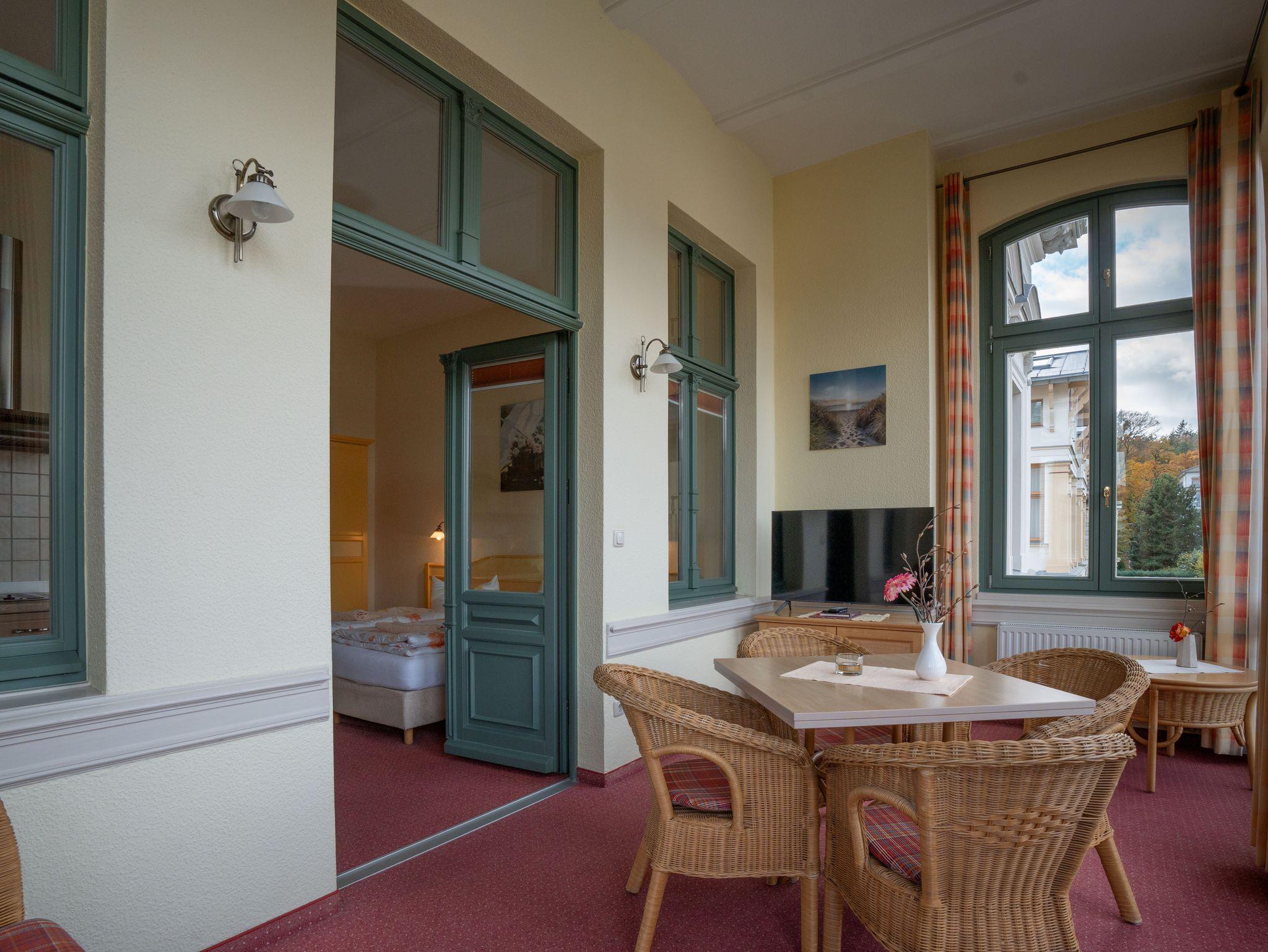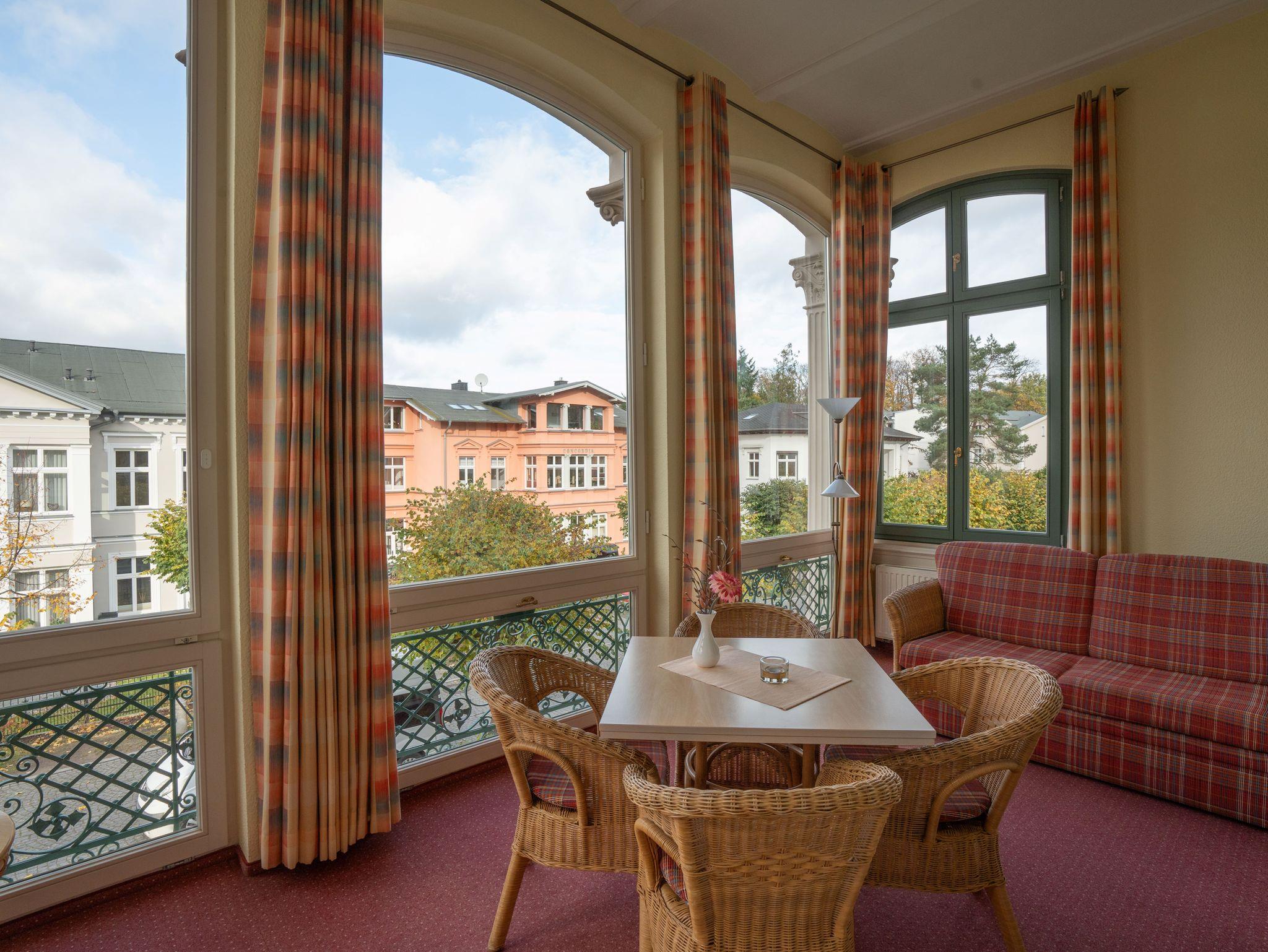 Auf der Terrasse vor dem Haus (Gemeinschaftsnutzung) haben Sie einen herrlichen Blick auf die alten Villen im Stil der Bäderarchitektur.