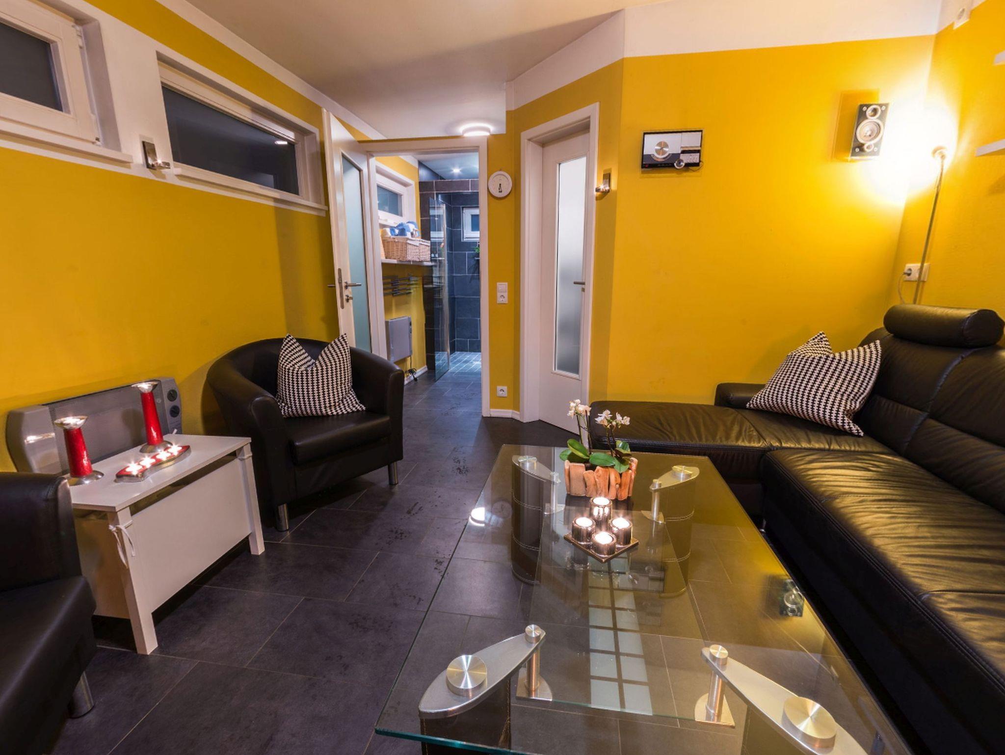 Nach vorheriger Anmeldung haben Sie Zugang zu unserer Sauna, die mit einem großzügigen Ruhebereich und einem Kaminofen ausgestattet ist. Die Saunanutzung ist gegen Gebühr möglich und mit dem Hausservice abzustimmen. Der perfekte Ort zum Entspannen nach einem aktiven Tag. Die Nutzung von Waschmaschine und Trockner können Sie ebenfalls gerne dazubuchen.