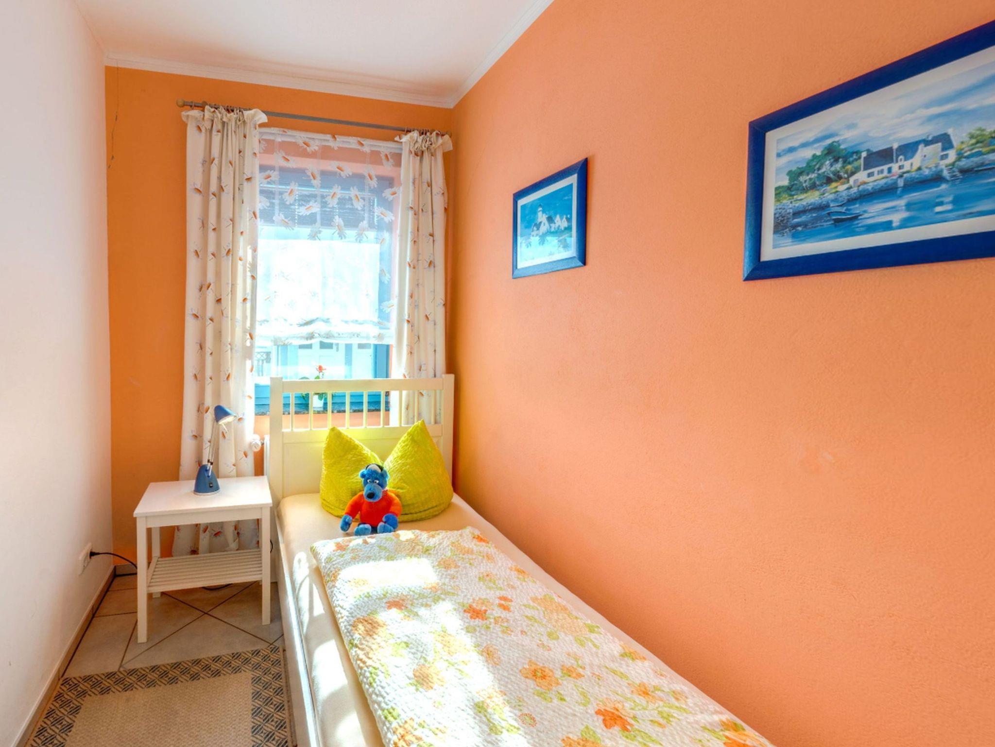 Die Wohnung verfügt über zwei geschmackvoll eingerichtete Schlafzimmer. Das erste Schlafzimmer ist mit einem gemütlichen Doppelbett und einem geräumigen Kleiderschrank ausgestattet. Das zweite Schlafzimmer verfügt über ein Einzelbett sowie einen weiteren Kleiderschrank.