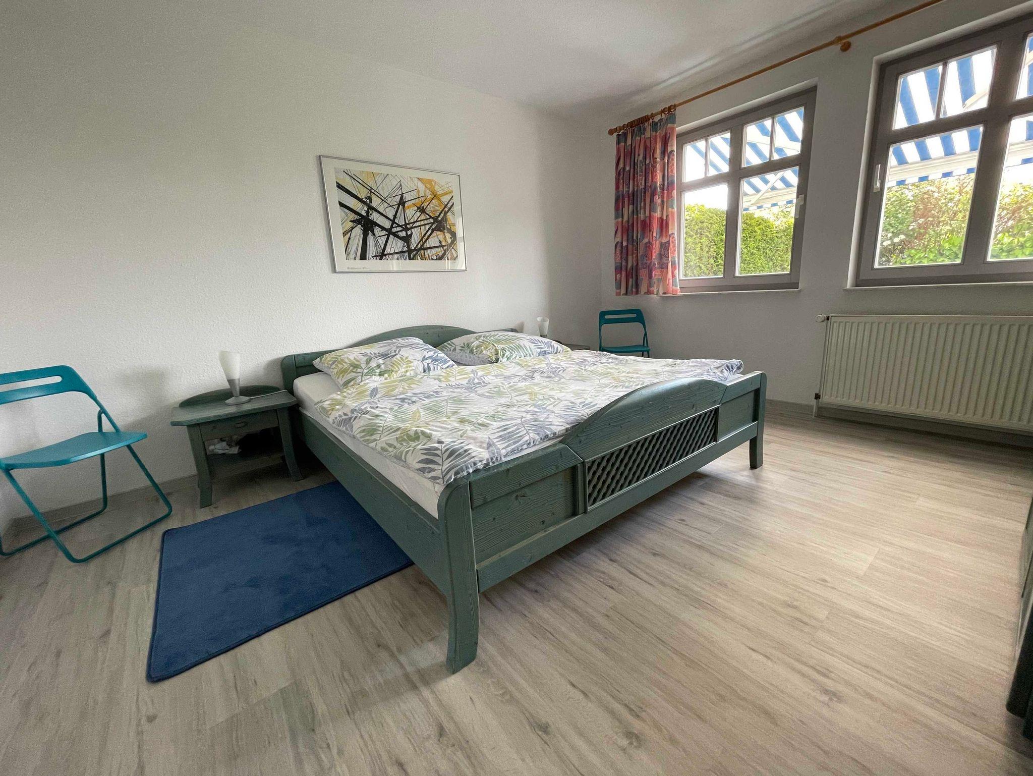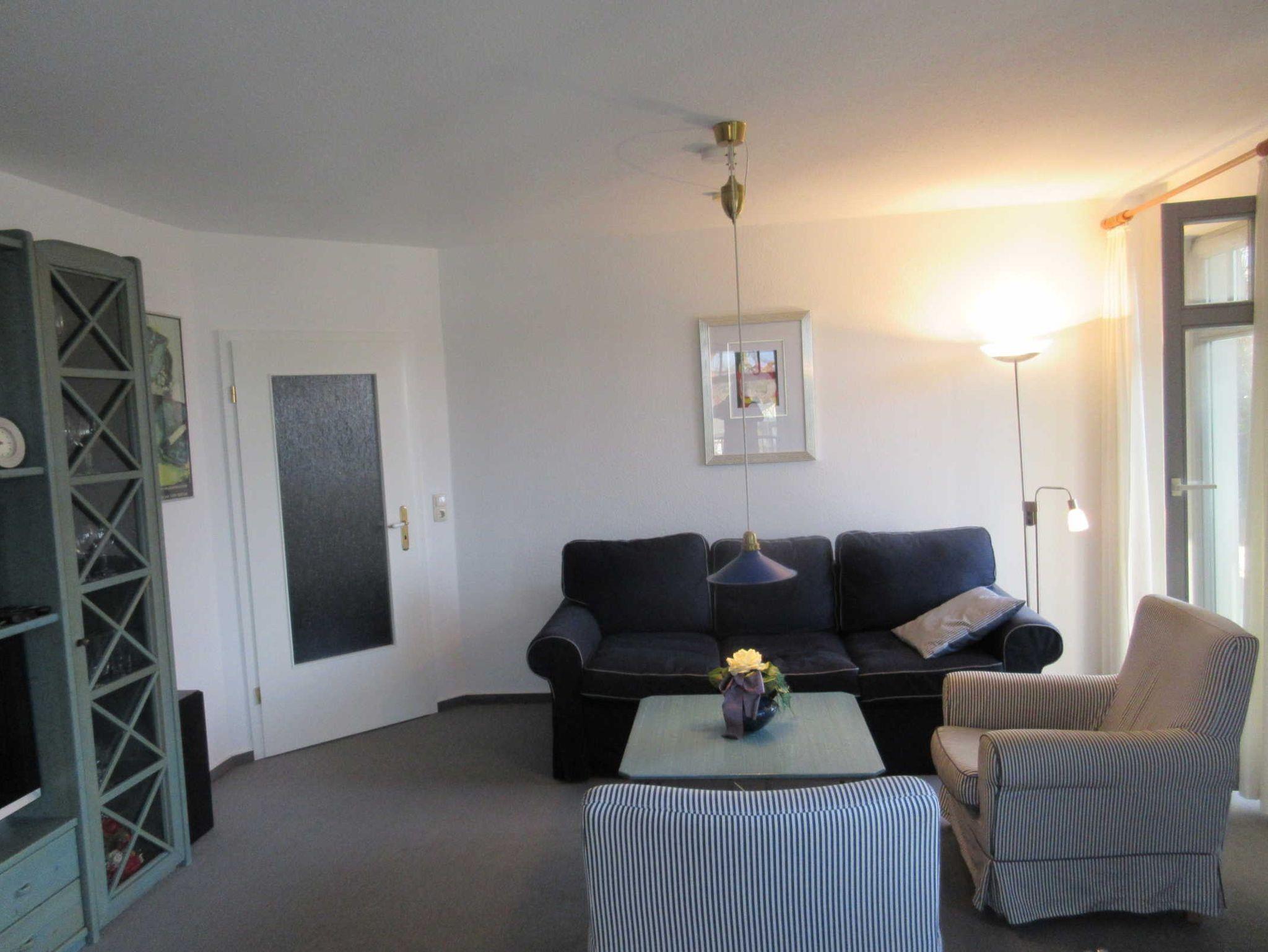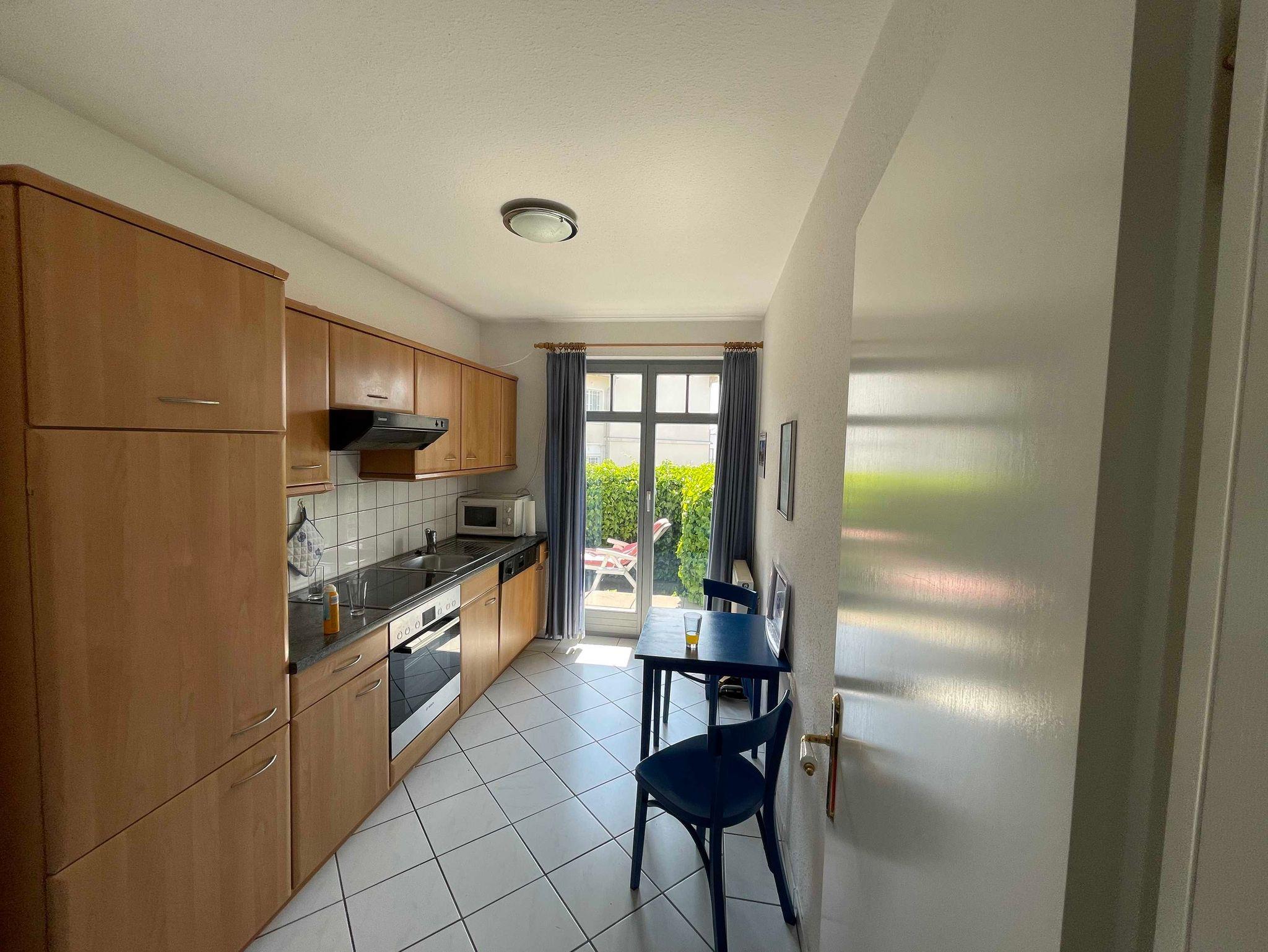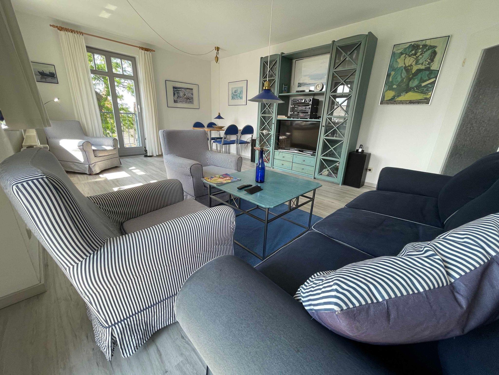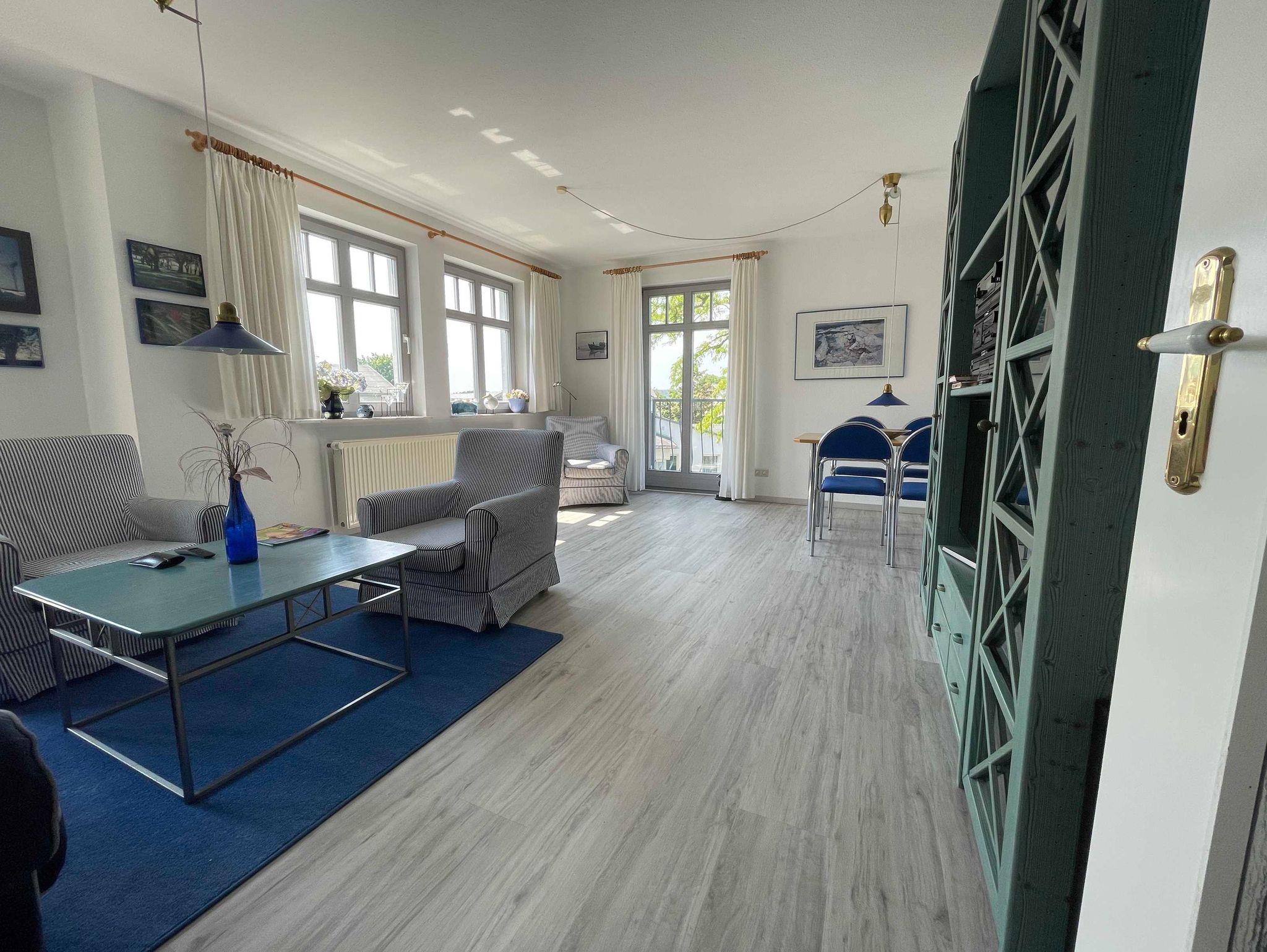 Das großzügig, modern und komfortabel eingerichtete 3-Raum-Appartement im Erdgeschoß mit kompletter, separater Küche (Ceran-Kochfeld , Backofen, Geschirrspüler, hochwertiges Geschirr, Mikrowelle, etc.) ist für 4 Personen (Doppelbett im 1. Schlafraum & großes Etagenbett im 2. Schlafraum) sowie für zwei weitere Personen (Doppelschlafcouch) vorgesehen. Im Bad befinden sich Dusche und Badewanne/WC. Zur Ausstattung gehören eine große Terrasse zur Südseite mit Sitz-/Liegemöbeln sowie Grill (von dort ist teilweise seitlicher Meerblick möglich), Smart-TV, Telefon, W-LAN.