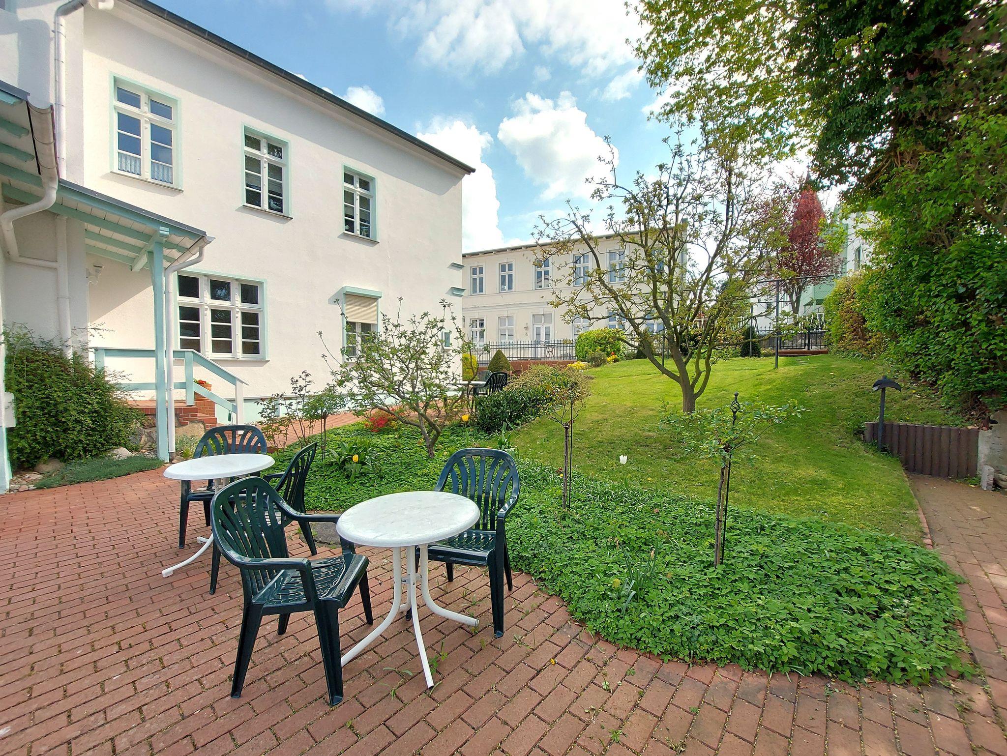 Im Garten finden Sie gemütliche Sitzecken, die gern genutzt werden können und zu entspannten Stunden einladen.