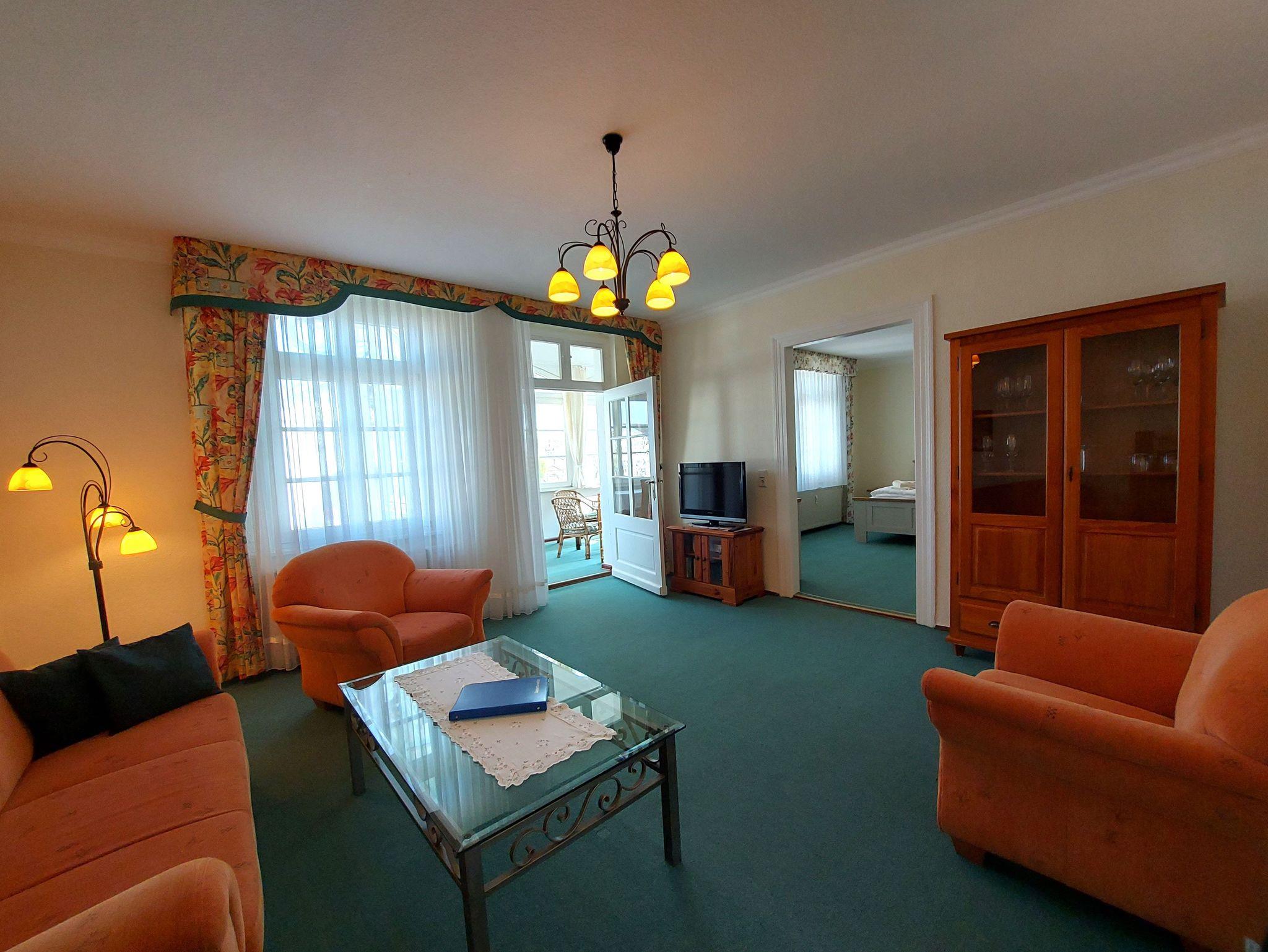 Die Ferienwohnung 7 befindet sich im Obergeschoss des Hauses und verfügt über Meerblick. Sie teilt sich auf in ein Eingangsbereich mit einer Küche, Wohnzimmer, Schlafzimmer und Loggia.. Die Küche ist ausgestattet mit Herd, Backofen, Spülmaschine, Kühlschrank mit Gefriermöglichkeit, Mikrowelle, Kaffeemaschine, Wasserkocher und Toaster. Das Wohnzimmer verfügt über eine gemütliche Couch, Sessel und Flachbildfernseher.