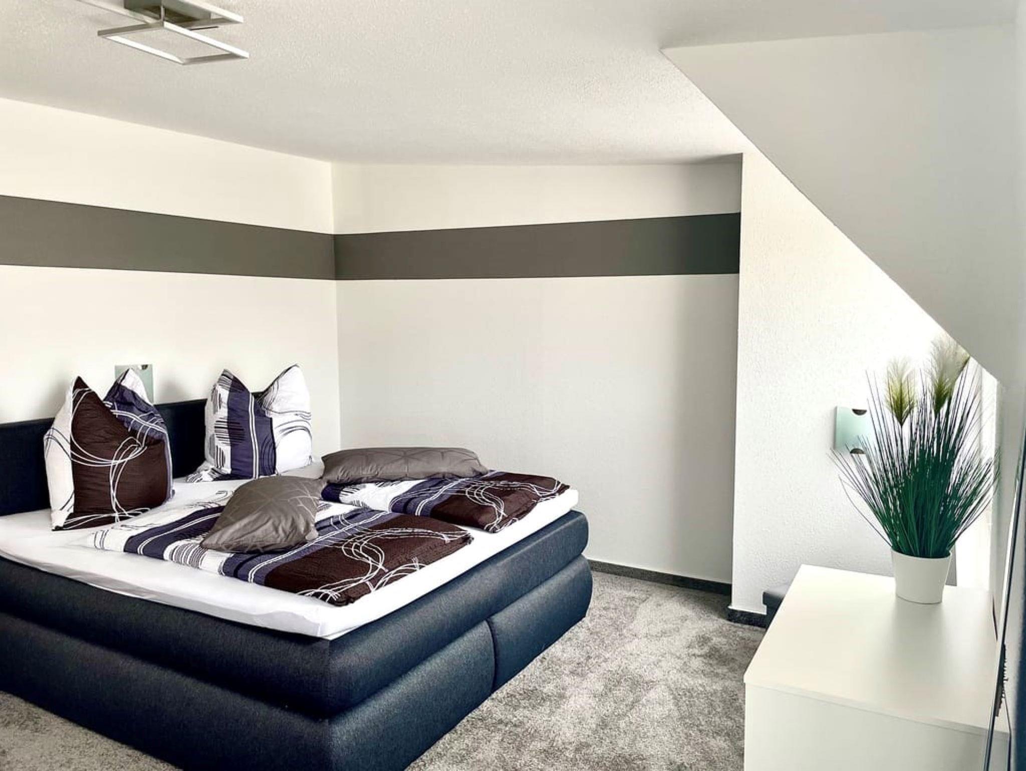 Über eine Treppe in der Wohnung erreichen Sie im 1.OG den Schlafbereich mit Doppelbett und Kleiderschrank. Der Garten mit meheren Sitzecken und Sonnenliegen steht Ihnen zur Gemeinschaftsnutzung zur Verfügung.
