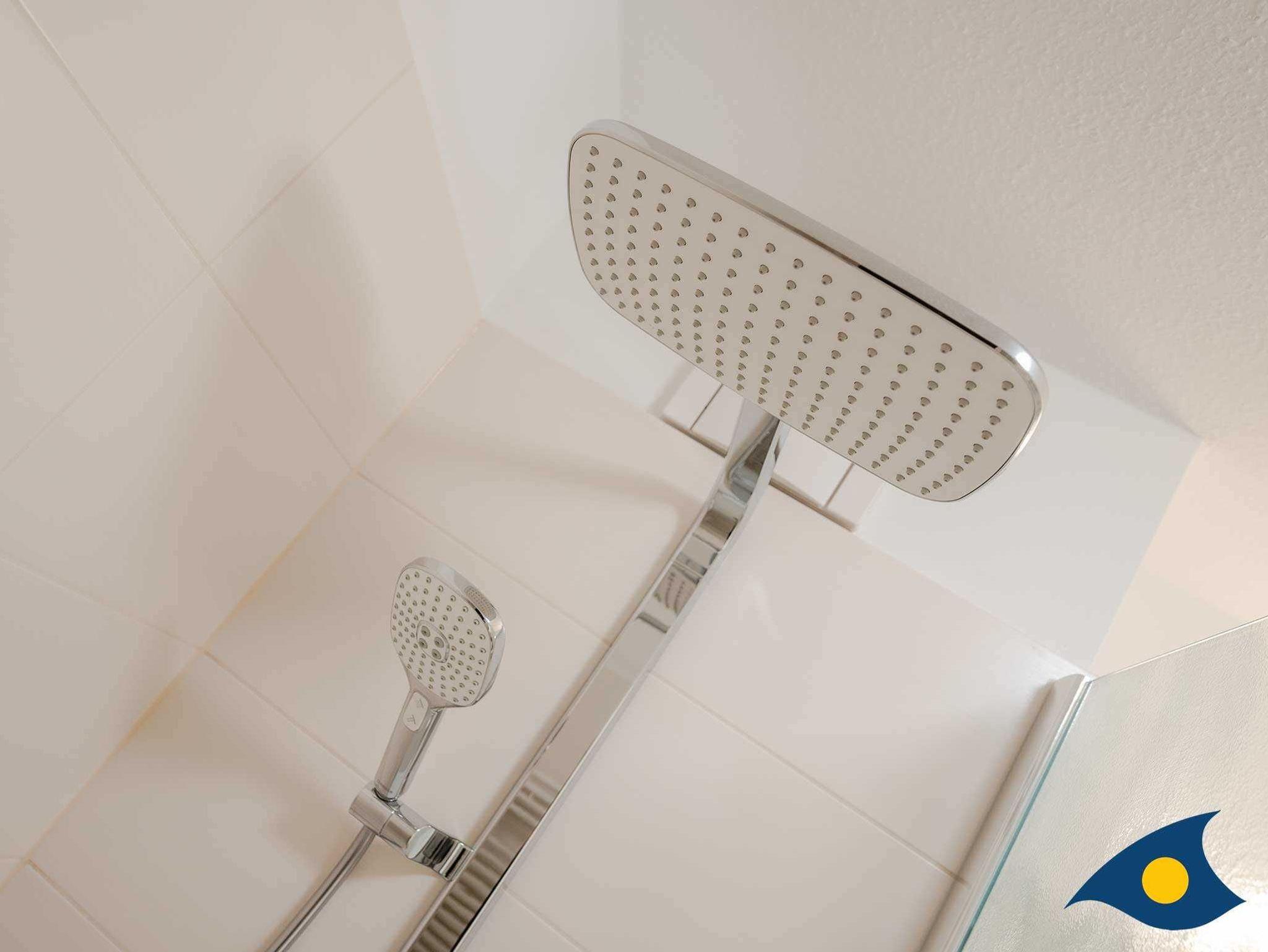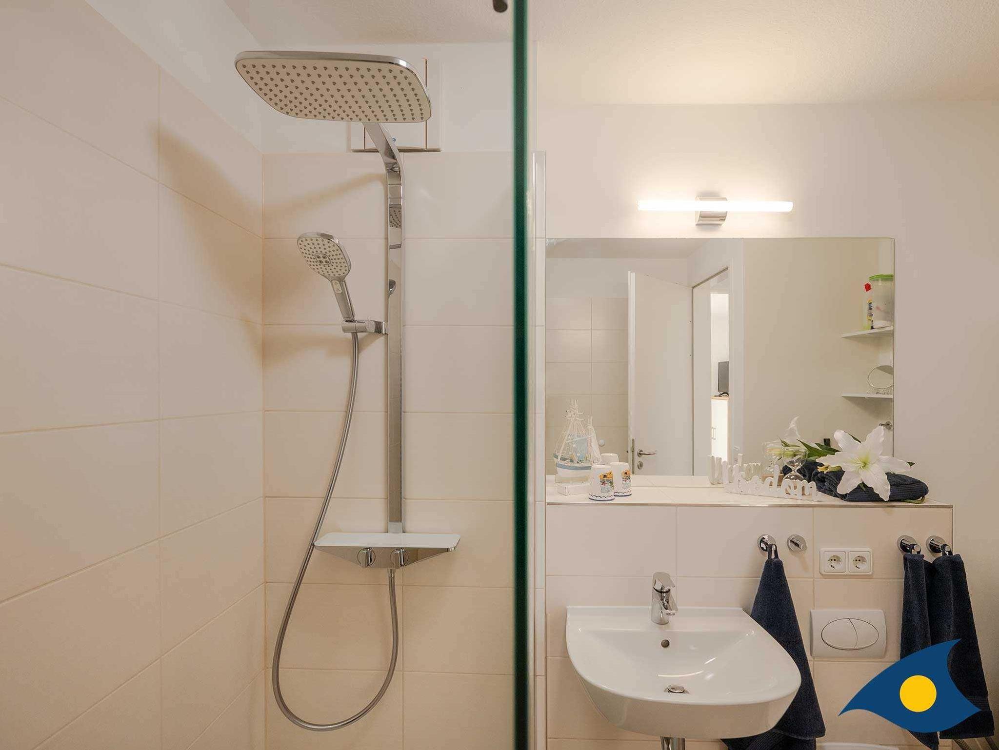 Über eine interne Treppe erreichen Sie das Schlafzimmer und das Bad. Im Schlafzimmer befindet sich ein zweiter Fernseher und im Bad ist für Sie außer einer begehbaren Dusche, WC und Waschbecken auch eine Waschmaschine aufgestellt. Im Wohnzimmer können Sie die Couch zu einem bequemen Doppelbett für die 3. und 4. Person umbauen.