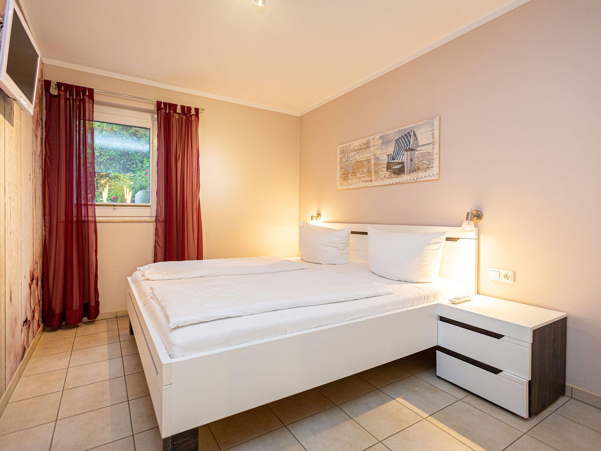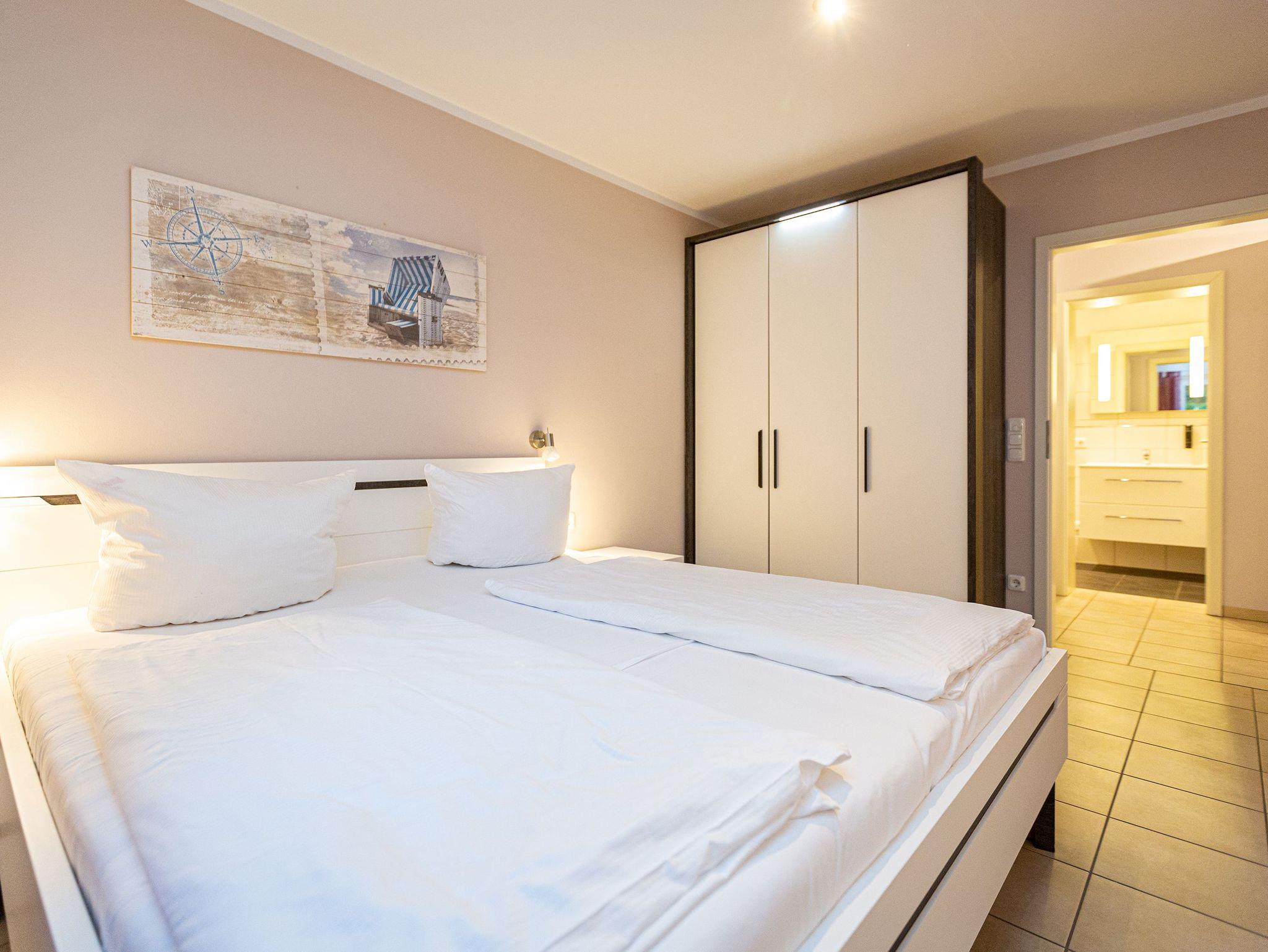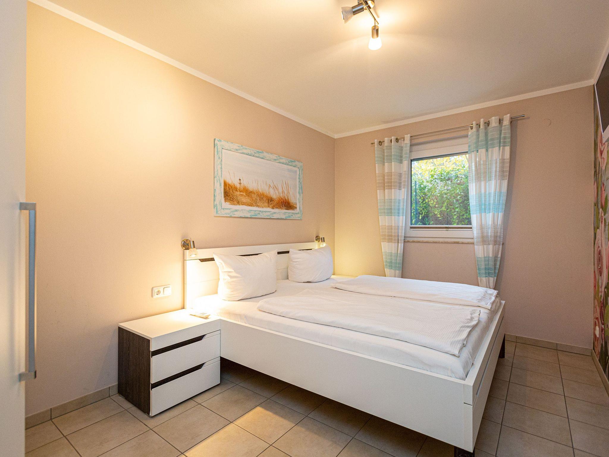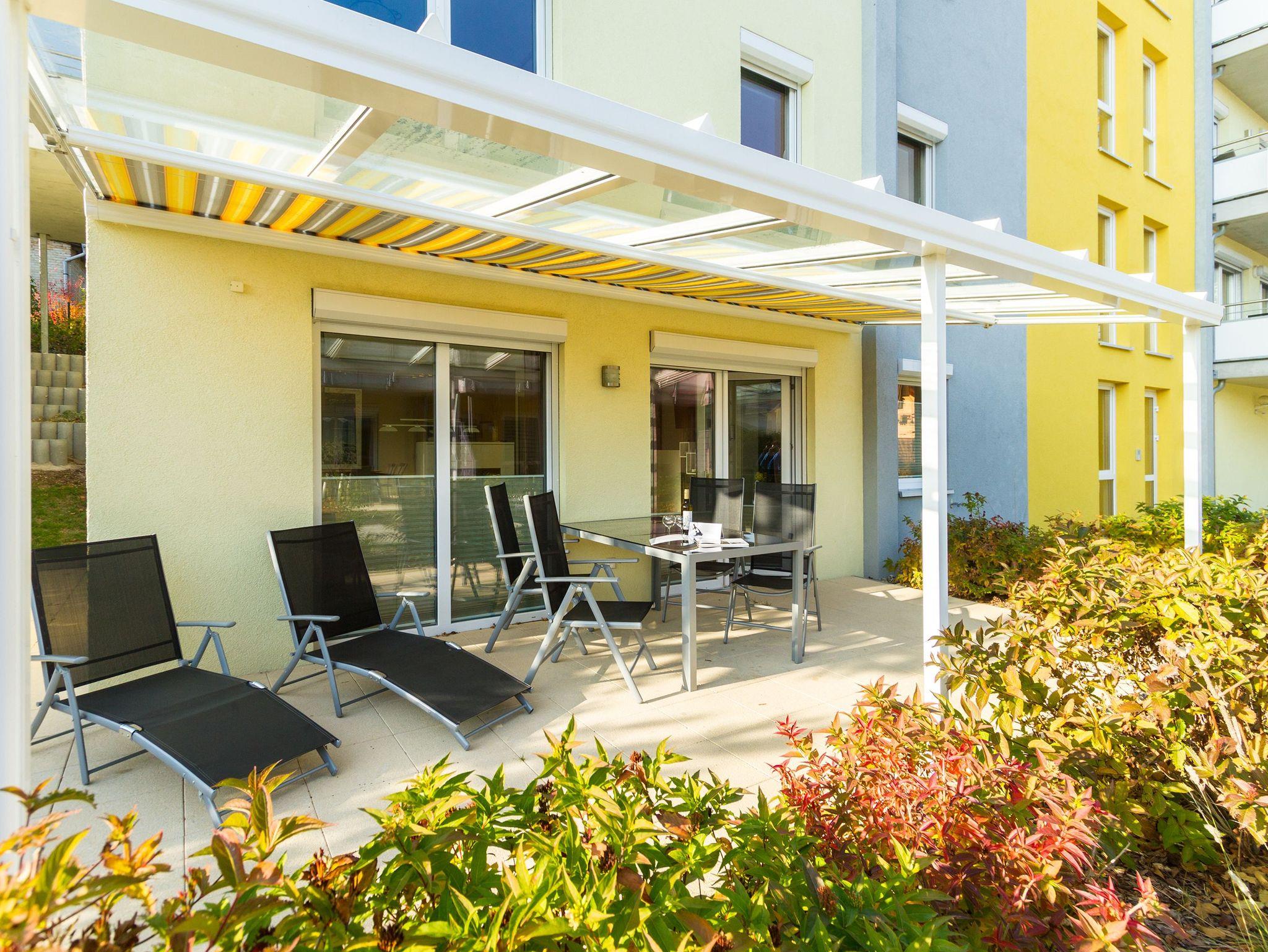 Modern und mit allem erdenklichen Komfort ausgestattet, empfängt das Appartement 7 Auszeitler, die sich im Herzen von Heringsdorf einen erholsamen Urlaub gönnen wollen. Auf 70 Quadratmetern haben Sie viel Platz zum Aus- und Entspannen. Bis zu vier Personen und ein Kleinkind kann das Drei-Zimmer-Appartement im Erdgeschoss beherbergen. Machen Sie es sich gemütlich im großen Wohn-Esszimmer. Ob am Esstisch oder auf den Gartenmöbeln auf der Terrasse mit Blick ins Grüne ? das Essen schmeckt im Urlaub ohnehin immer viel besser als daheim. Brennt die Sonne zu arg, schafft eine große Markise kühlend Abhilfe. Die Sonnenliegen laden zum Mittagsschläfchen ein. Oder schalten Sie auf dem Sofa im Wohnzimmer bei Highend-Unterhaltung via Flat-TV entspannt ab. Die offene Küchenzeile ist mit einer Einbau-Mikrowelle mit Grillfunktion und einem 2-Platten-Ceranfeld ausgestattet. Gemeinsame Kochaktionen werden Dank der hochwertigen Geräte zum Kinderspiel. Kleine Erholungsoasen sind die beiden Schlafzimmer. Die Doppelbetten sind bei Anreise bereits bezogen. Jedes der Zimmer verfügt ebenfalls über einen eigenen Flat-TV und einen geräumigen Schrank. Das moderne Badezimmer hat Dusche, Waschtisch und WC. Außerdem gibt es ein separates Gäste-WC. Handtücher liegen für Sie bereit. Auf Wunsch kann für die kleinen Gäste ein Kinderreisebett (ohne zusätzliche Matratze [&] Bettzeug) und ein Kinderhochstuhl (gegen einen Aufpreis) zur Verfügung gestellt werden.