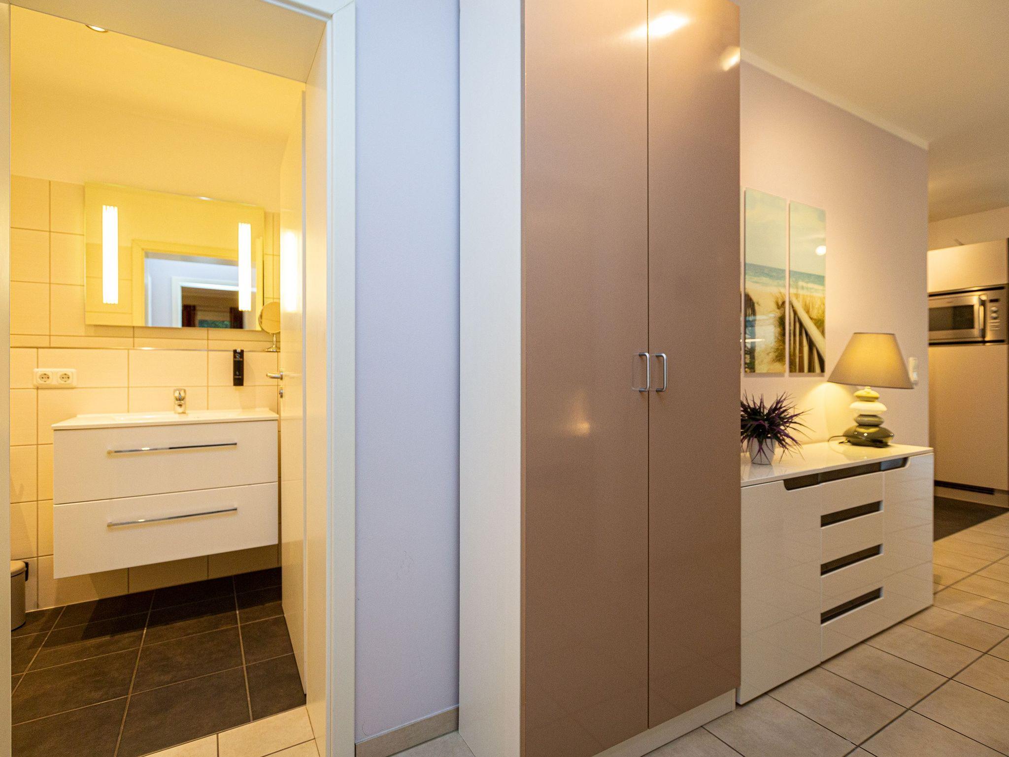 Etwas versteckt, aber dennoch zentral gelegen, empfängt Sie das Domizil am Hang, bestehend aus Haus A [&] Haus B. Es erwarten Sie individuell gestaltete 2- und 3-Raum-Appartements mit Balkonen, Terrassen und hochwertiger Ausstattung. Fu?r beide Ha?user steht eine Tiefgarage zur Verfu?gung, in der fu?r jede Wohnung ein PKW- Stellplatz vorhanden ist. Aus dieser Tiefgarage ist ein Zugang zum Aufzug und zu den Wohnungen des Hauses B möglich (unabha?ngig davon ob man mit oder ohne PKW anreist). Von dort haben Sie Zugang zum Haus A, welches über keinen Aufzug verfügt. Die oberen Appartements sind ausschließlich über Treppen zu erreichen. Bis zum Strand und zur Promenade sind es ca. 400m Fußweg. Im Haus sind die Waschmaschine und Trockner gegen Gebühr nutzbar. Außerdem steht für jede Wohnung ein Briefkasten am Haus zur Verfügung.
