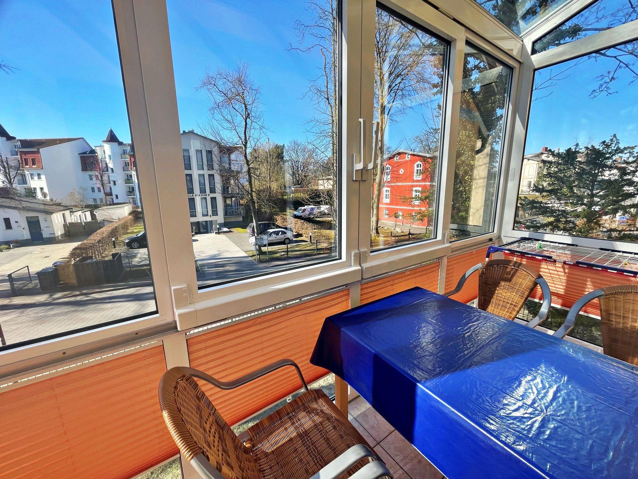 Herzlich willkommen in dieser charmanten 3-Raum Maisonette Ferienwohnung im Obergeschoss des Hauses Galeone im Ostseepark Waterfront! Hier finden bis zu 5 Personen den idealen Ort für einen angenehmen und entspannten Urlaub in Heringsdorf. Das einladende Wohnzimmer ist mit einer gemütlichen Sitzgarnitur ausgestattet, die zum Verweilen einlädt. Genießen Sie Ihre Lieblingssendungen auf dem Flachbild-TV oder entspannen Sie bei Musik über das CD-Radio. Die kleine Küchenzeile mit Elektroherd, Kühlschrank und Mikrowelle bietet Ihnen die Möglichkeit, sich selbst zu versorgen. Im angrenzenden Wintergarten können Sie Ihr Frühstück in der Morgensonne genießen oder den Abend bei einem Glas Wein ausklingen lassen. Das erste Schlafzimmer verfügt über ein komfortables Doppelbett, während das zweite Schlafzimmer im Obergeschoss mit einer Schlafcouch und einem Einzelbett ausgestattet ist - ideal für Familien oder Gruppen. Das Tageslicht-Bad ist mit Dusche und WC eingerichtet. Für Ihren Komfort steht Ihnen ein Pkw-Stellplatz auf dem umzäunten Grundstück zur Verfügung. Zudem können Sie gegen Entgelt eine Waschmaschine und einen Wäschetrockner im Objekt nutzen. Die Erstausstattung Bettwäsche und Handtücher kann bei der Buchung der Ferienwohnung für nur 17,50 € pro Person hinzugebucht werden. WLAN-Zugang ist für ein Gerät kostenfrei, für jedes weitere Gerät werden 10 € pro Woche berechnet.