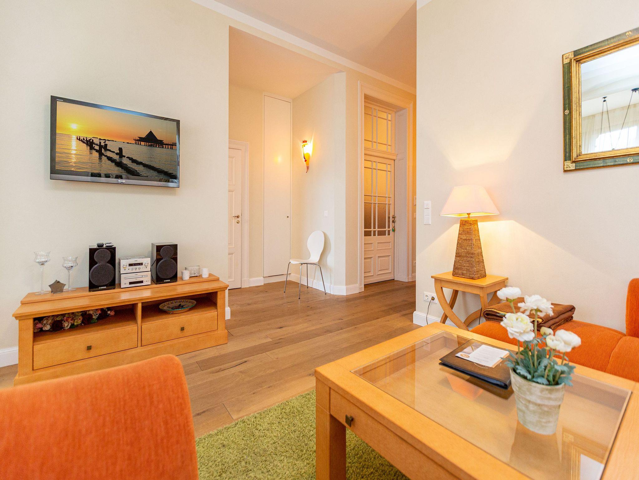 Villa Julius - Freuen Sie sich auf ein Wohnerlebniss der besonderen Art. Eine wunderschöne historische Villa mit großzügigen, stylischen Wohnungen und hochwertigster Einrichtung ist ein passendes Hideaway! Lassen Sie sich begeistern von einem stilvollen Ambiente, das von einer versierten Innenarchitektin gestaltet wurde. Viel Platz und jeglicher Komfort verstehen sich von selbst. Jedes der sechs 2- bzw. 3-Raum-Appartements wurde individuell eingerichtet: Marrakesch, La Mer, American Style... Wohnungen, die sofort Urlaubsatmosphäre versprühen. Auch die wunderschöne Gartenanlage mit einer Grillecke wird Sie begeistern. Das WLAN-Netz im Haus kann kostenfrei genutzt werden. Fahrradständer und ein Pkw-Stellplatz befinden sich am Haus.