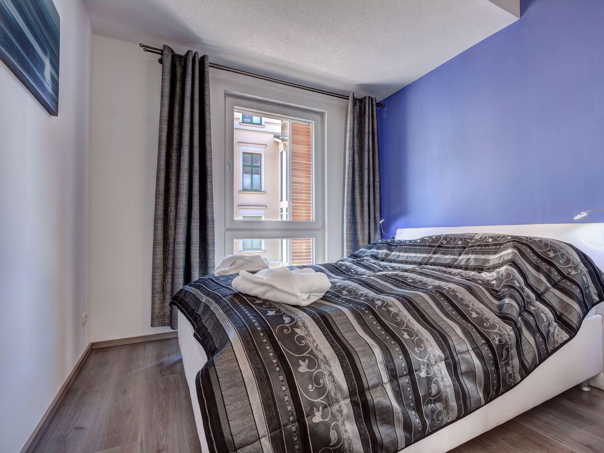 Die moderne, im maritimen Stil gestaltete 3-Raum-Nichtraucher-Wohnung befindet sich im 1. Obergeschoss des Appartementhauses und bietet Ihnen auf etwa 50 m² alles, was Sie für einen angenehmen Aufenthalt benötigen.