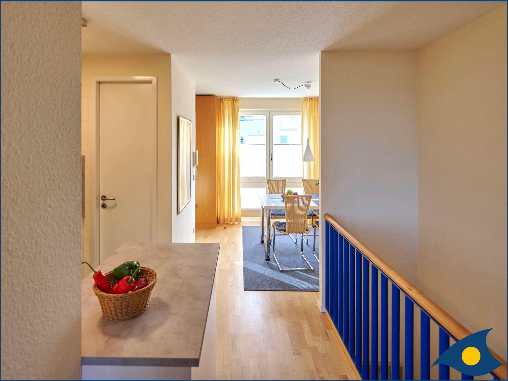 Vom Wohnzimmer aus bietet diese Wohnung über die autofreie Strandpromenade einen traumhaften Panoramablick auf die Ostsee. Als Maisonette erstreckt sich die Wohnung über zwei Etagen und ist von dem Parkplatz mit dem Aufzug bequem zu erreichen.
