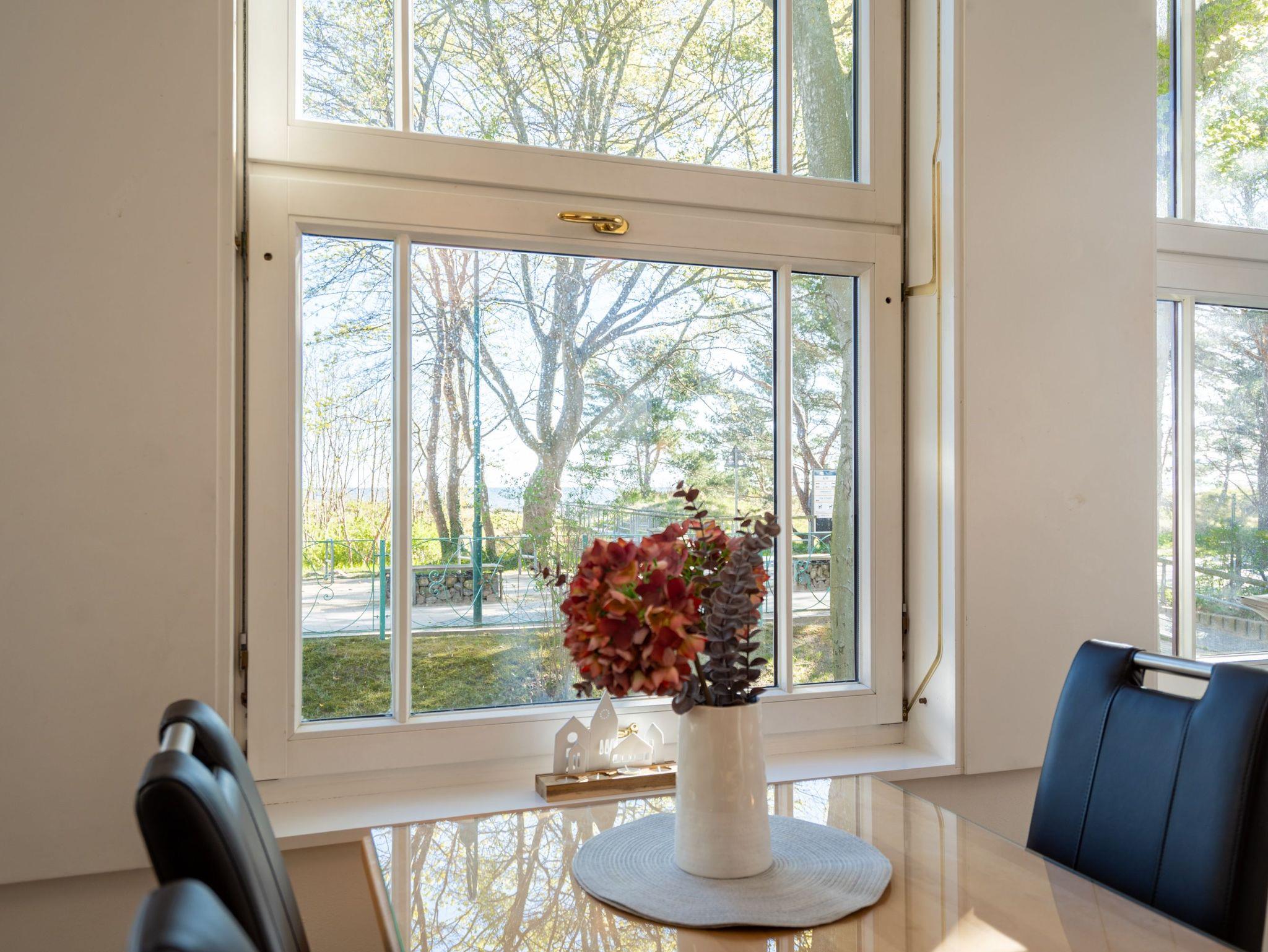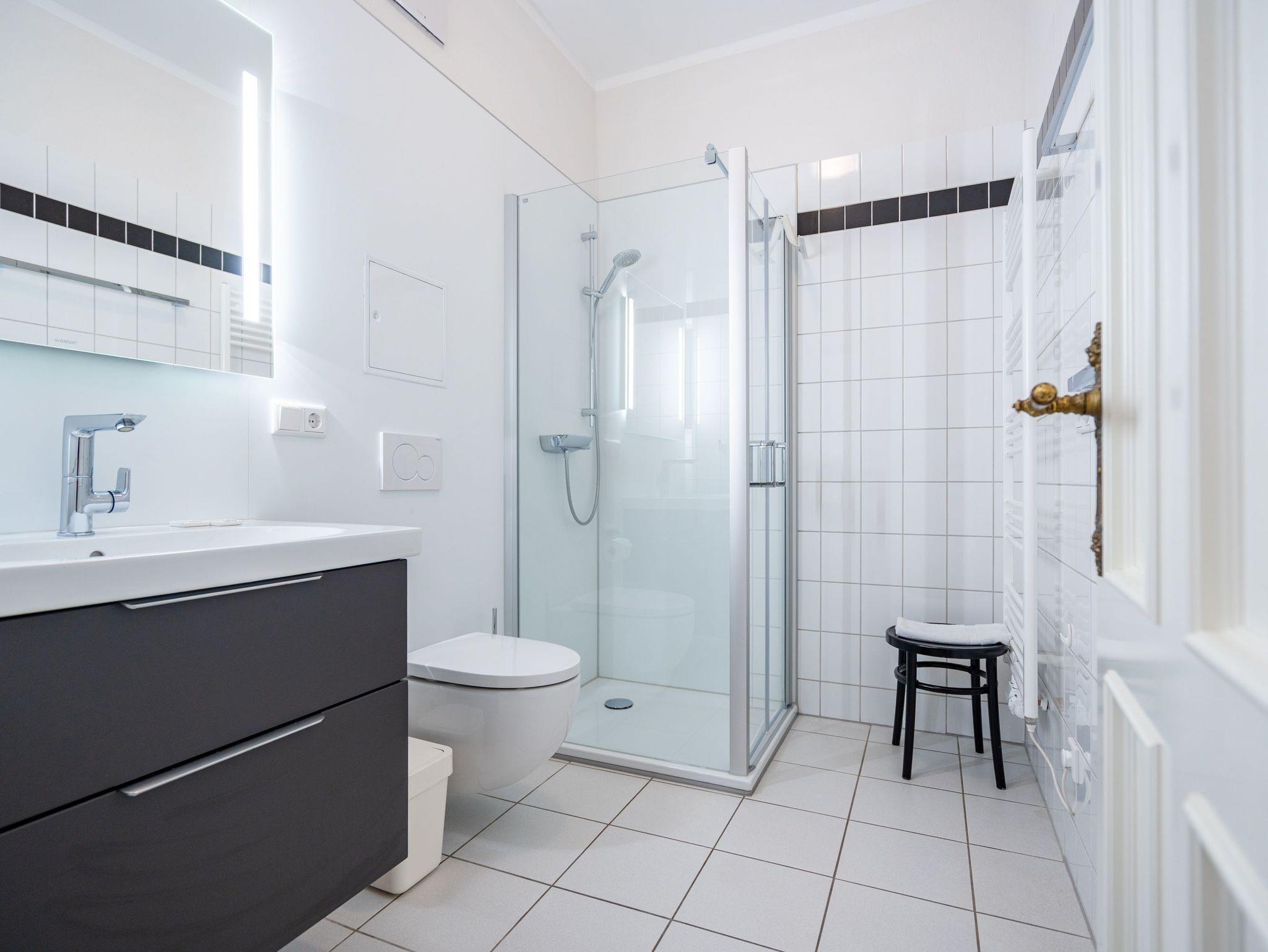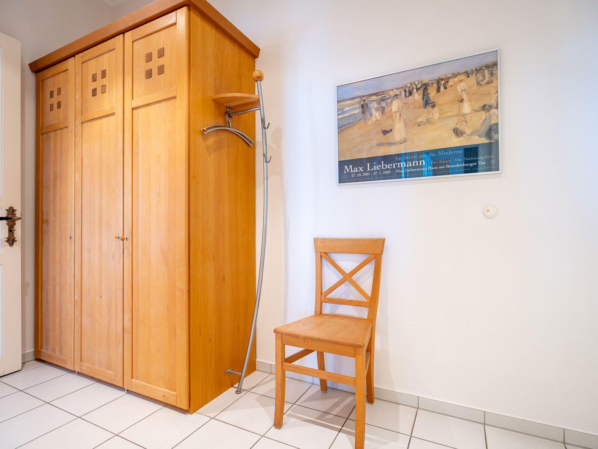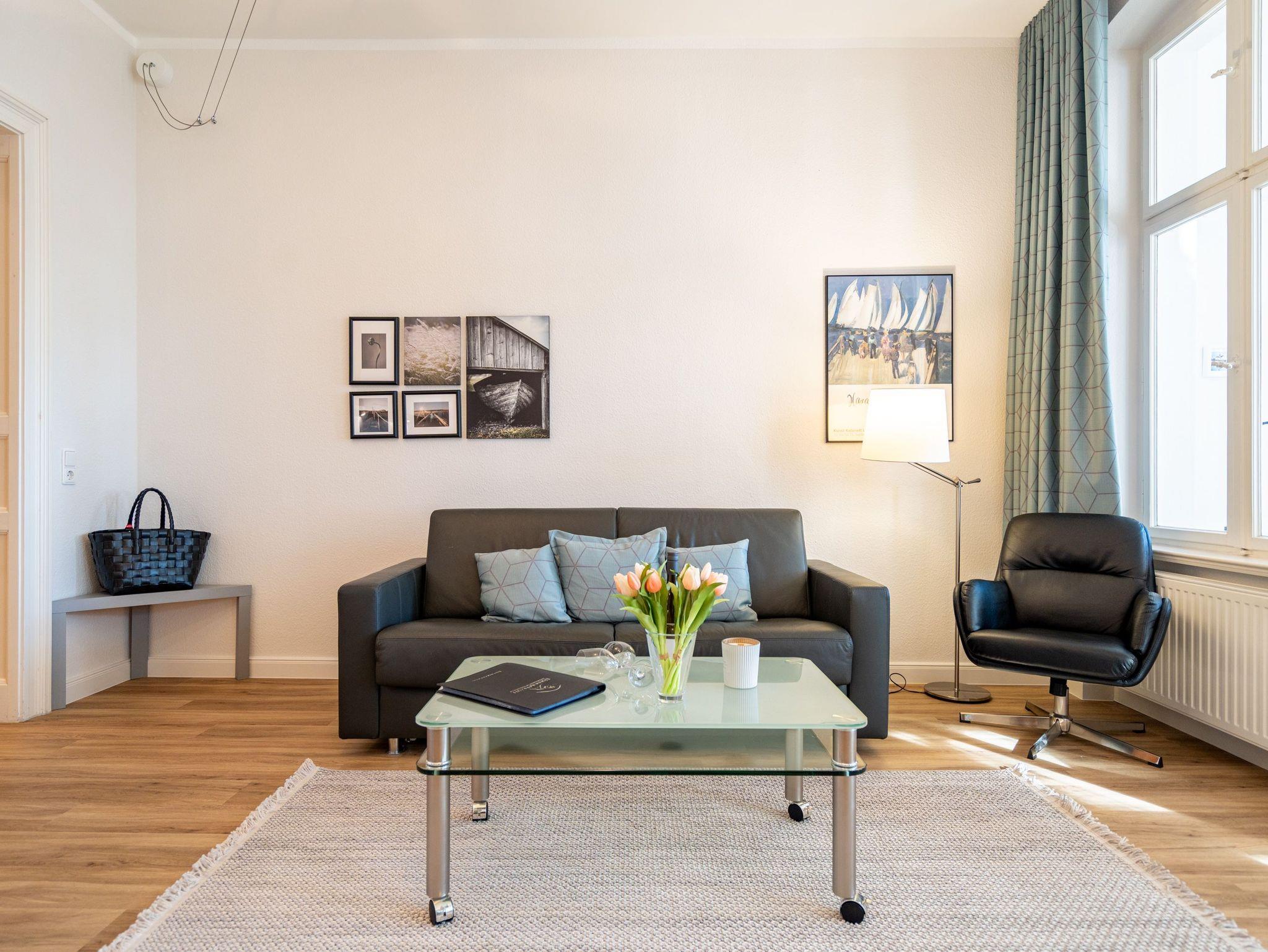 Wohnen nach Wunsch! Die 2-Raum-Ferienwohnung im Obergeschoss bietet Ihnen 58 qm Wohnfläche zum Wohlfühlen. Der Wohnbereich mit offener, komplett ausgestatteter Küchenzeile lässt keine Wünsche offen. Die vorgelagerte, verglaste Veranda verfügt über einen gemütlichen Essplatz und einen Lesesessel. Von hier hat man einen schönen Blick auf die Promenade und die Düne, durch die Bäume schimmert die Ostsee. Geschmackvolles Interieure, arrangiert mit liebevollen Details sorgen für eine entspannte, stimmungsvolle Urlaubsatmosphäre. Ein Schlafzimmer mit Doppelbett und ein Bad mit Dusche ergänzen die Wohnung. Auf Wunsch stellen wir für unsere kleinen Gäste ein Kinderreisebett (ohne zusätzliche Matratze [&] Bettzeug) und einen Kinderhochstuhl ( gegen einen Aufpreis) zur Verfügung. Für Ihren Komfort sind die Betten bei der Anreise bezogen und Handtücher liegen bereit (Erstausstattung). Das WLAN-Netz ist kostenfrei nutzbar.