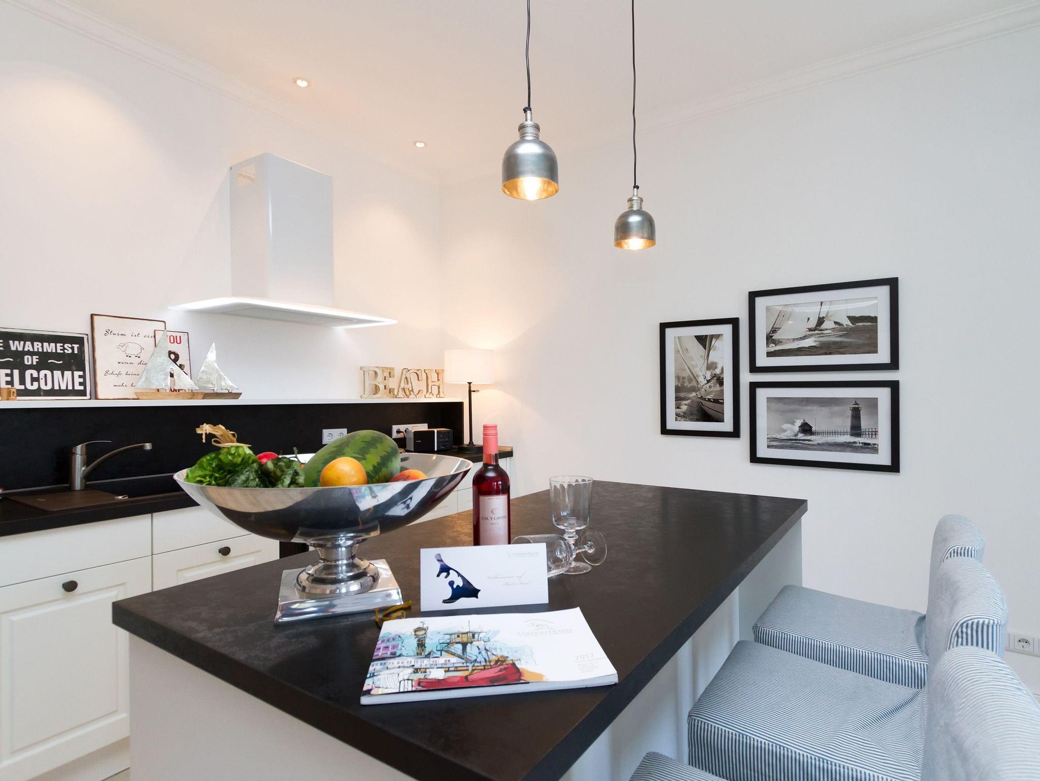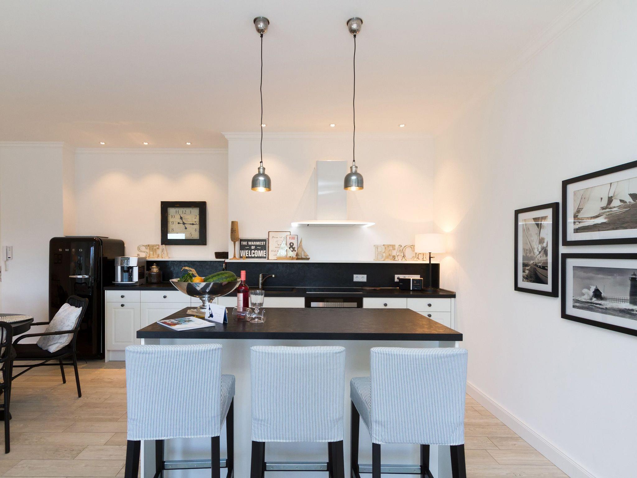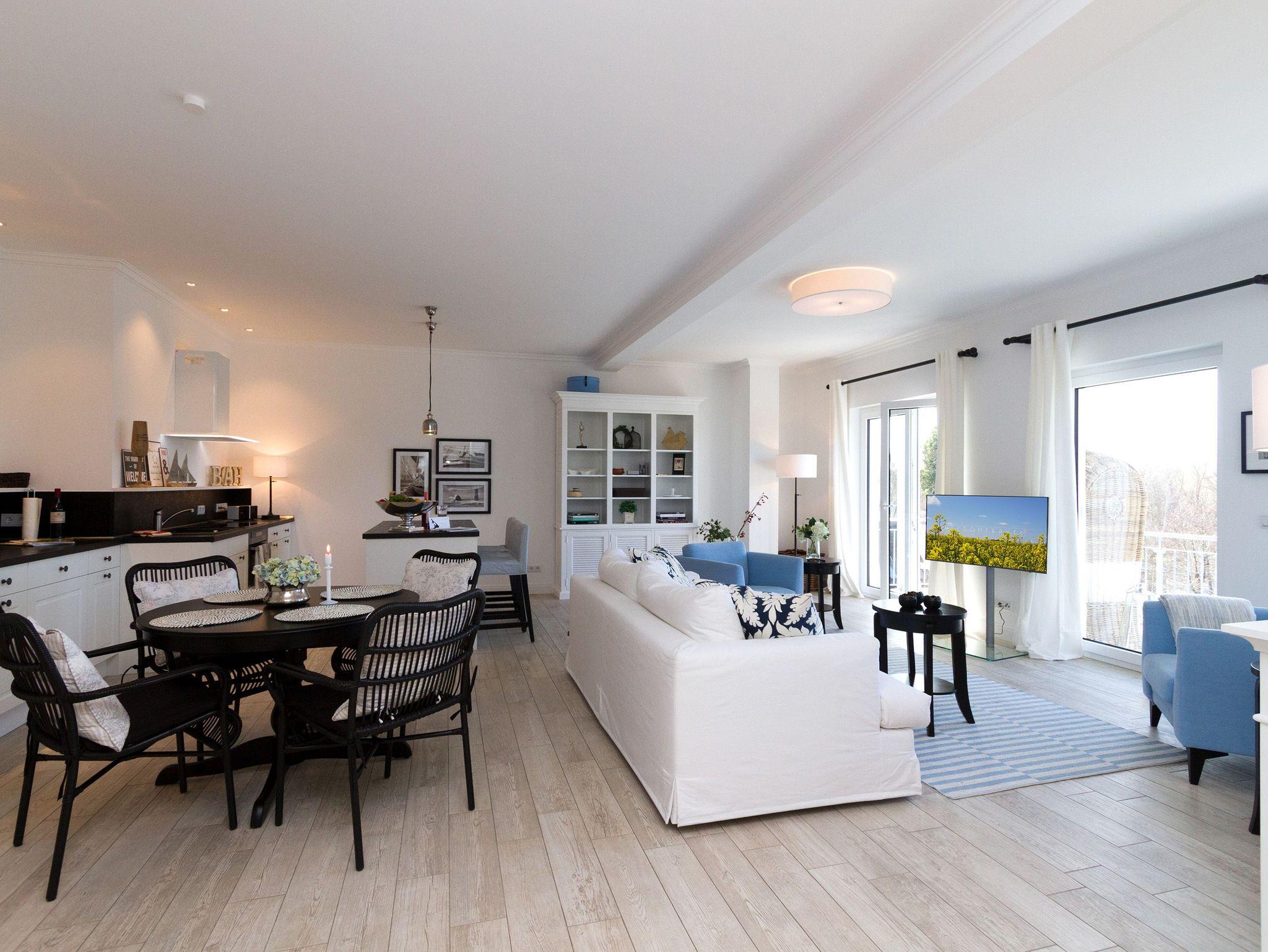Viel Platz zum Urlauben haben bis zu drei Usedomfreudige und maximal ein Kind bis fünfzehn Jahre in diesem stilvollen Appartement Nummer 20 in der 3. Etage der Dünenresidenz. Denn dieses Ferienparadies ist mit seinen drei Räumen 100 Quadratmeter groß. Im lichtdurchfluteten Wohnbereich dominieren helle und warme Farben sowie exklusives Wohndesign. Eine große Sessel- und Sofalandschaft verlockt zum ausgiebigen Entspannen. Mit Blick auf den klassizistisch anmutenden Kamin oder auf den großen Flat-TV wird das Entspannen zum Abschalten und Runterfahren pur. Vom Wohnzimmer aus geht?s auf den sonnigen Süd-Balkon. Hier erwartet Sie ein kleines Highlight: Neben den gemütlichen Gartenmöbeln und Sonnenstühlen können Sie die Ostseesonne auch in einem originalgetreuen Nachbau eines der ersten Strandkörbe genießen. Wenn Sie der Appetit oder die Lust am Kochen packt ? die wunderschöne Küche mit dem freistehenden Kühlschrank im Look der1960er Jahre lässt die Herzen von Hobbyköchen höher schlagen. Sie ist mit hochwertigen Geräten und Geschirr voll ausgestattet. Offen, doch durch eine kleine Theke vom Wohnbereich abgetrennt, lässt es sich hier gemütlich beisammen sein. Genauso wie am exklusiven Biedermeier-Esstisch mit dazu passenden Armlehnstühlen in stylischem Schwarz. Doch hört die Auszeit hier nicht auf. Im Schlafzimmer sorgt ein großes Himmeldoppelbett (1,60 m x 2,00 m) für samtweiche und erholsame Träume. In einem liebevoll eingerichteten Kinderzimmer können gleich zwei Kinder viel Spaß miteinander haben. In dem Zimmer steht ein Einzelbett (0,90m x 2,00m) mit ausziehbarem Zusatzbett ( für eine 4. Person). Ein eigener kleiner Wellnessbereich ist das geräumige Badezimmer mit Dusche, Doppelwaschtisch, WC und einer Finnischen Sauna. Das Appartement verfügt zudem über ein Gäste-WC. Von Mai bis September steht Ihnen ein Strandkorb am unmittelbar in der Nähe gelegenen Strand zur Verfügung. Zu der Wohnung gehört ein Pkw-Stellplatz in der Tiefgarage (max. Einfahrtshöhe 1,85 m). Über einen Fahrstuhl können sie ins dritte Obergeschoss hinauffahren.