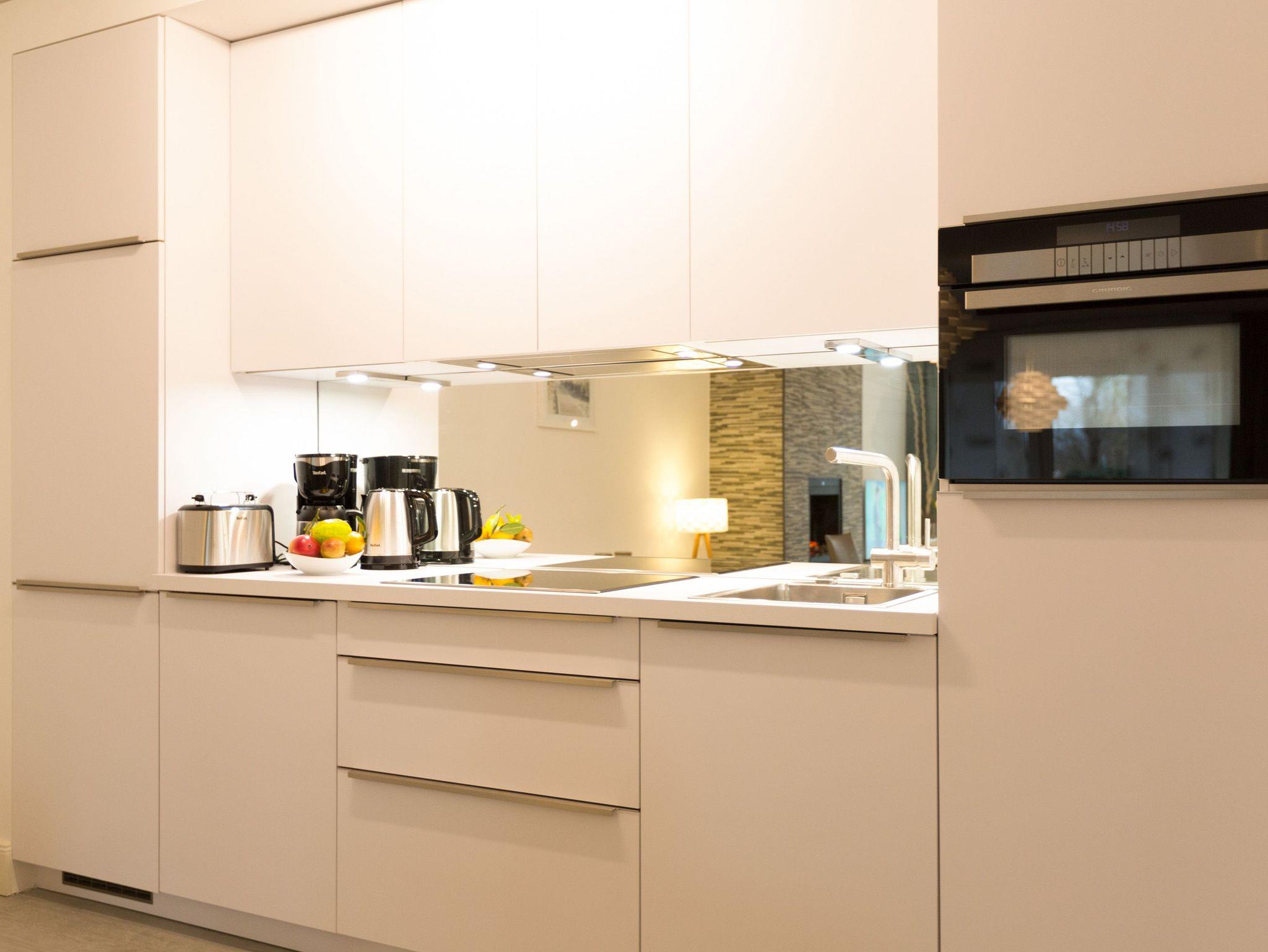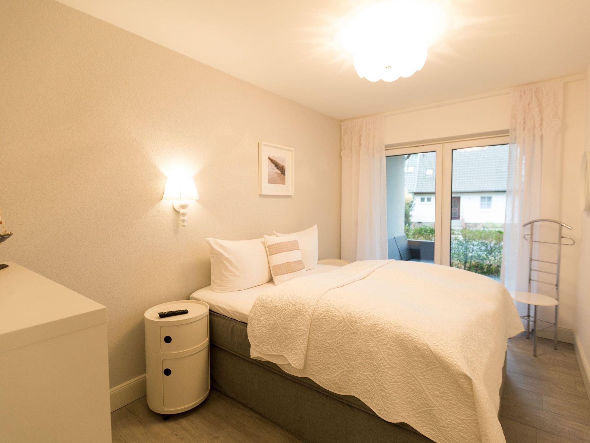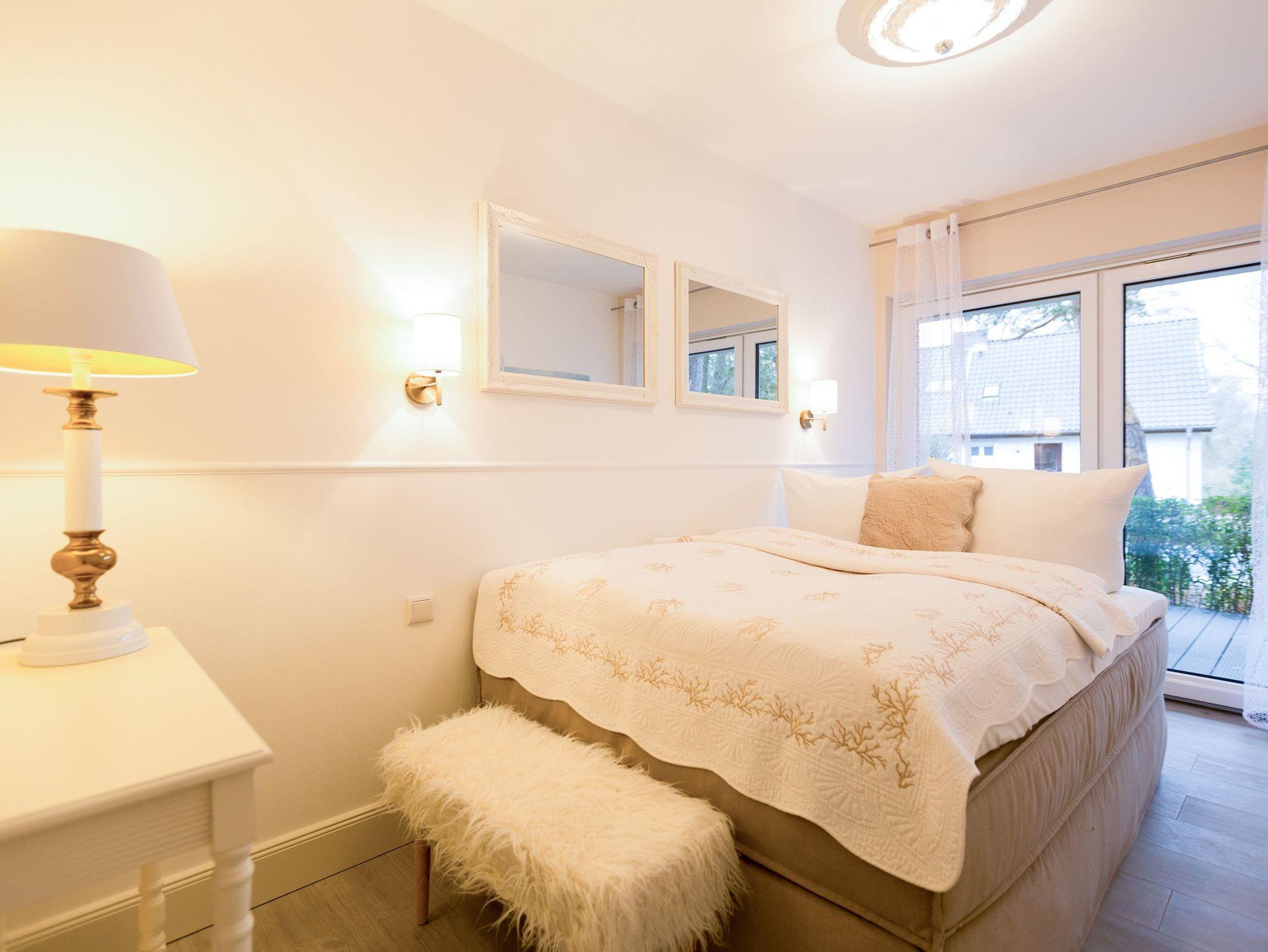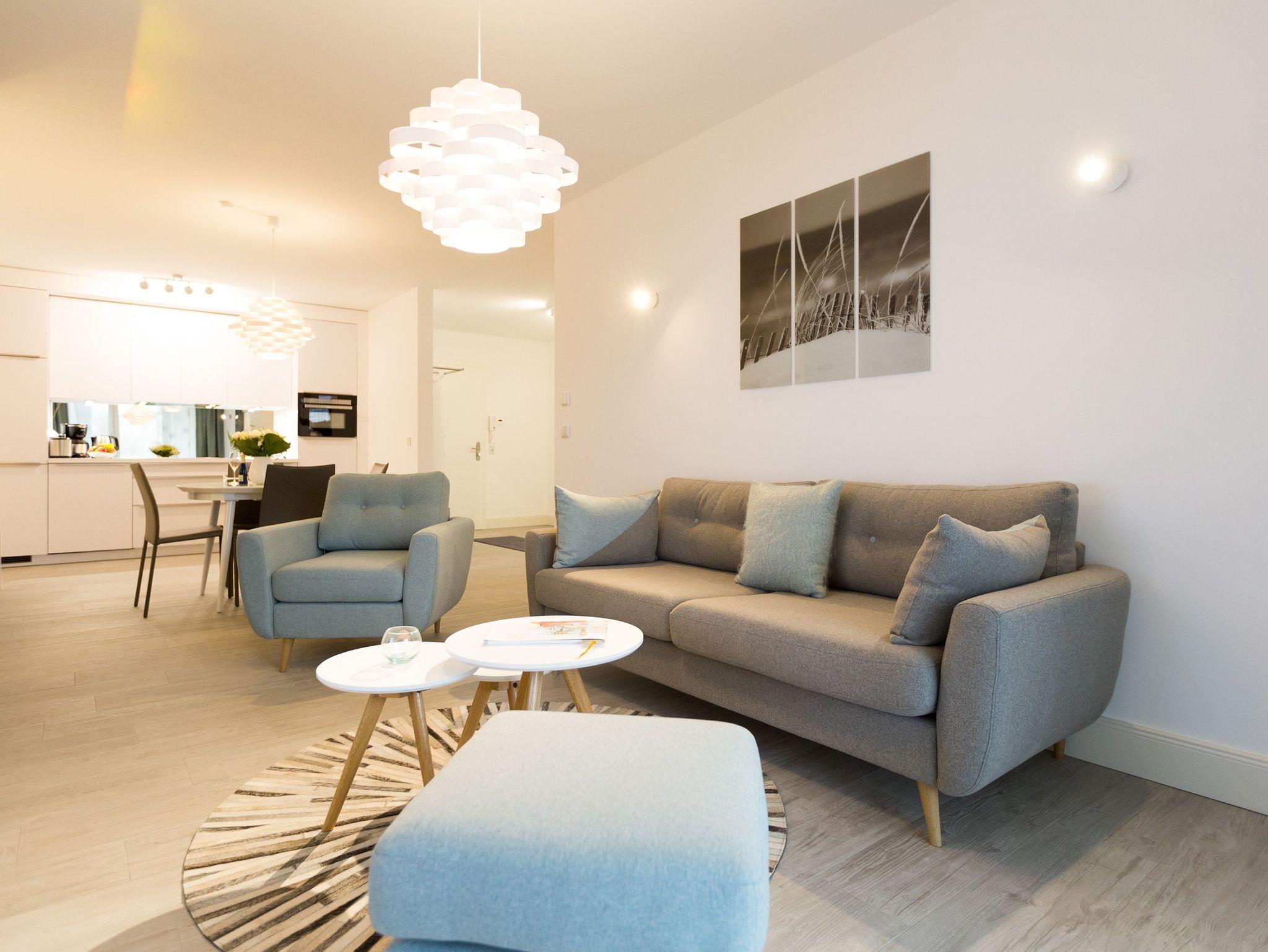 Er ist ein echter Hingucker schon beim Eintreten in dieses elegante und stilvolle Urlaubsappartement im Erdgeschoss der Dünenresidenz Heringsdorf der große, in Stein gefasste Elektro-Kamin. Sein warmes Licht sorgt nicht nur an kühlen Tagen für wohlige Behaglichkeit. Es wartet eine Wohlfühlwelt auf Sie, die auf 80 Quadratmetern reichlich Platz für bis zu vier Erwachsene bietet. Das gesamte Interieur ist harmonisch aufeinander abgestimmt. Stylisch sind auf alle Fälle die nordischen Design-Lampen. Abschalten und den Alltagsstress vergessen, lässt es sich auf der Sitzgruppe mit gemütlicher Couch und Blick auf den Kamin oder den großen Flat-TV wunderbar. Machen Sie die großen, bodentiefen Wohnzimmerfenster auf, lassen sie das Meeresrauschen vom nur 50 Meter entfernten Ostseestrand und die lichten Sonnenstrahlen in ihr Domizil oder entspannen Sie auf der 20 Quadratmeter großen Südterrasse. Zum Wohnbereich gehört eine helle, offene Küche mit großem Esstisch. Mit allem ausgestattet, was das Kochherz höher schlagen lässt, können Sie hier das gemütliche Zusammensitzen und Schlemmen wahrhaft zelebrieren. Haben Sie Spaß und einen erholsamen Schlaf in den beiden Schlafzimmern. Denn hier locken bequeme Doppelboxspringbetten (einmal 1,80 m x 2,00 m und einmal 1,60 m x 2,00 m), um Ihnen die Nächte zu versüßen. Das Badezimmer ist sehr geräumig und mit Waschtisch, WC und großer Echtglas-Dusche ausgestattet. Die Betten sind bezogen und Handtücher liegen bei Ankunft bereit. Zu der Wohnung gehört ein Pkw-Stellplatz in der Tiefgarage (max. Einfahrtshöhe 1,85 m).