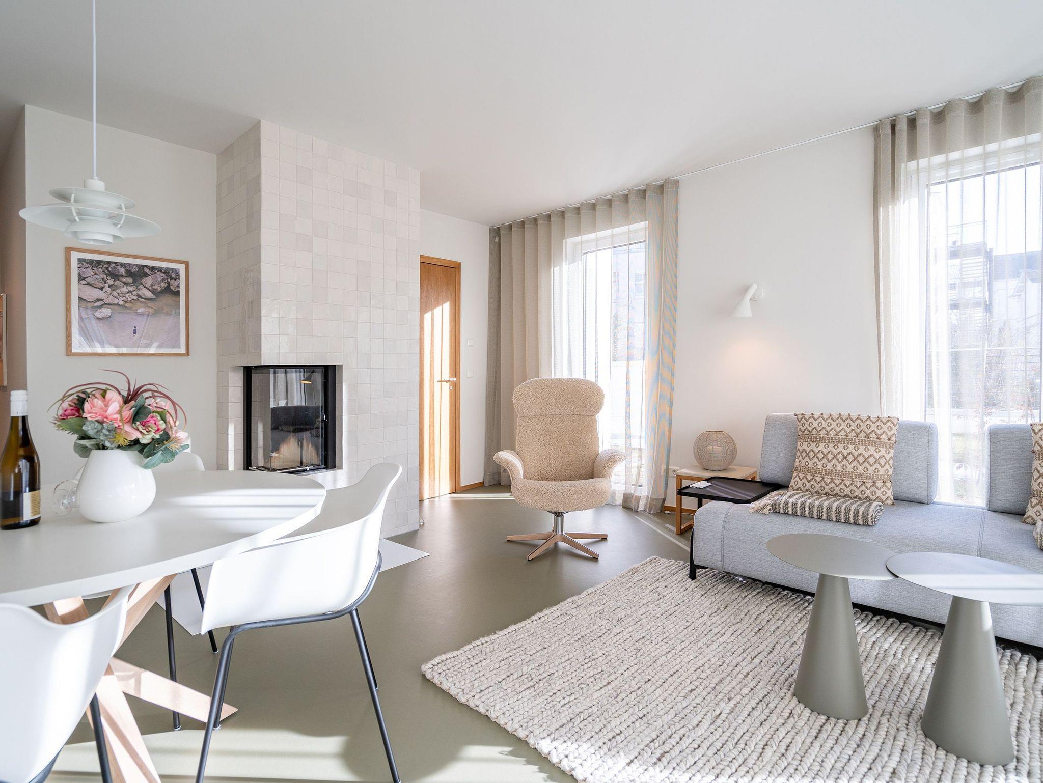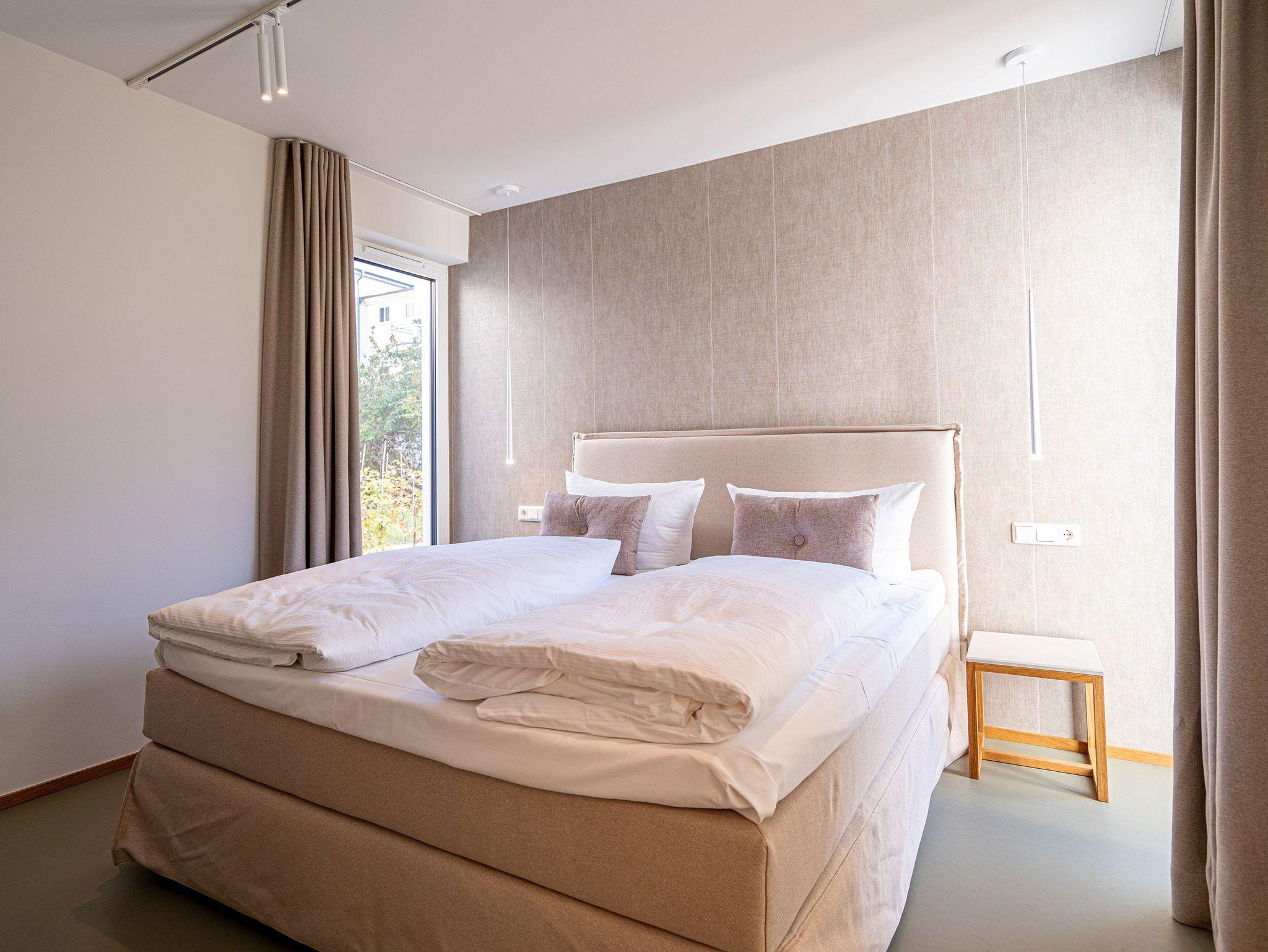Herzlich willkommen in der hellen und modernen 3-Raum-Ferienwohnung Nr. 03 im Erdgeschoss, die Platz für bis zu 4 Personen bietet. Mit einer großzügigen Fläche von 87 Quadratmetern erwartet Sie hier ein komfortables Urlaubserlebnis. Der offene Wohnbereich empfängt Sie mit einer gemütlichen Sitzgruppe, einem Flachbildfernseher und einem Kaminofen, der für eine behagliche Atmosphäre sorgt. Von hier aus haben Sie direkten Zugang zur 15 Quadratmeter großen Süd-West-Terrasse, auf der Sie die Sonne und frische Luft genießen können. Ein Essplatz für 4 Personen lädt zu geselligen Mahlzeiten ein. Die voll ausgestattete Küchenzeile bietet alles, was Sie für die Zubereitung von köstlichen Mahlzeiten benötigen, darunter einen Backofen mit integrierter Mikrowelle, einen Induktionsherd sowie Kühl- und Gefrierschrank. Die Wohnung verfügt über 2 Schlafzimmer, jeweils mit komfortablen Boxspringdoppelbetten (1,80m x 2,00m), geräumigen Kleiderschränken und Flachbildfernsehern für Ihre Unterhaltung und Entspannung. Für Ihr Wohlbefinden sorgt ein innenliegendes Masterbad mit Dusche, Waschtisch und WC. Zusätzlich steht Ihnen ein zweites Tageslichtbad zur Verfügung, das mit einer Dusche, einem Doppelwaschtisch, einer hochwertigen Massivholzsauna und einem WC ausgestattet ist. In einem separaten Hauswirtschaftsraum finden Sie eine Waschmaschine, die Ihnen während Ihres Aufenthalts zur Verfügung steht. Ein Außenstellplatz für Ihr Auto ist ebenfalls vorhanden, damit Sie bequem an- und abreisen können.