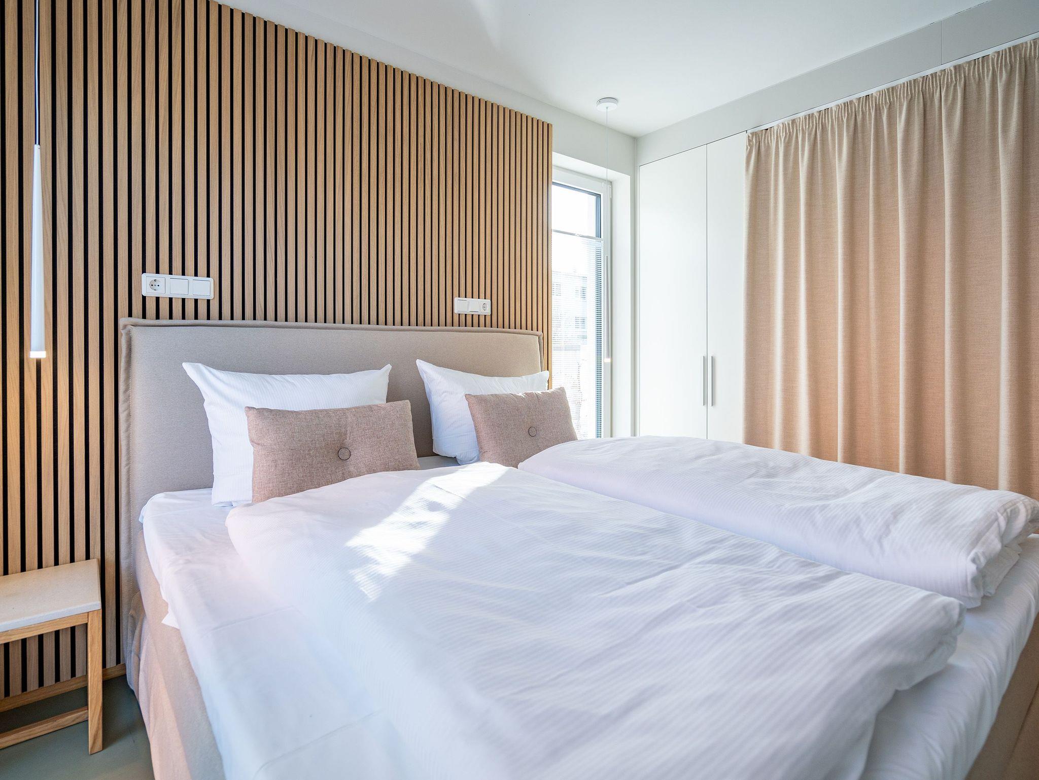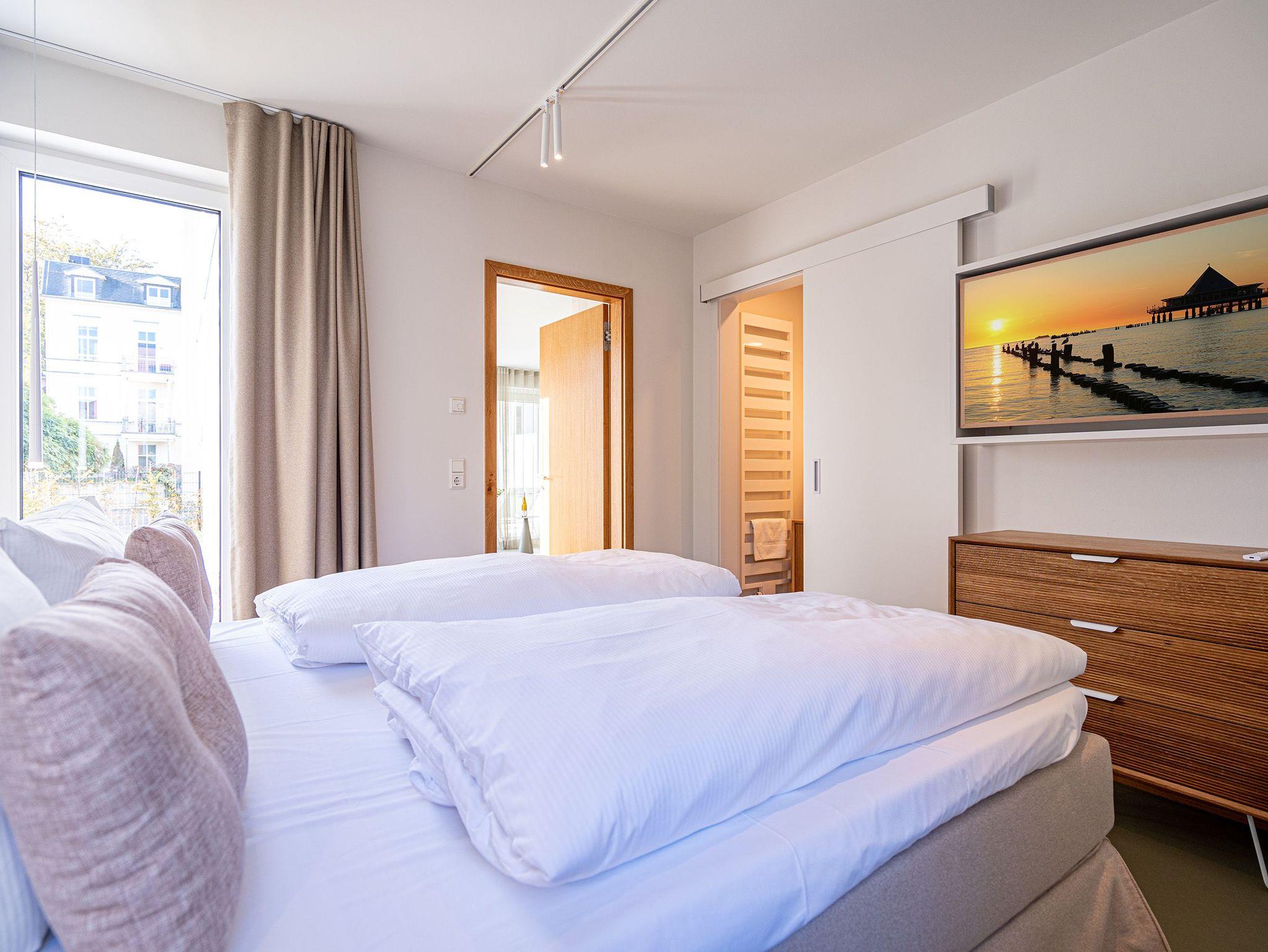 Nur 50m vom Strand entfernt und in einer kleinen Nebenstraße gelegen, empfängt Sie unser neues Domizil Quartier am Strand. Als zweites Objekt am Platz direkt an der schönen Strandpromenade gelegen, fügt sich die Anlage stilvoll zwischen Bäderstilvillen und Strandumgebung ein. Die insgesamt 9 Appartements und 2 Penthouses verfügen über helle und modern eingerichtete 2 bis 3 Zimmer. An kühleren Tagen sorgen Saunen und Kamin, die zu jedem Appartement gehören, für Entspannung in Ihrem Urlaub. Dem Klang der Wellen können Sie bequem von den Terrassen, Balkonen und Dachterrassen aus zuhören, denn jedes Appartement besitzt einen separaten Außenbereich. Der Blick auf die Ostsee ist Ihnen aus einigen Appartements möglich, aus den Penthouses garantiert. Offene Wohnbereiche und voll ausgestattete Küchen komplettieren das neue Objekt Quartier am Strand. Zudem gibt es eine hauseigene Tiefgarage (Einfahrthöhe 2,05 m) sowie einen Außenstellplatz (für Appartement 3), so dass ein eigener PKW-Stellplatz garantiert ist. Zu den weiteren Annehmlichkeiten des Objektes zählt ein Fahrstuhl, der Sie von der Tiefgarage bequem bis in die Etage Ihres Urlaubsdomizils leitet. Kostenfreies W-Lan rundet das Domizil ab. Wir wünschen Ihnen einen schönen Urlaub!