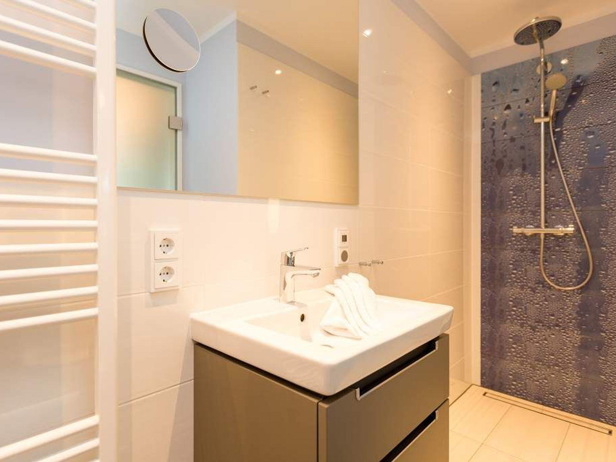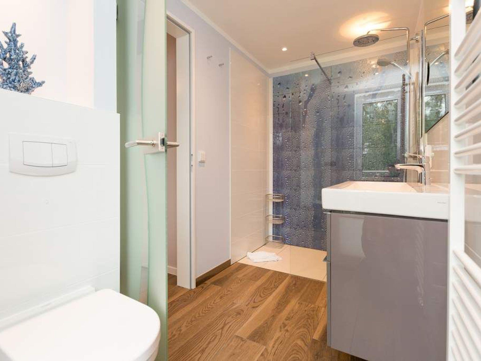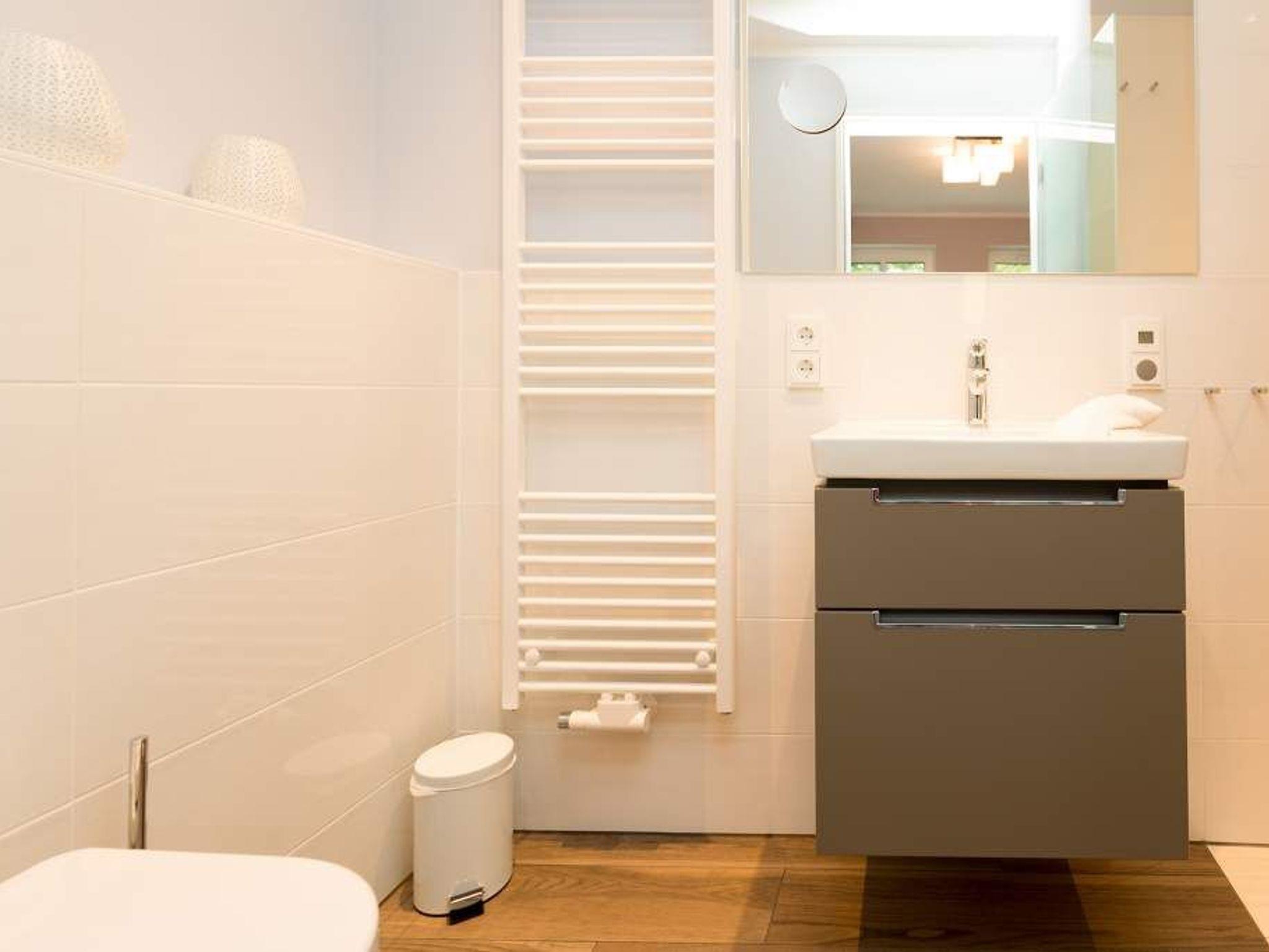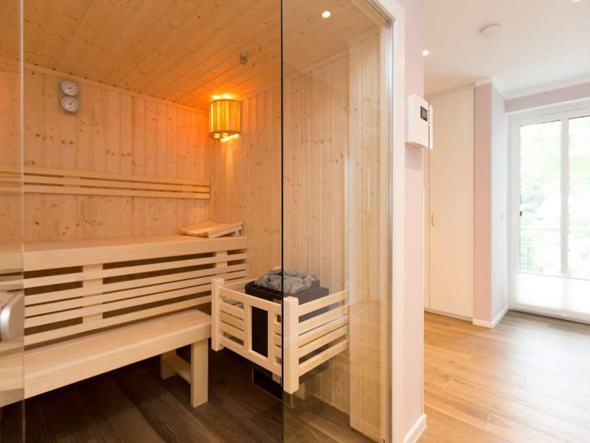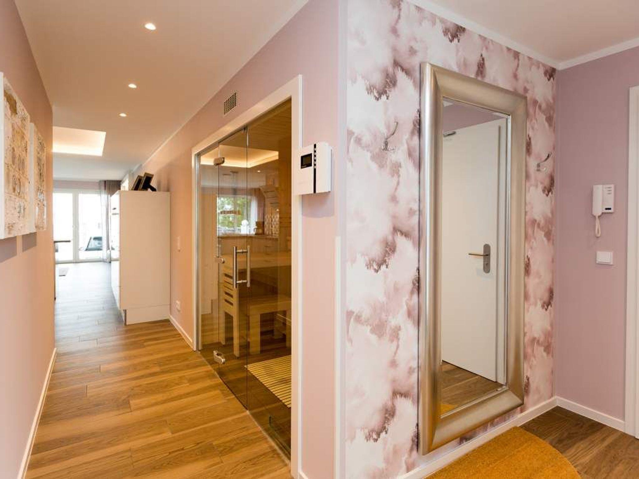 Der perfekte Urlaub beginnt mit dem perfekten Aufwachen in einer Wohnung, in der man sich rundum wohlfühlt. Eingekuschelt in die weißen Laken, noch einmal räkeln und ausstrecken in den herrlich bequemen Doppelboxspringbetten (1,80 m x 2,00 m) der beiden wunderbar lichtdurchfluteten Schlafzimmer ? schöner kann der Start in den Urlaubstag nicht sein. Die 87 Quadratmeter große Wohlfühlwelt der Wohnung Nummer 9 im zweiten Obergeschoss der Villa Strandgrün bietet in ihren drei Räumen Platz für vier Personen und ein Kleinkind im Kinderreisebett. Großzügig, hell und in zarten Rosé- und Violett-Tönen gehalten, strahlt das Appartement Eleganz und Leichtigkeit aus. Ob auf der komfortablen Sofalandschaft, dem gemütlichen Lesesessel oder am stylischen Designer-Esstisch ? hier kann man es sich gut gehen lassen. Ein absolut außergewöhnliches Highlight ist der Kaminofen, dessen romantisches Flackern sowohl vom Wohnzimmer als auch von einem der beiden Schlafzimmer aus genossen werden kann. Flat-TVs gibt es in jedem der drei Zimmer. Vom Wohnzimmer aus geht es auf den großen Südbalkon mit Gartenmöbeln, Sonnenliege und Blick auf den begrünten Garten und die umliegenden Bädervillen. Die offene Küche mit Metrofliesen ist mit hochwertigen Geräten und Design-Geschirr ausgestattet. Jedes Schlafzimmer verfügt über Einbauschränke und ein eigenes Bad mit Dusche, Waschtisch und WC. Natürlich können die Schlafzimmer verdunkelt werden. Eine geräumige Panorama-Sauna auf dem Flur lädt zum wohligen Abschalten an kühlen Tagen und Abenden ein. Ein kleiner Hauswirtschaftsraum bietet Stauraum. Damit Sie sich so richtig entspannen können, sind die Betten bezogen und Handtücher liegen für Sie bereit. In der Tiefgarage ist ein Stellplatz reserviert. Im wohnungseigenen Kellerraum ist Platz für maximal 2 Fahrräder.