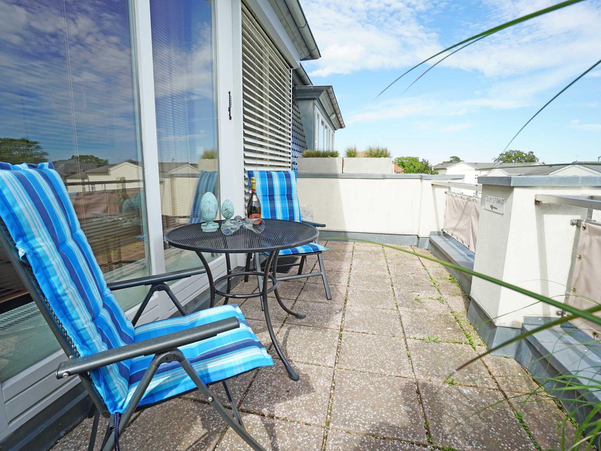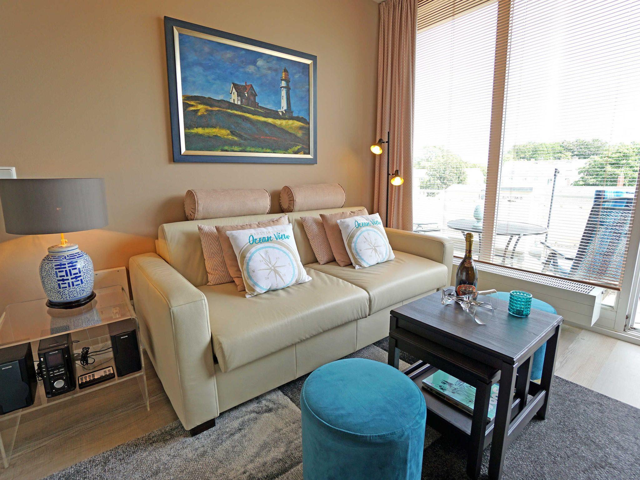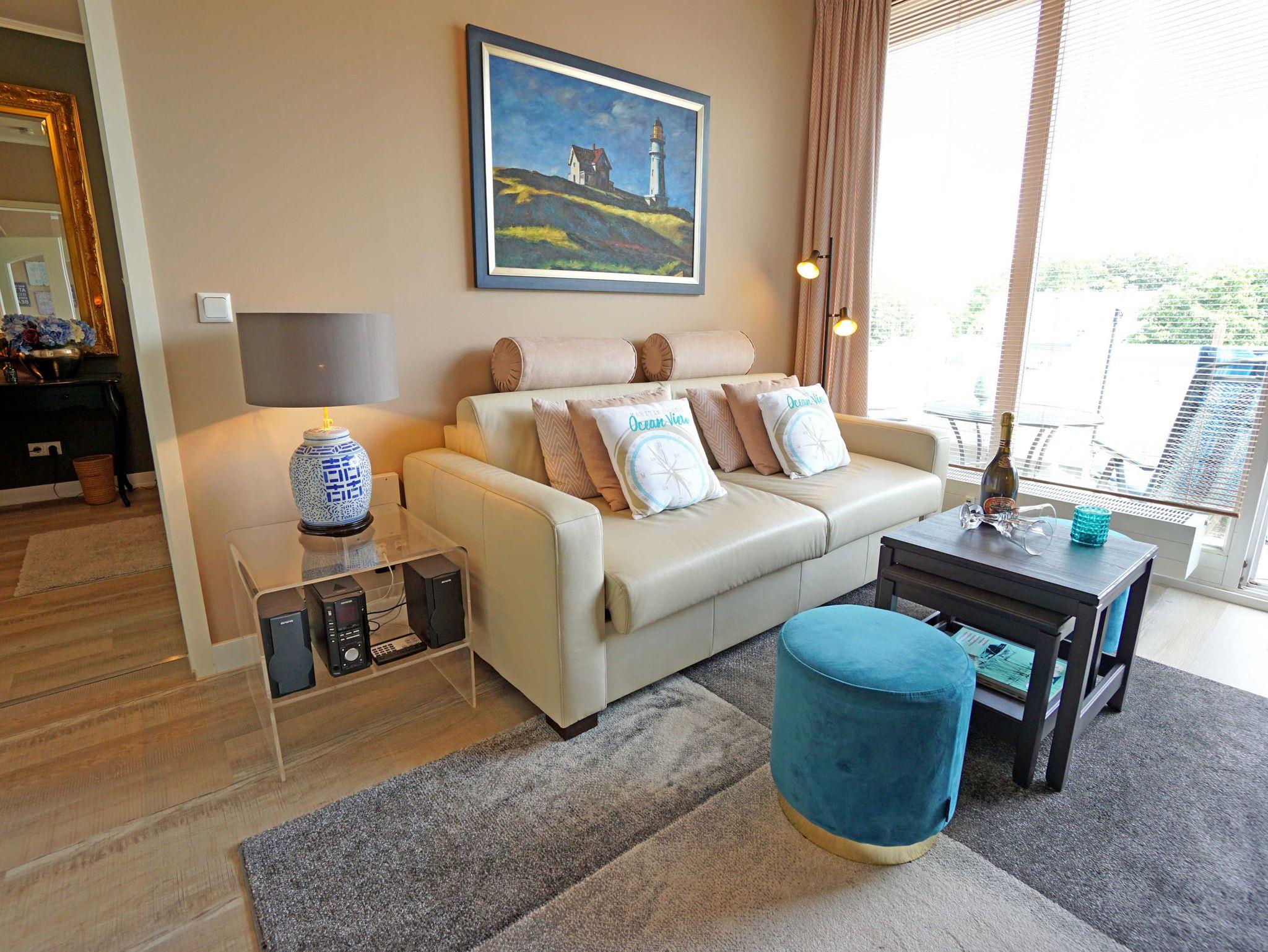 Die mit viel Liebe zum Detail eingerichtete Ferienwohnung Nr. 9 im Long-Island-Style befindet sich im Dachgeschoss der im Jahr 2000 restaurierten denkmalgeschützten Villa to Hus in Heringsdorf. Die exklusive Ausstattung der Wohnung lässt keine Wünsche offen. Das Wohnzimmer mit komfortabler Schlafcouch ist ausgestattet mit einem Smart Hotel TV, einem Elektrokamin (ohne Heizfunktion), einer Hifi-Anlage mit Cd und Bluetoothfunktion, einer Steckdose mit integriertem USB-Anschluß sowie einer voll ausgestatteten Küchenzeile. Die Küchenzeile verfügt über einen Elektroherd mit Cerankochfeld (2-Plattenkochfeld), einen Kombiofen (Umluft, Dampf,Mikrowellenfunktion), einen Geschirrspüler und einen Kühlschrank mit Gefrierfach. Zusätzlich zu einer normalen Filterkaffeemaschine steht Ihnen auch eine Cafissimo-Maschine zur Verfügung. Das großzügige Schlafzimmer mit elektrischen Außenjalousien empfängt Sie mit einem gemütlichen Boxspringbett (Radiowecker vorhanden). Die große Dachterrasse ist ideal zum Sonnenbaden aber auch zum Tagesausklang mit einem Glas Wein geeignet. Ein Parkplatz auf dem Grundstück steht Ihnen kostenfrei zur Verfügung. Zum Strand sind es nur wenige Meter. Zahlreiche Restaurants und Einkaufsmöglichkeiten erreichen Sie in wenigen Gehminuten. Die Lage zwischen den Ortszentren von Heringsdorf und Ahlbeck gilt als eine der besten in den Kaiserbädern. Ein kostenfreies WLAN-Netzwerk steht zur Verfügung. Das Haus verfügt sowohl über einen Fahrradkeller als auch einen Wäschekeller mit Münzwaschmaschine und Trockner.