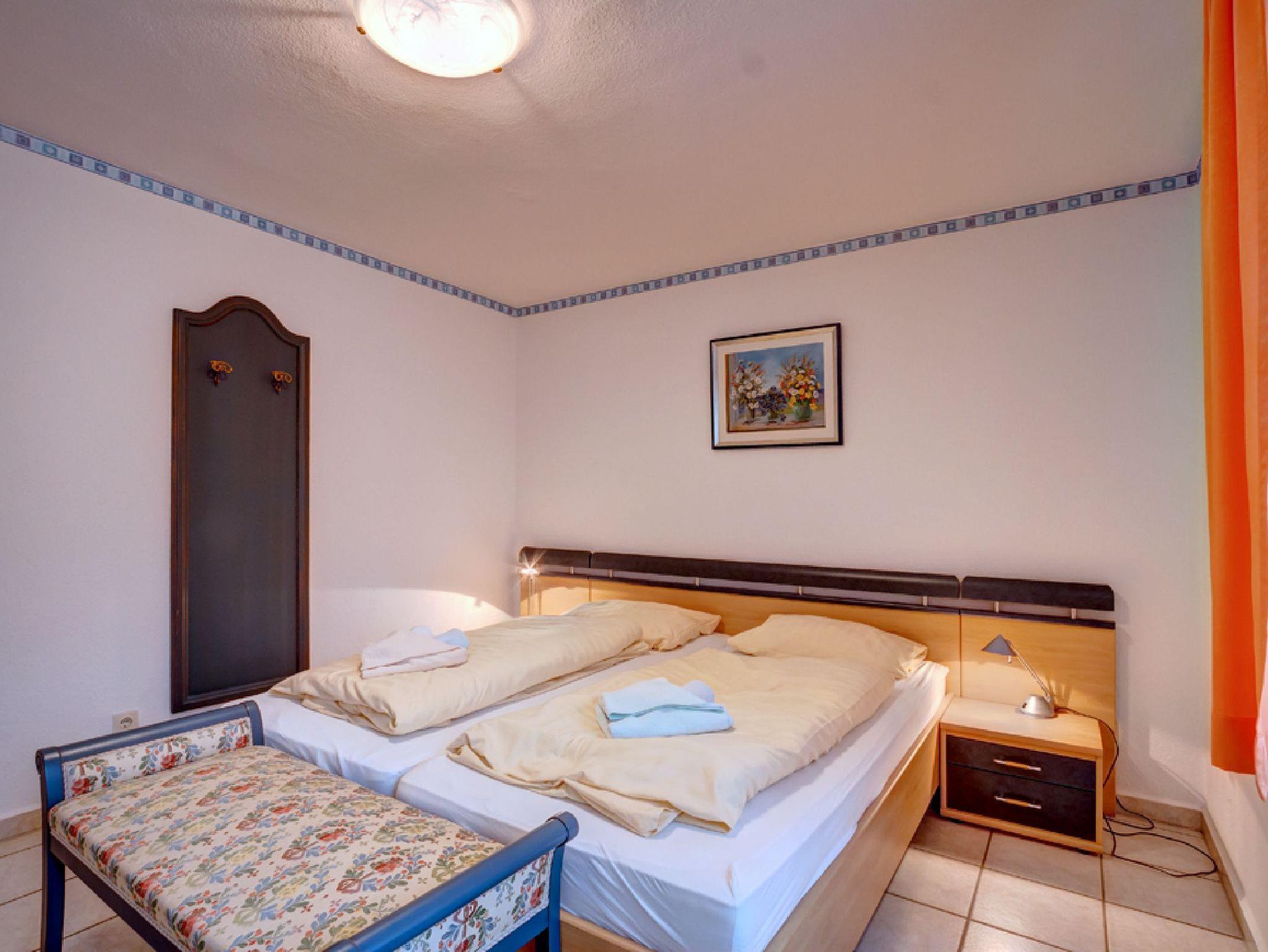 Die Wohnung verfügt über ein separates Schlafzimmer mit Doppelbett und ausreichend Platz für ein Kinderbett. Im gemütlichen Wohnraum befindet sich eine Schlafcouch sowie ein umbaubarer Sessel ? ideal für bis zu 4 Personen. Die integrierte Küche ist bestens ausgestattet: Herd, Backofen, Kühlschrank, Kaffeemaschine, Wasserkocher und alle wichtigen Utensilien sind vorhanden.
