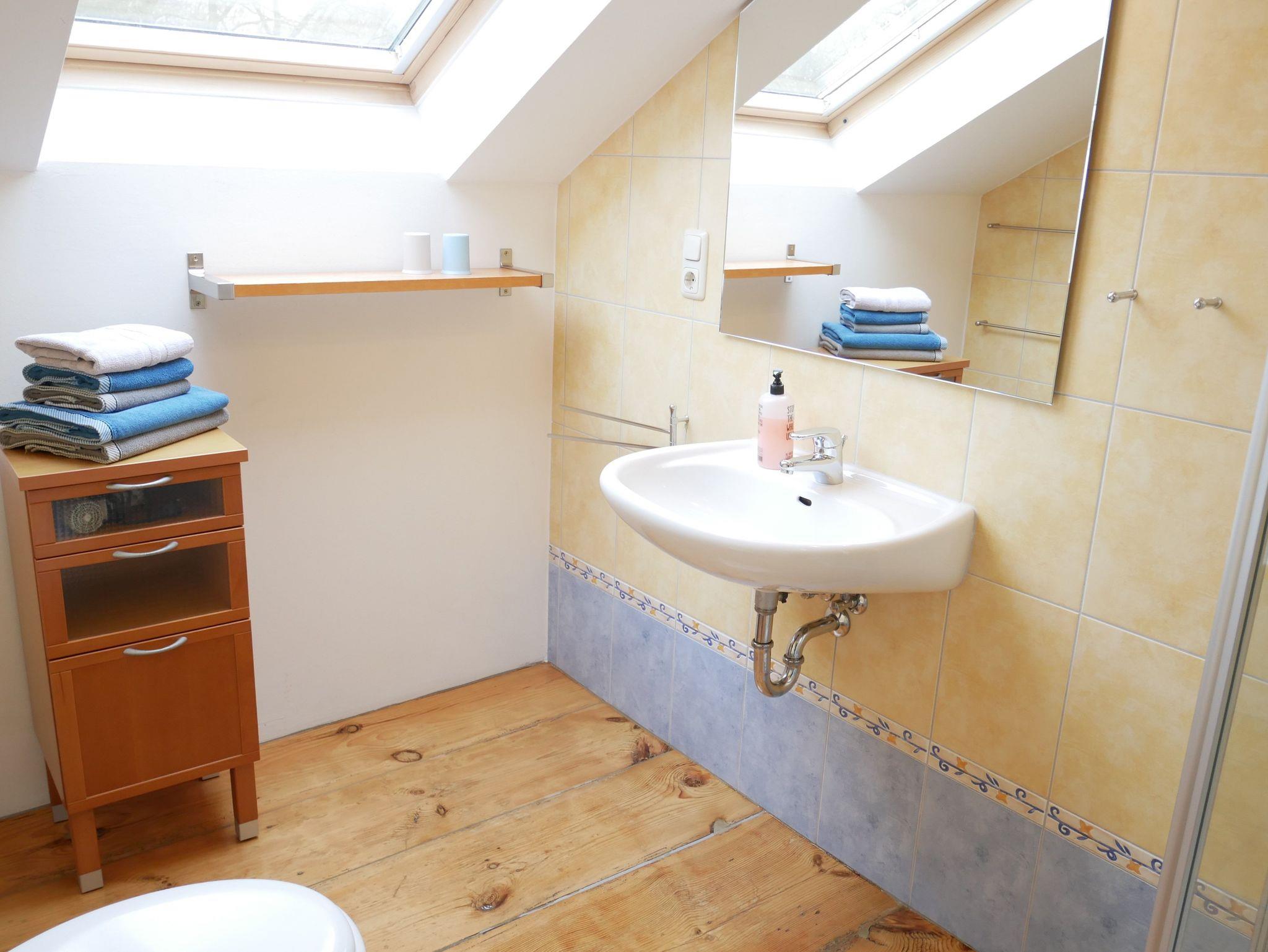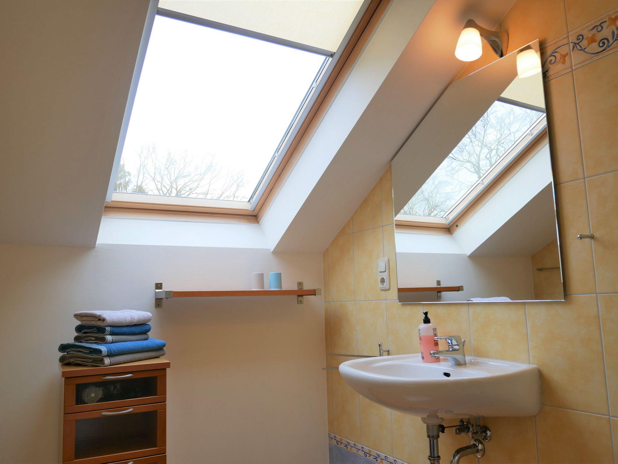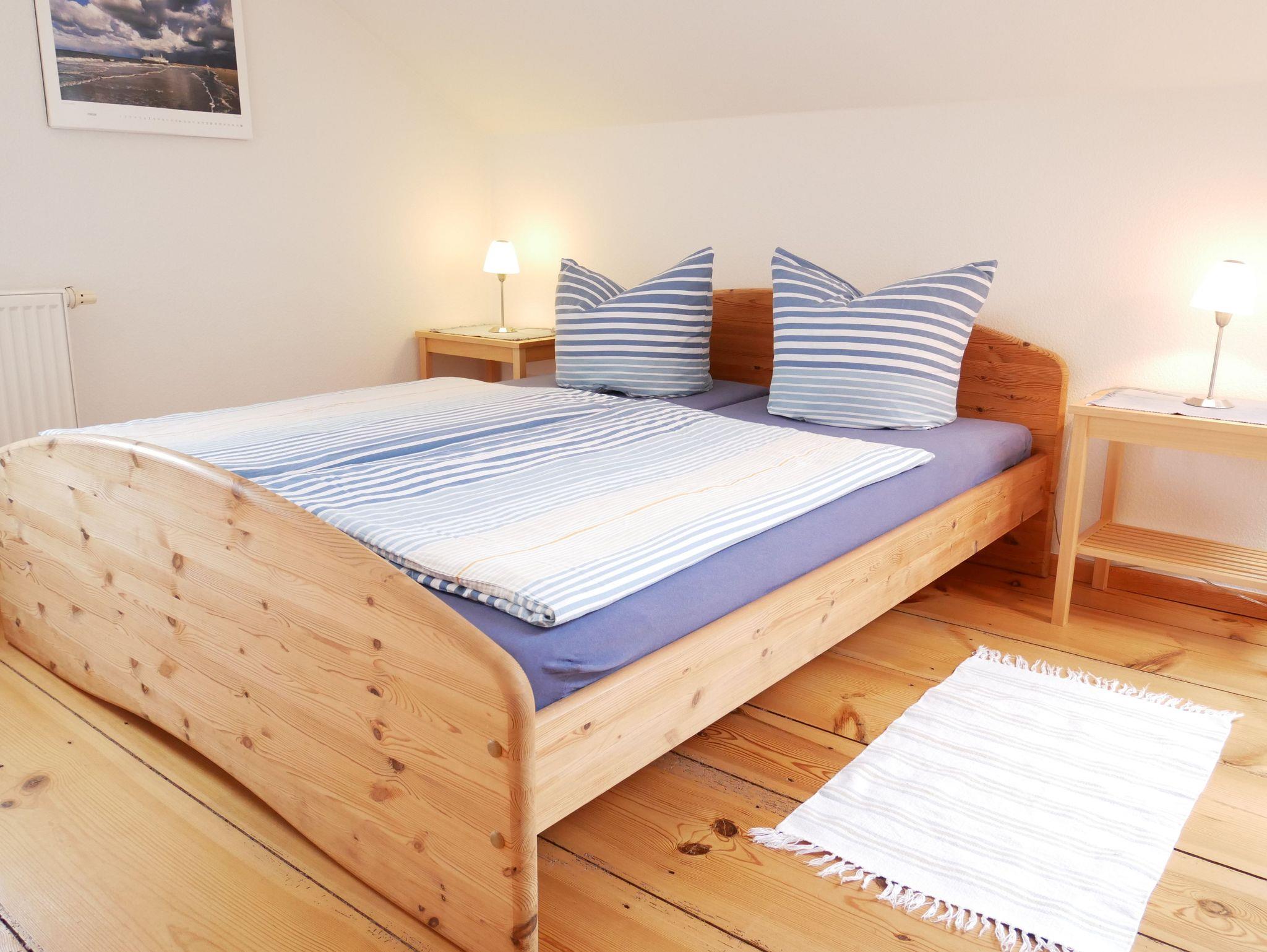 Die moderne 3-Raum-Nichtraucher-Ferienwohnung (54 qm) befindet sich im 2. OG. mit Dachschrägen.