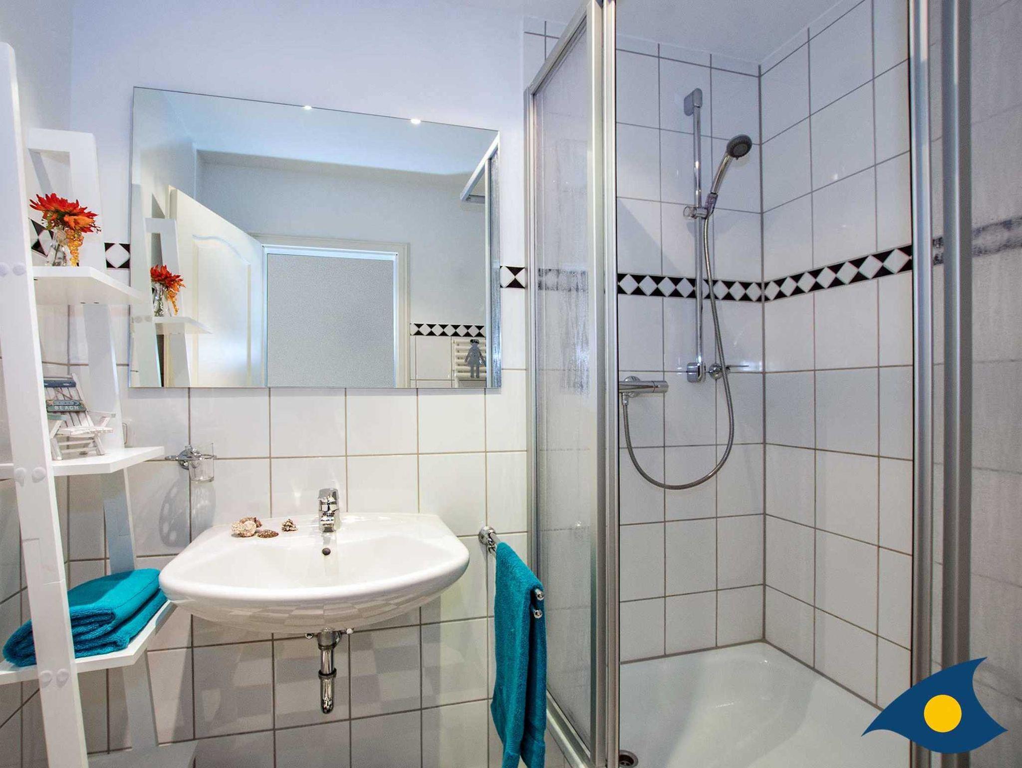 Das Badzimmer mit WC, Handwaschbecken und Dusche ist die kleine Wohlfühloase des Appartements.